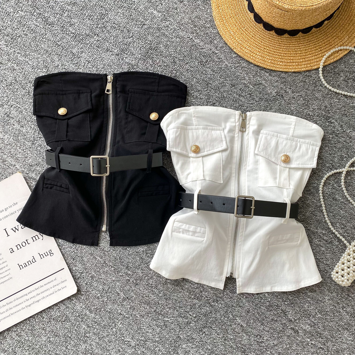 Be the first to review “SINGREINY Safari Style Sexy Top 2025 Ladies Sleeveless Pockets Sashes Short Camisole Streetwear Strapless Zipper Retro Tank Top” Cancel reply