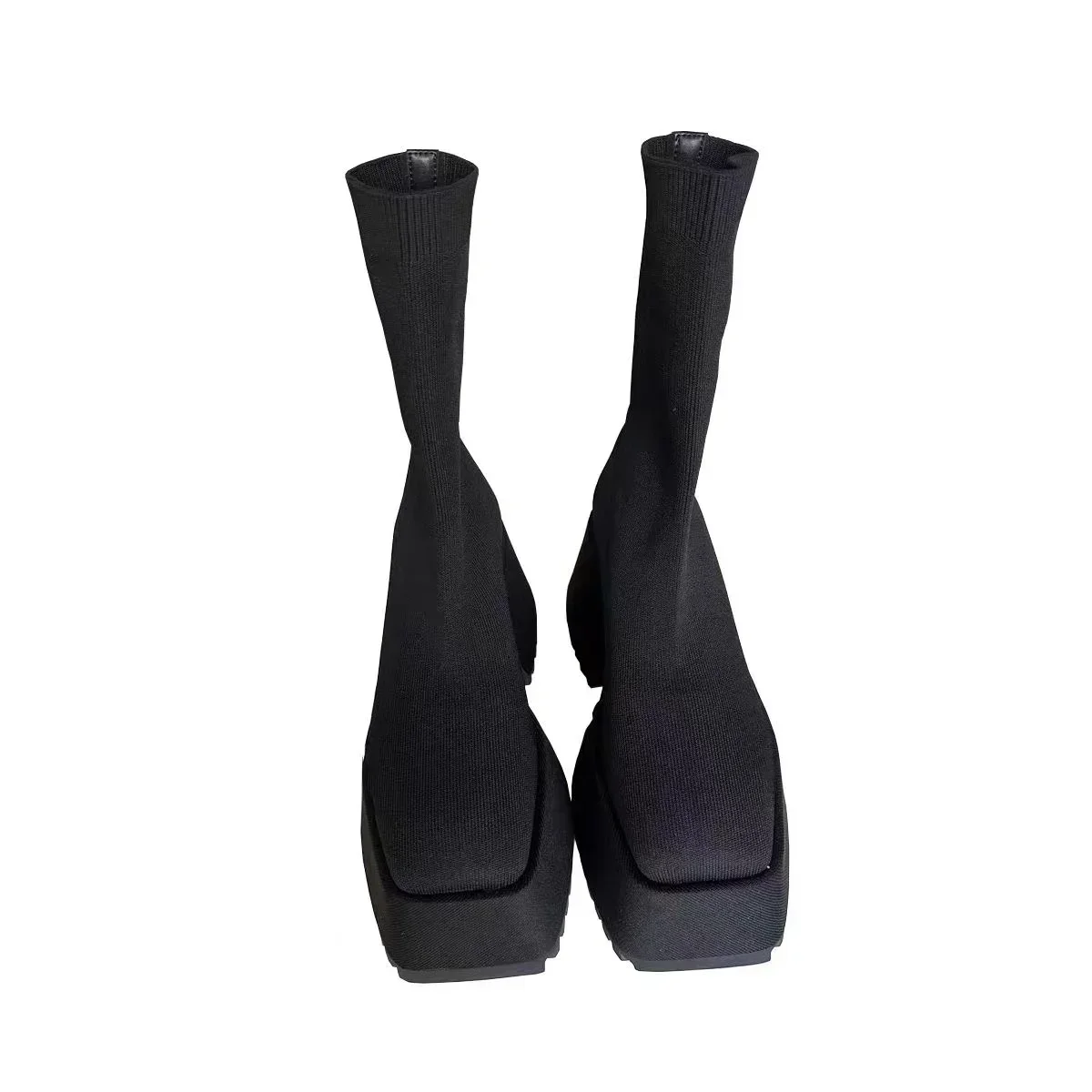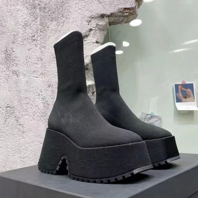 Sock Boots Woman Hided Wedge Platform Female Casual Shoes Autumn New Wedge Lady Knitting Short Ankle Boots Platform 11 CM