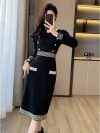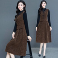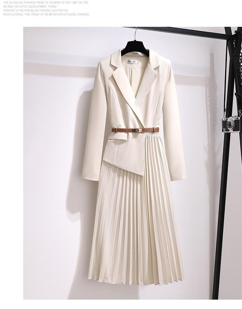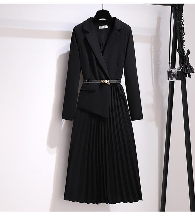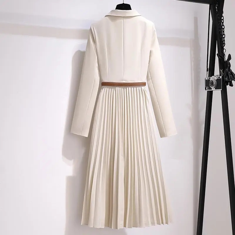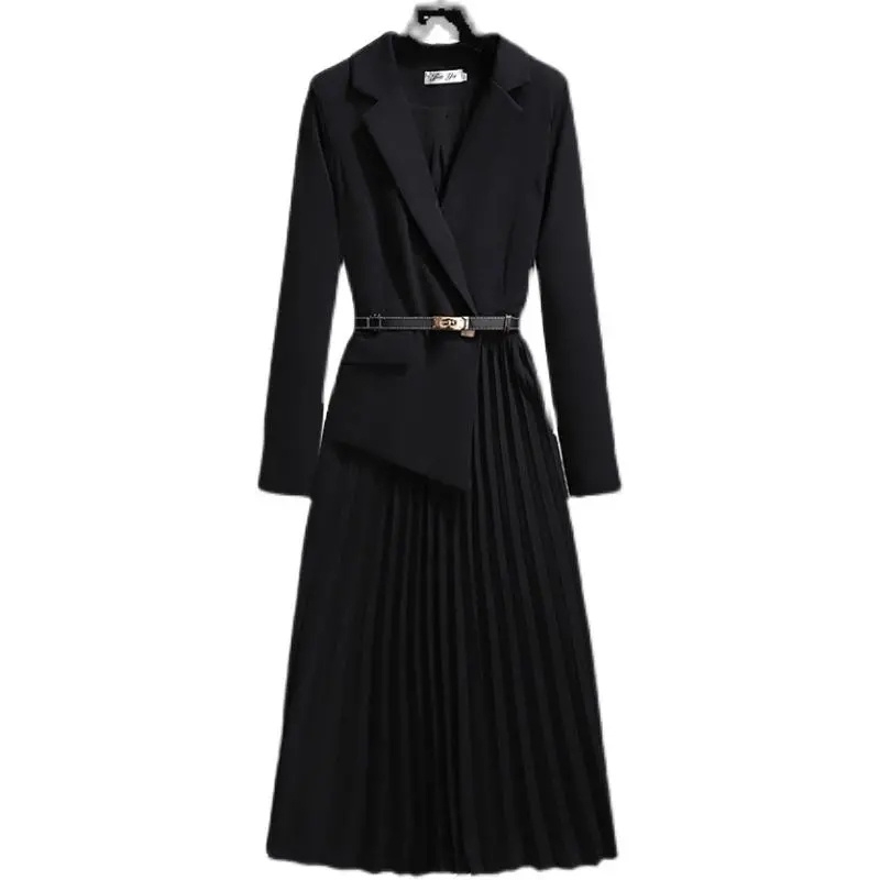 Spring Autumn Women’s Dresses 2024 New Fashion Suit Collar Stitching Fake Two-Piece Elegant Lady Office Long Dress Vestidos