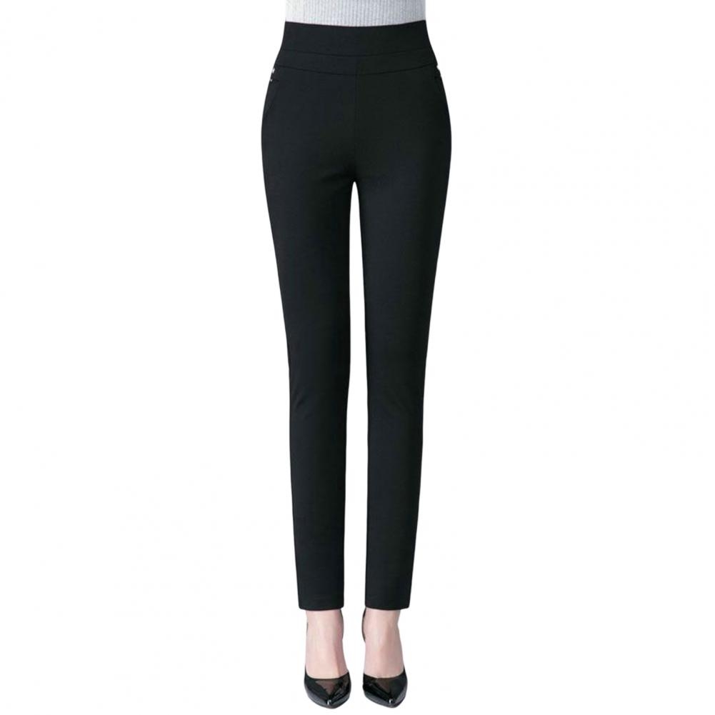 Vintage Office skinny Women Pants Trousers Zipper High Waist Pocket Flare pants formal OL Office Career Capris Work Wear Black