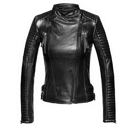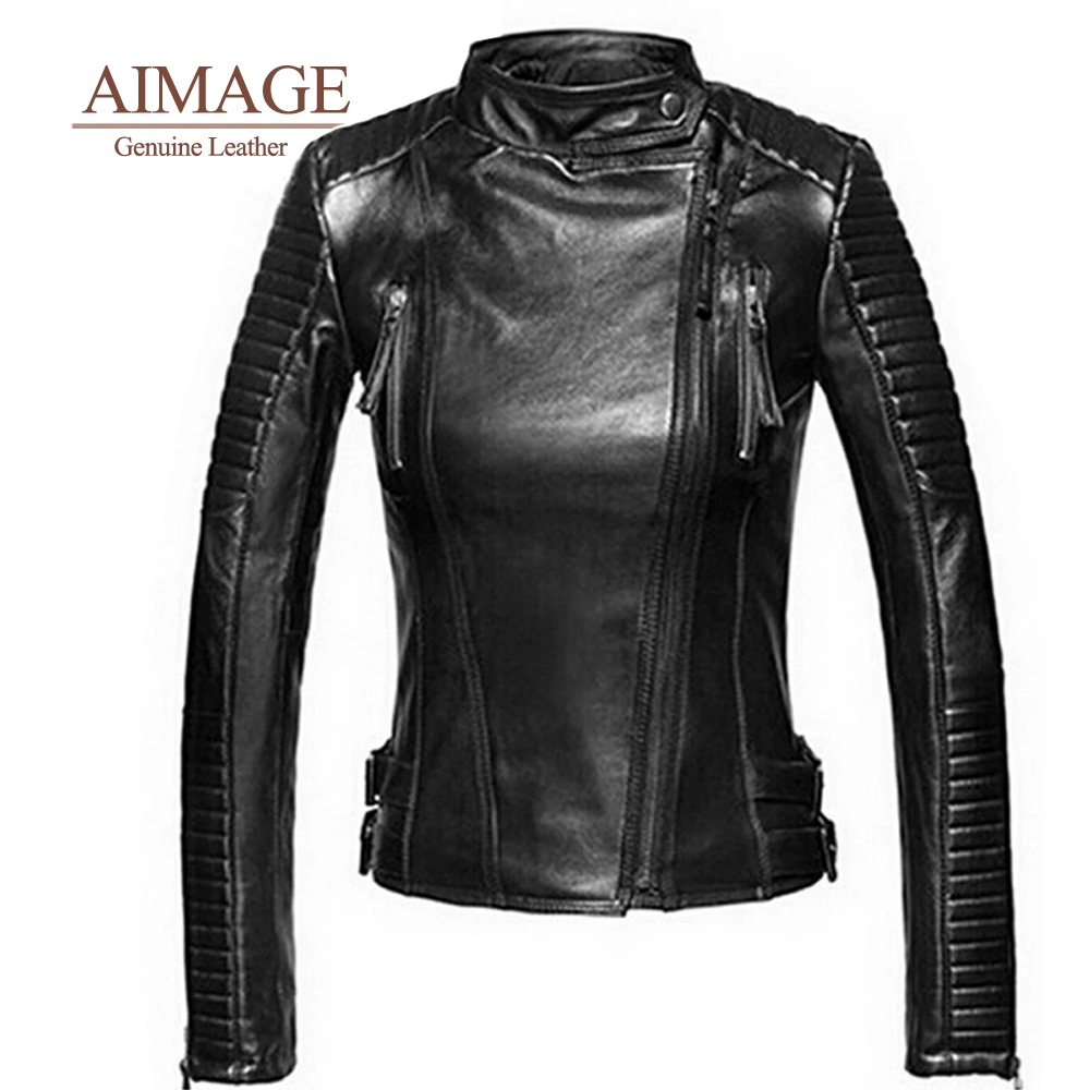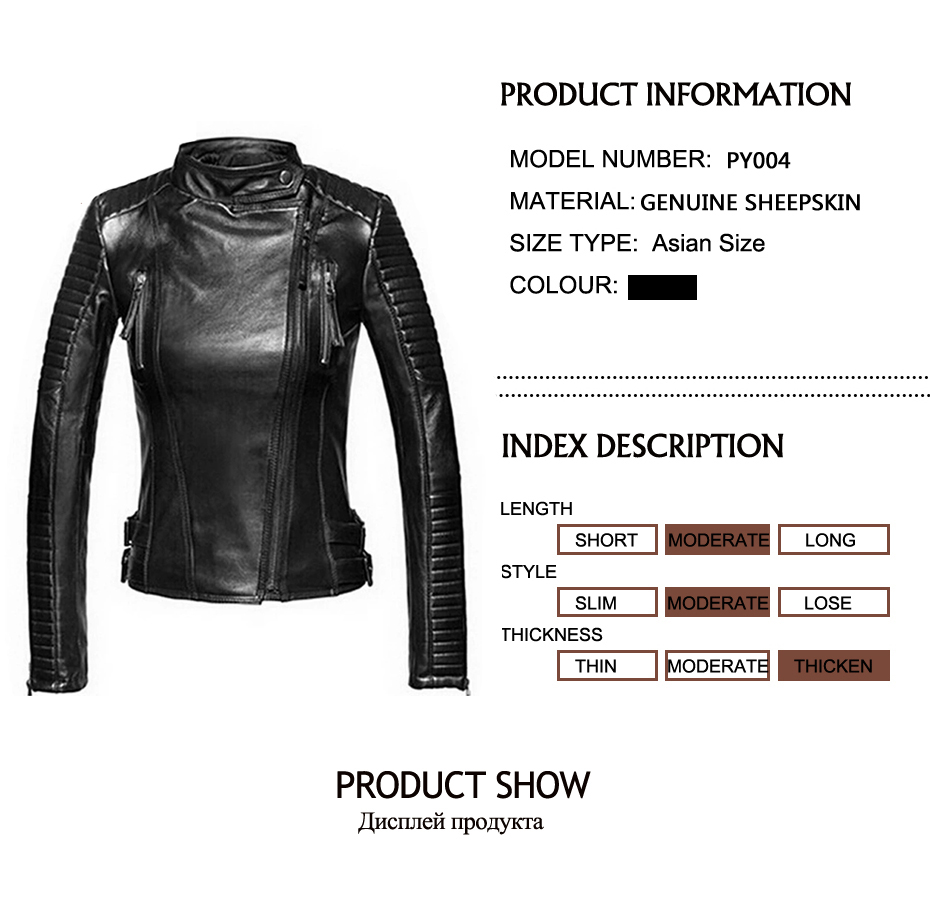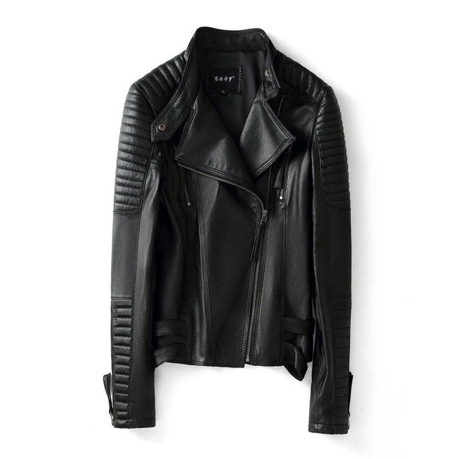 Spring Genuine Leather Jacket For Women Stand Collar Real Sheepskin Coats Striped Motorcycle Biker Overcoats пальто женско PY004