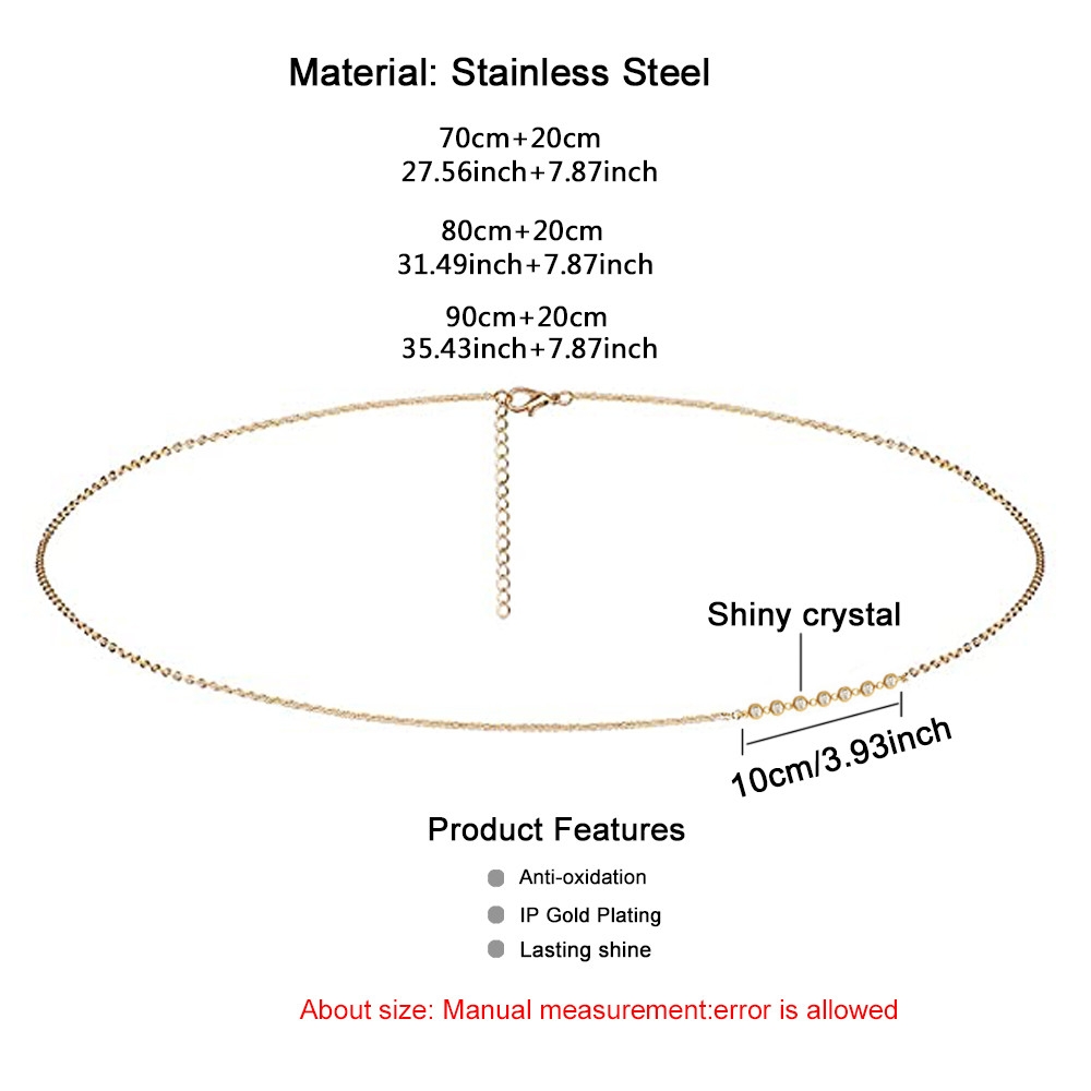 Stainless Steel Waist Chain Rhinestone Crystal Belly Body Chain For Women Minimalist Beach Bikini Sexy Body Jewelry