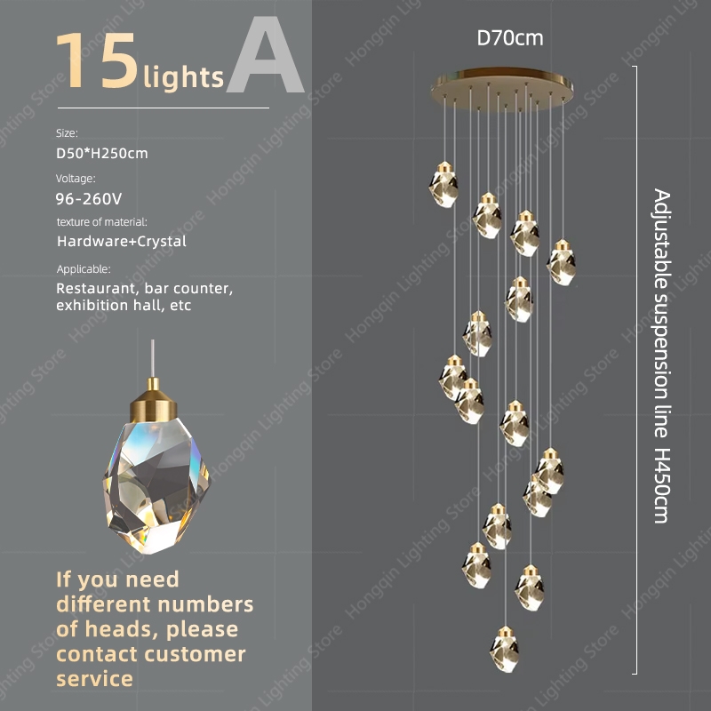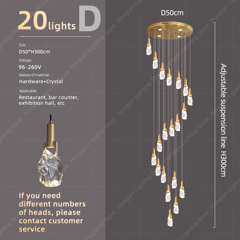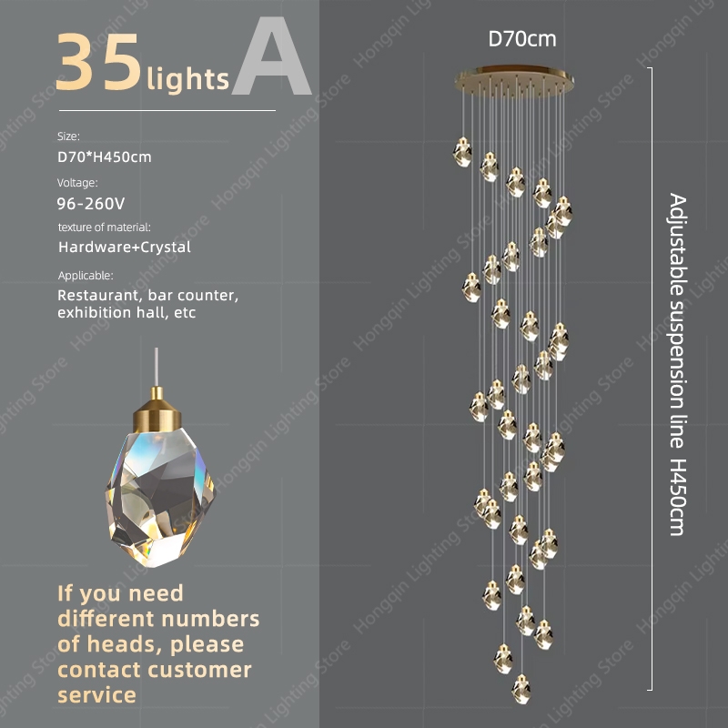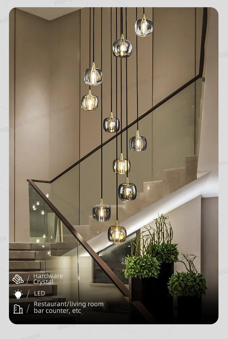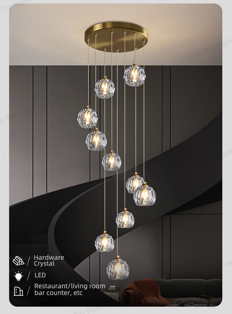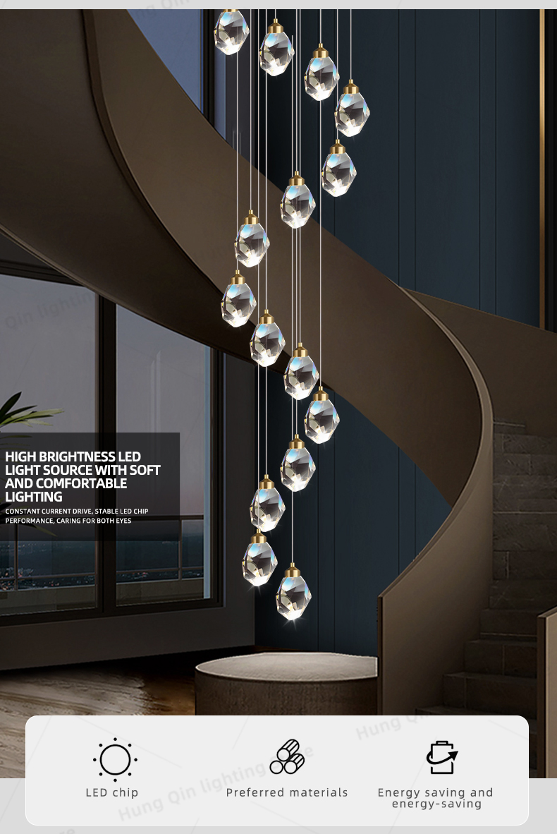Stairs Ceiling Chandelier Dining Room Luxury Crystal High Ceiling Pendant Lighting Fixtures Chandelier Modern Hanging Lamp Stair