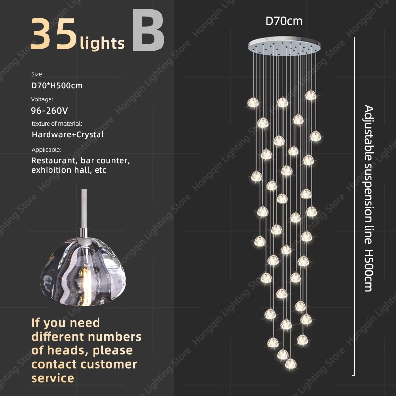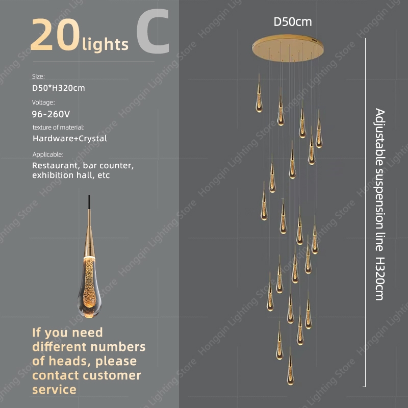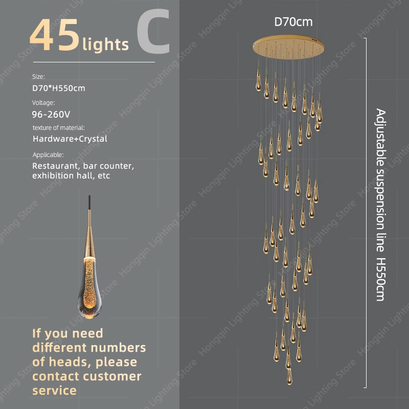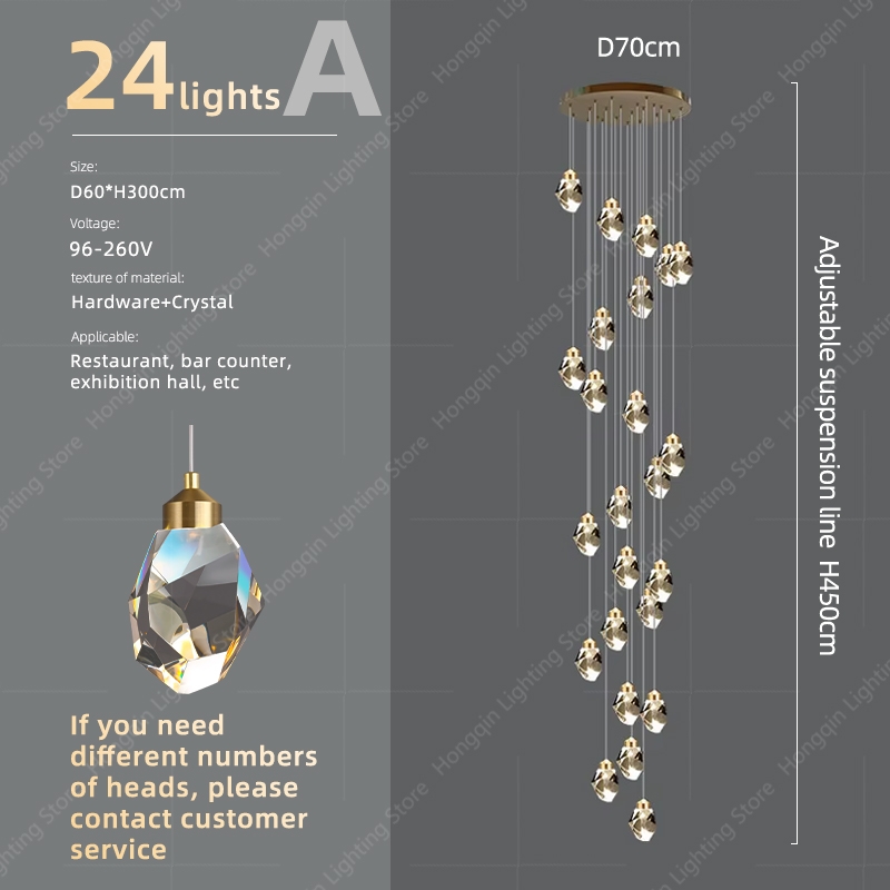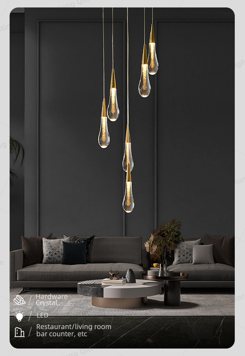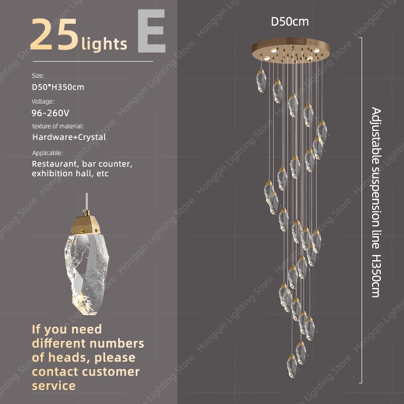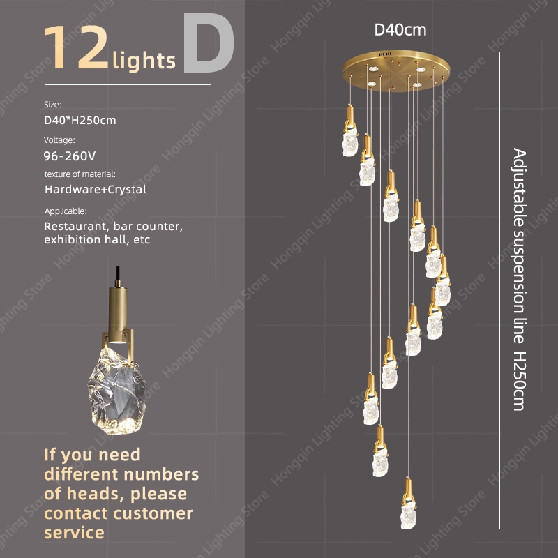 Stairs Ceiling Chandelier Dining Room Luxury Crystal High Ceiling Pendant Lighting Fixtures Chandelier Modern Hanging Lamp Stair