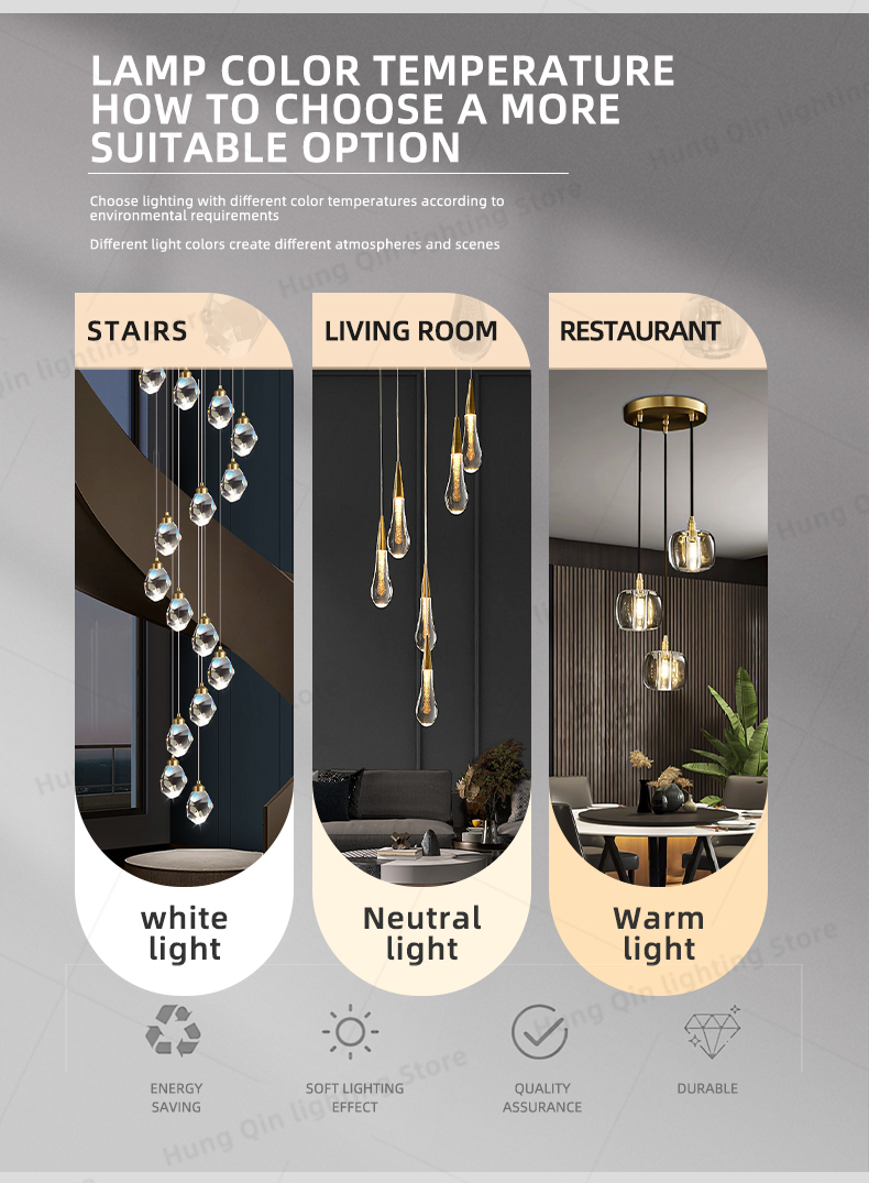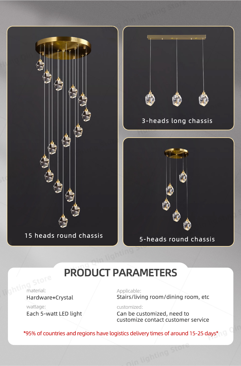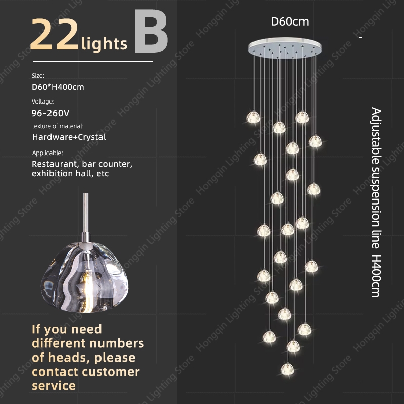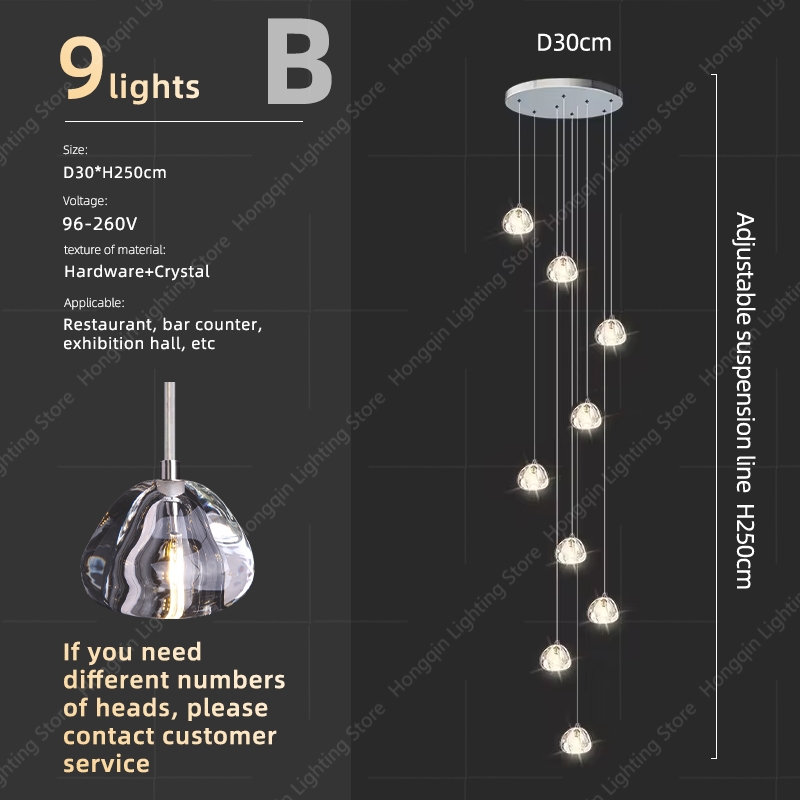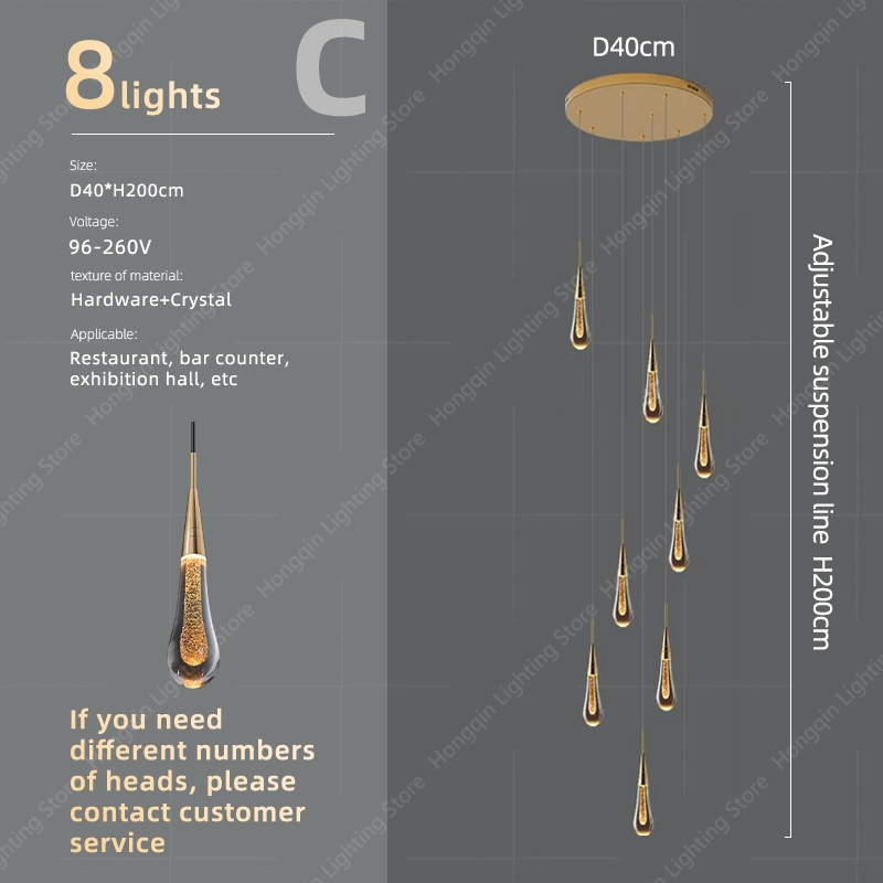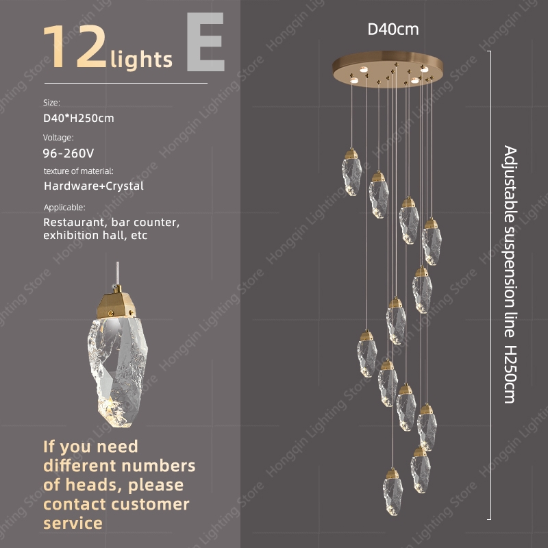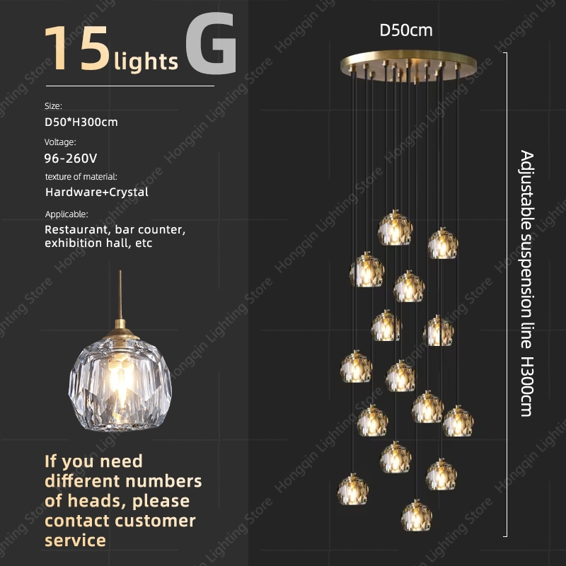 Stairs Ceiling Chandelier Dining Room Luxury Crystal High Ceiling Pendant Lighting Fixtures Chandelier Modern Hanging Lamp Stair