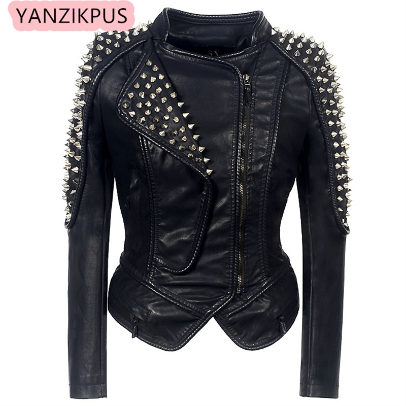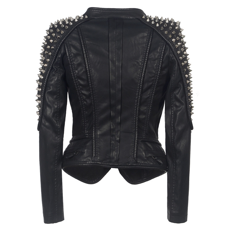 Steampunk Rock Rivet Women’s Leather Jacket Slim Short Streetwear Gothic Embroidery Pu Leather Locomotive Coat Femme
