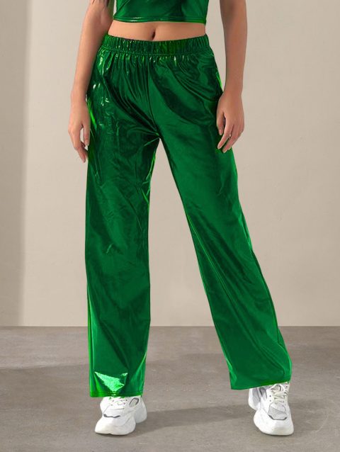 Women’s Fashion Silver Gold Party Leather Pants Vintage Glitter Party Trousers Solid Colour High Waist Slim Trousers