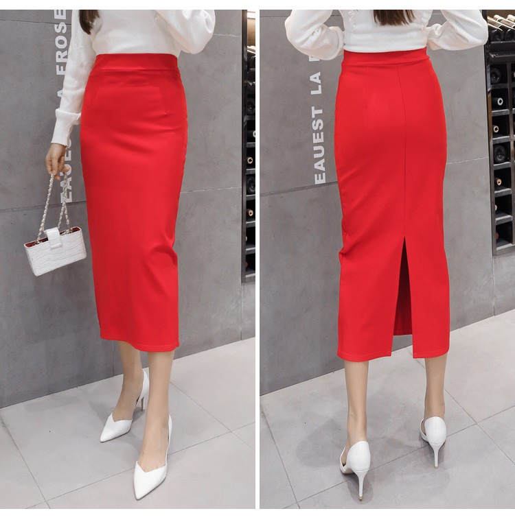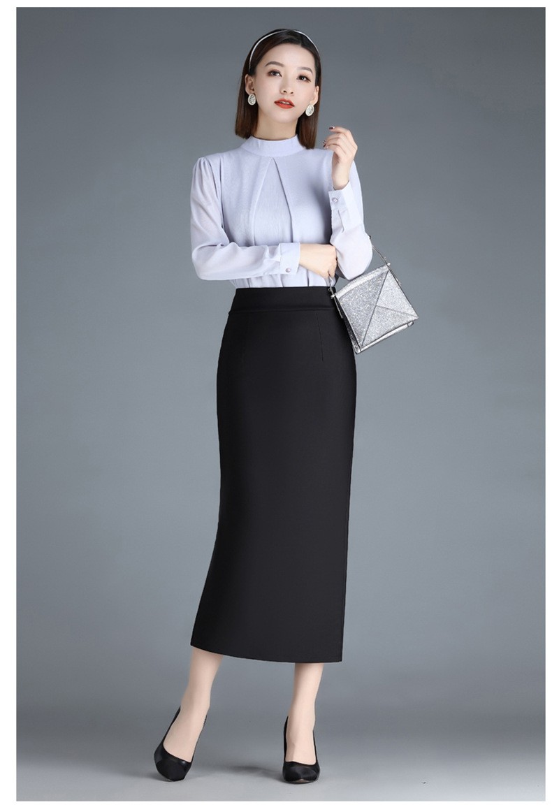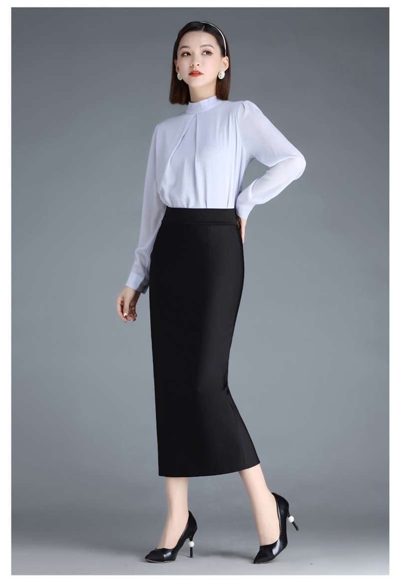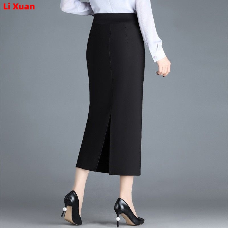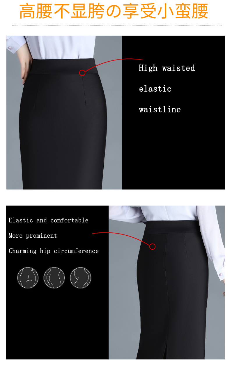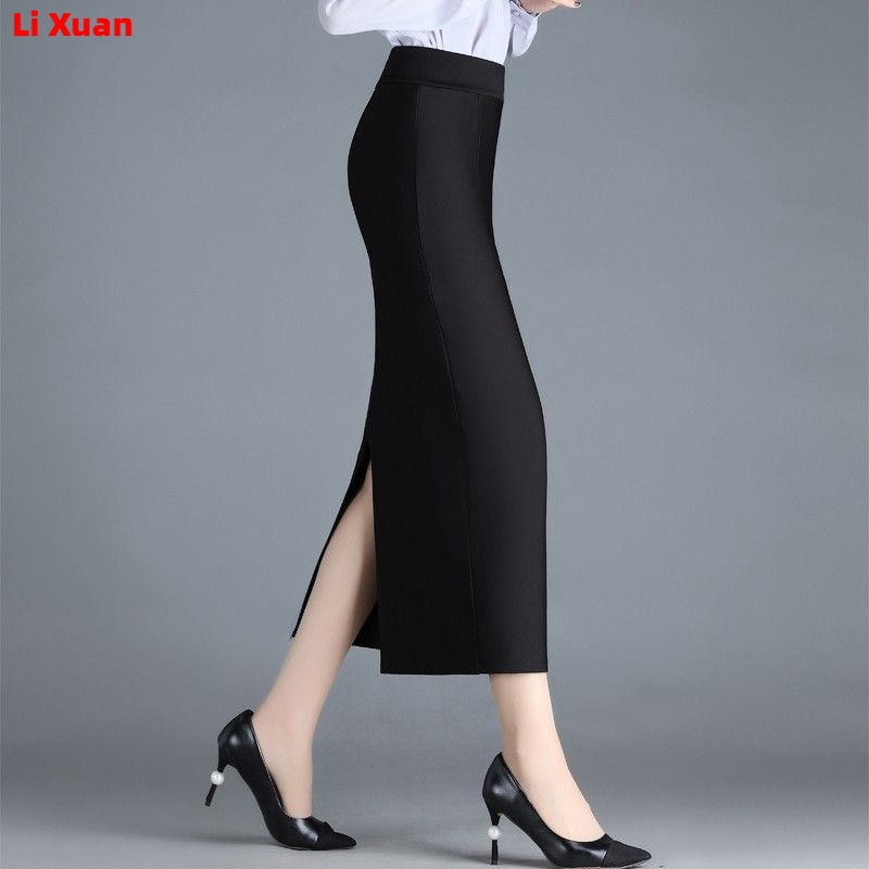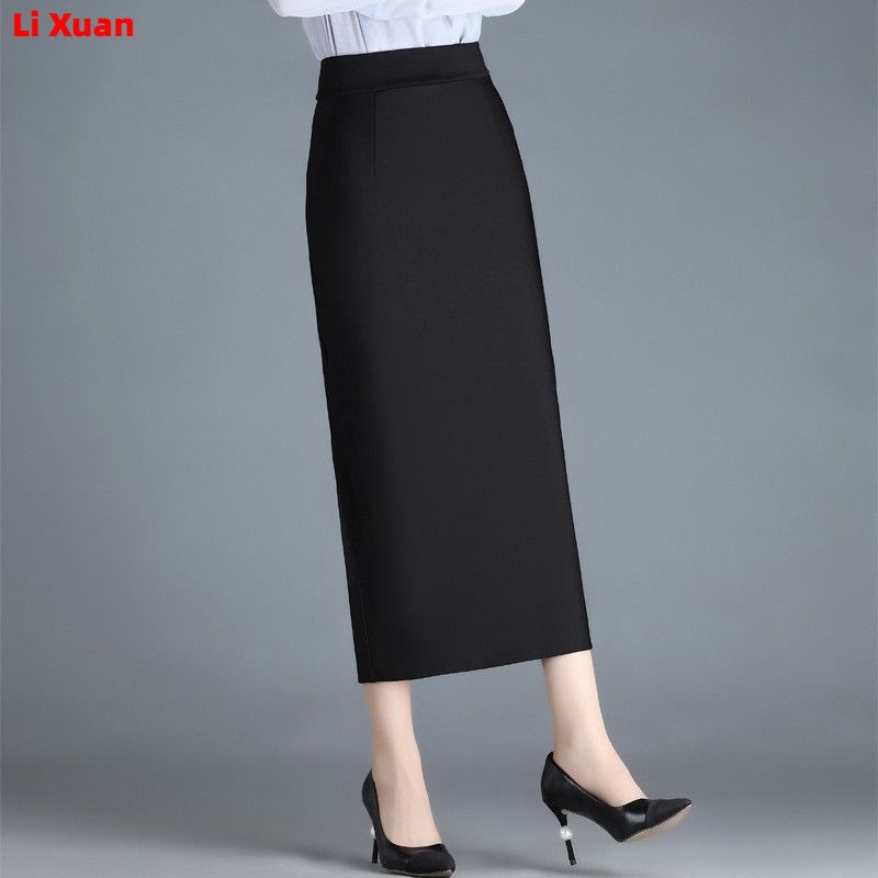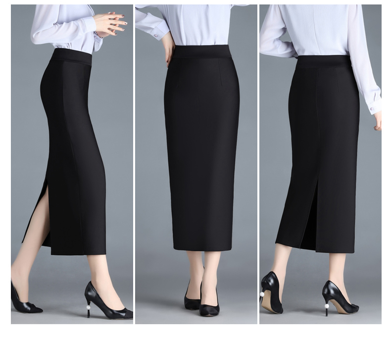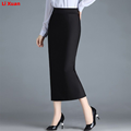 Stretch Pencil Skirts for Women, Office Lady, Formal Black Midi Skirts, Elegant Female Package Hip Skirts, Spring and Autumn