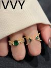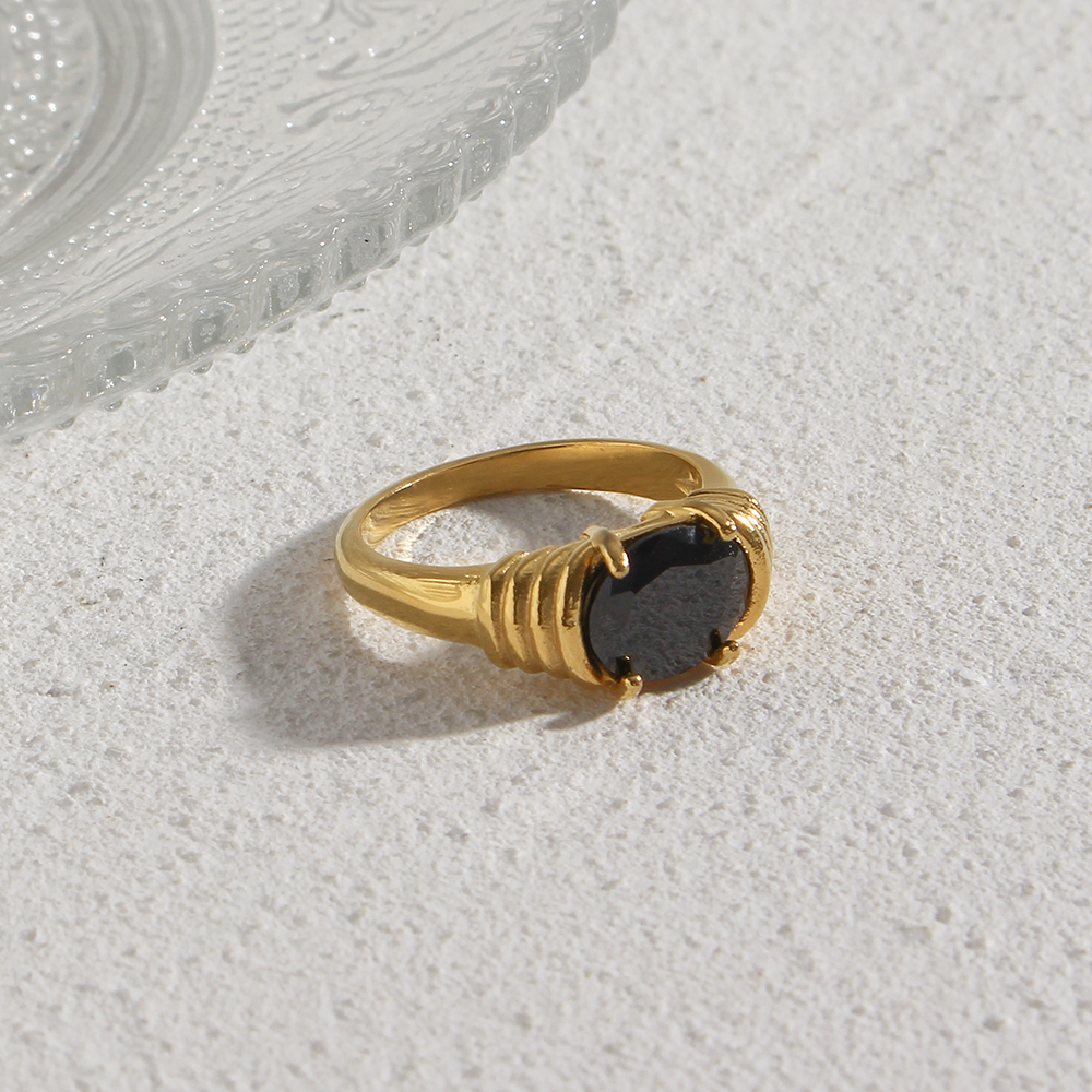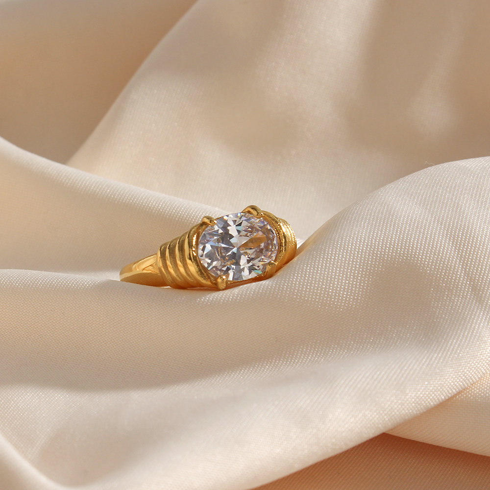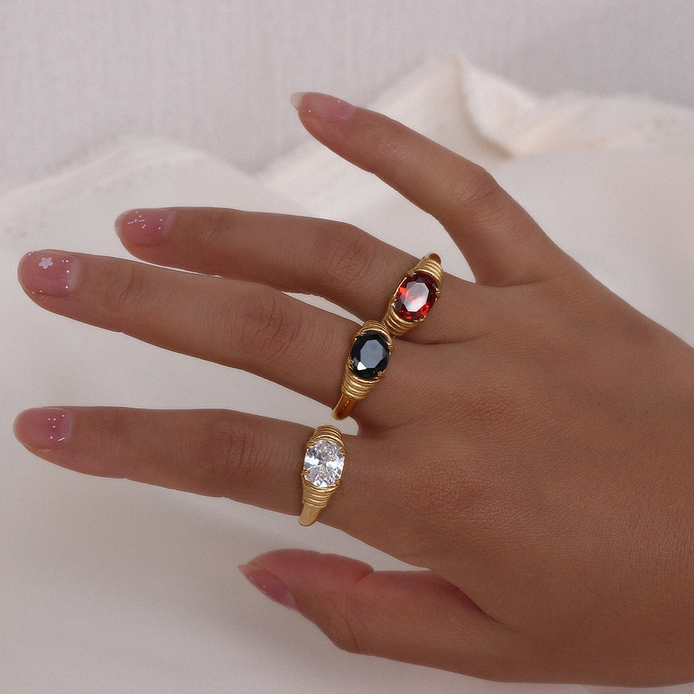 Strong Prong Setting Oval Cutt 3A Zircon Shiny Green Red Black White Stone Ring Stainless Steel 18K Gold Plated Rings For Women