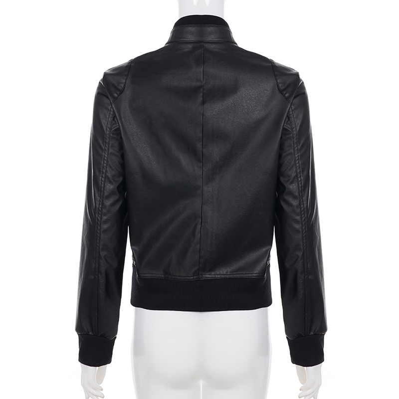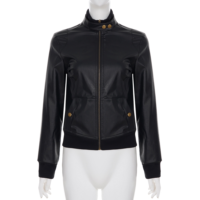 SUCHCUTE Punk Style PU Leather Jacket For Women Moto & Biker Zipper Pockets Outwear Streetwear Half-turtleneck Coats Autumn 2025