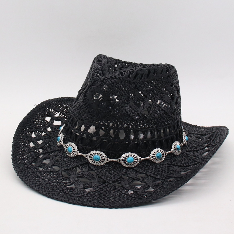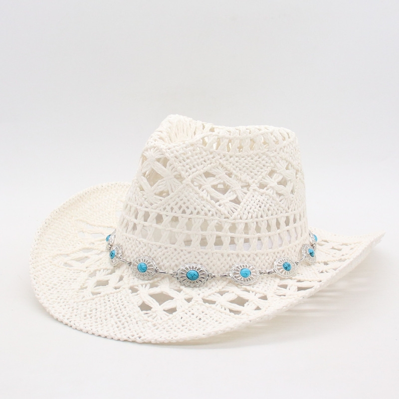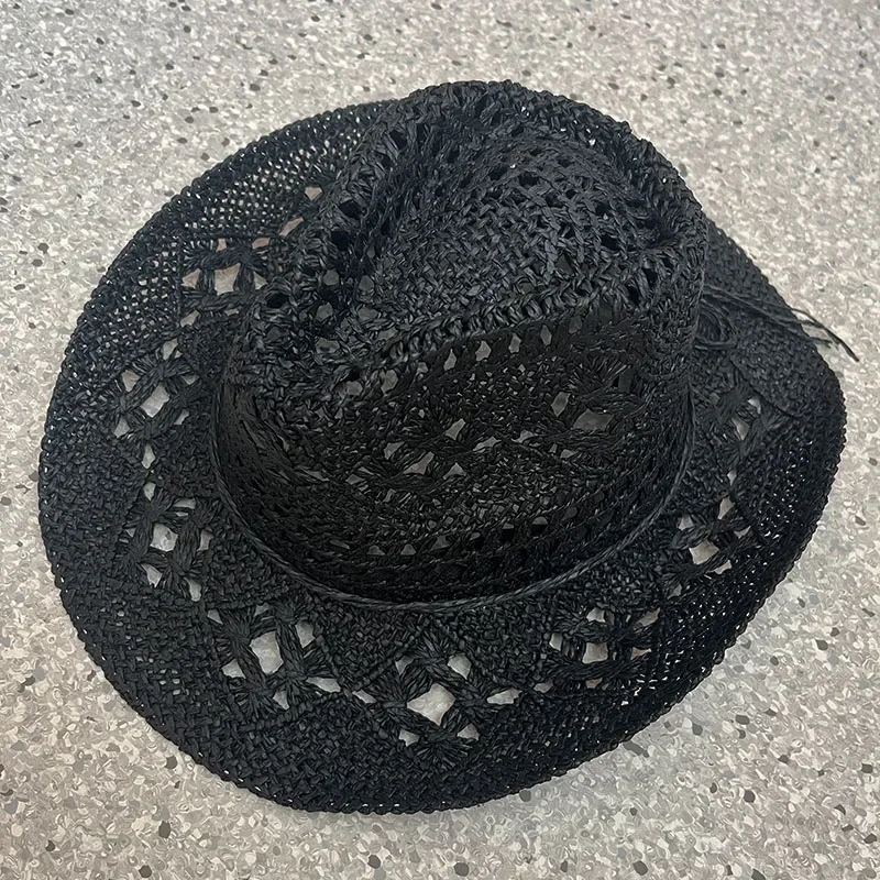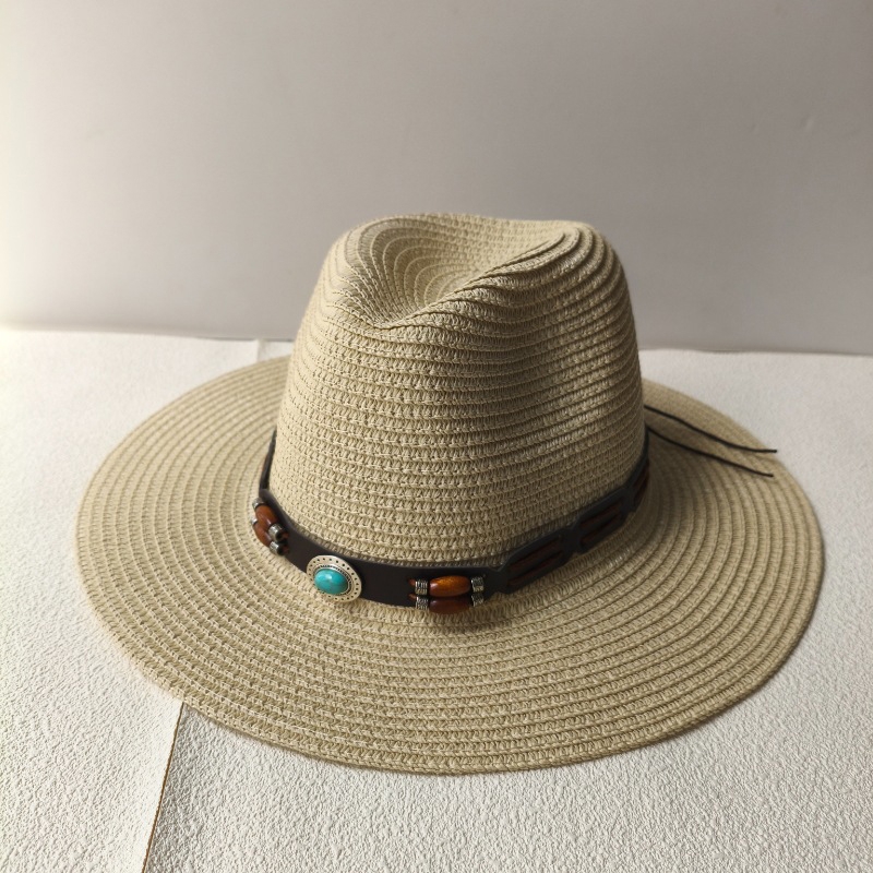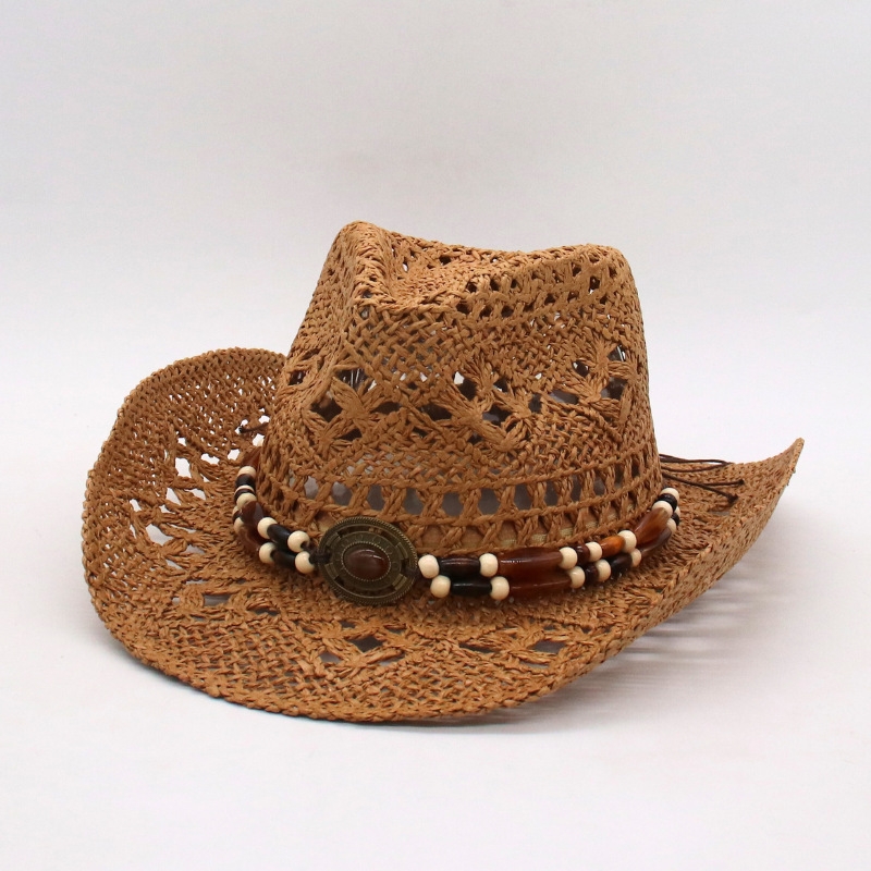 Summer Bohemian Shell Straw Hat Beach Women Men Cowboy Hats Wooden Beads Hollow Out Western Wide Brim Sun Hat Holiday Cap