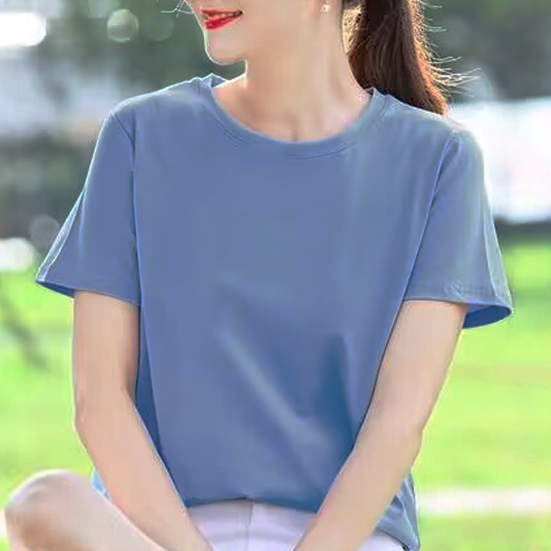 Summer Casual 100% Cotton Regular-Fit Women Crew Neck Basic White T-Shirts