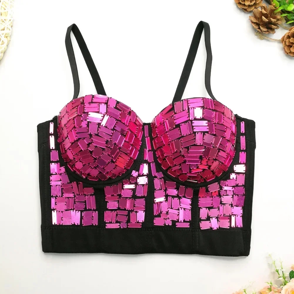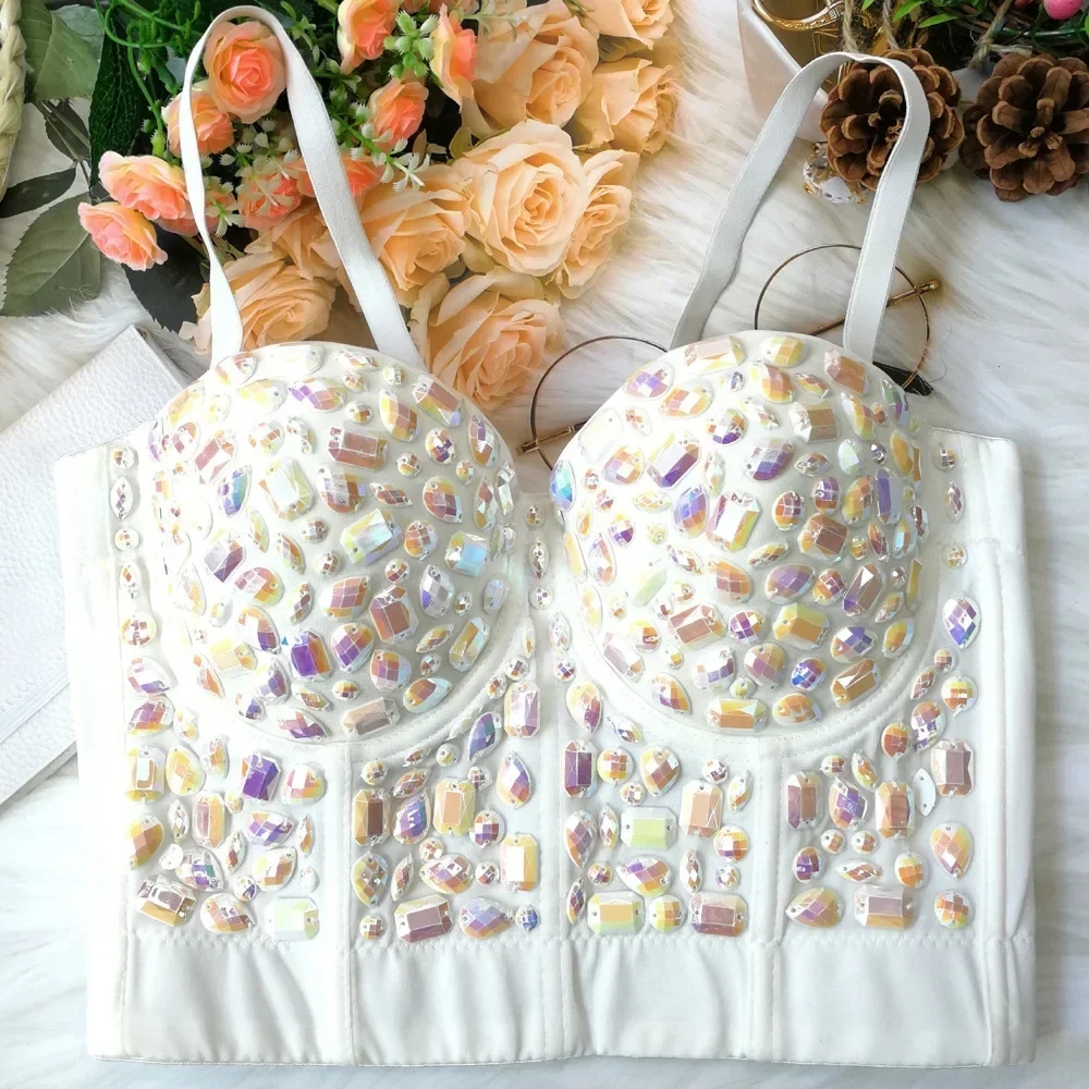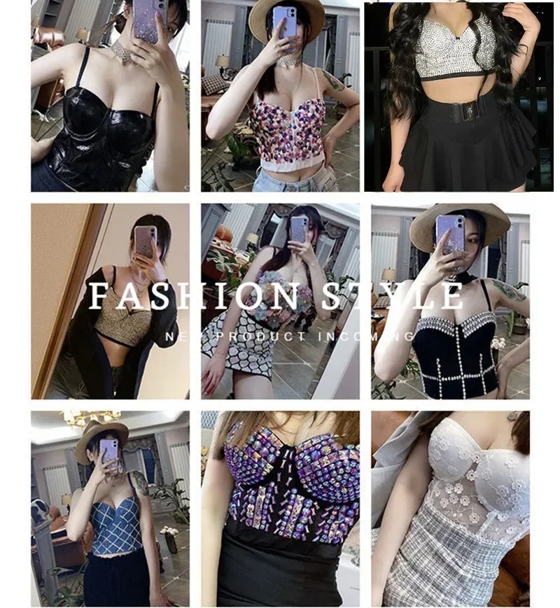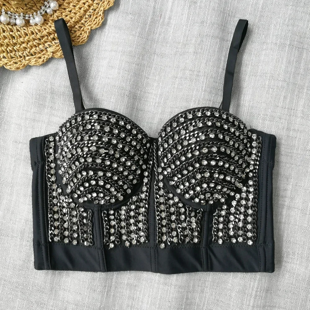 Summer High End Tops Women Corset Luxury Bling Diamond Sequined y2k Tank Woman Clothes Quality Push Up Bustier Ladies Crop Top