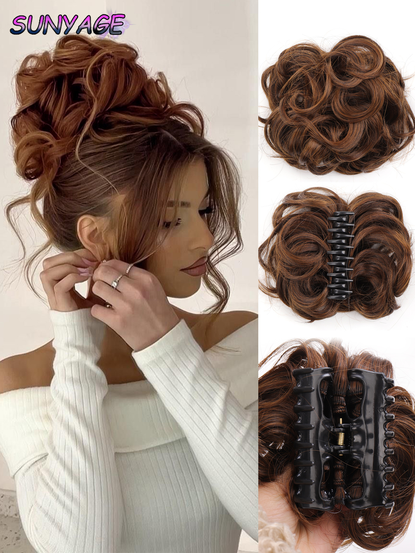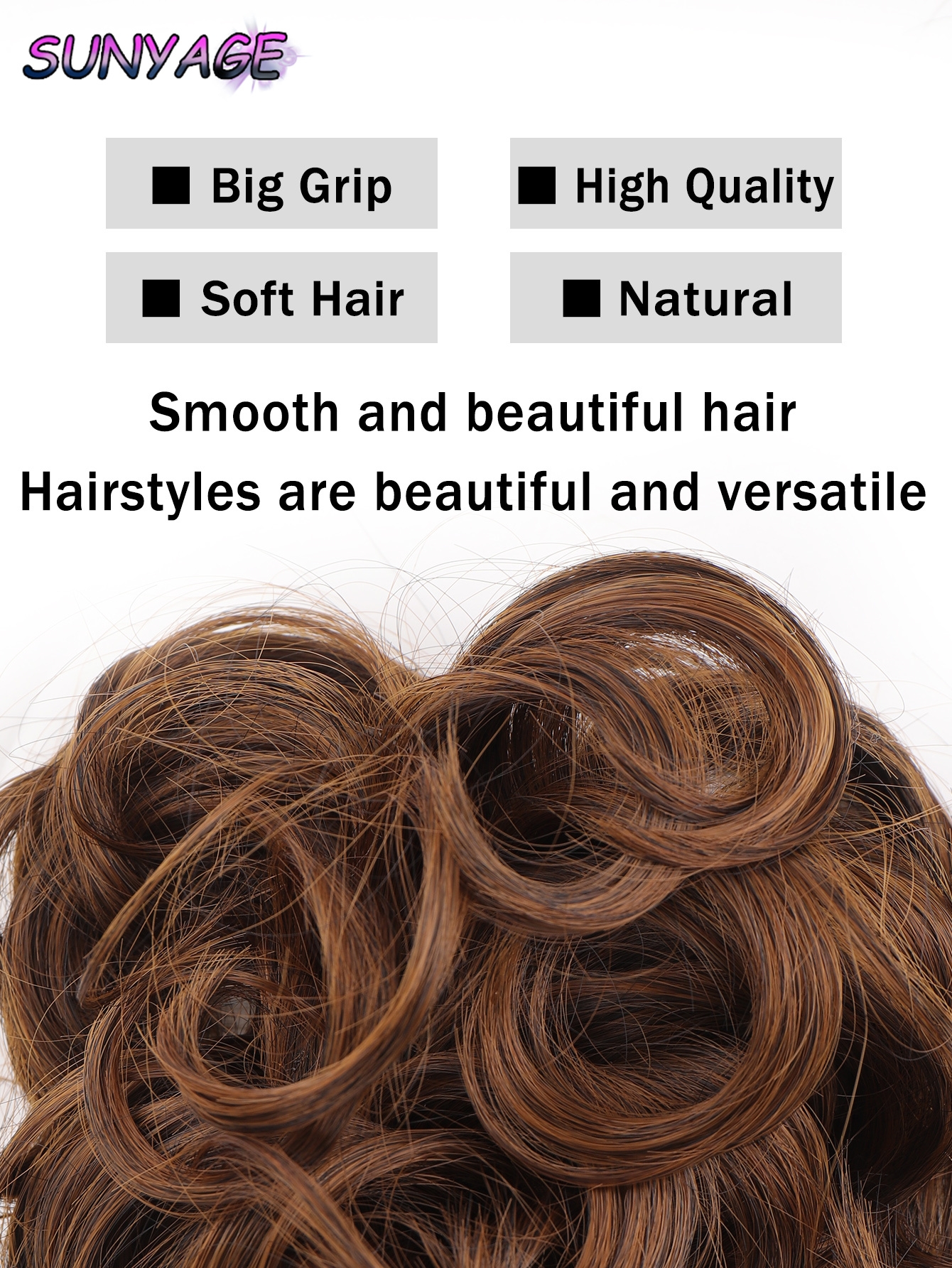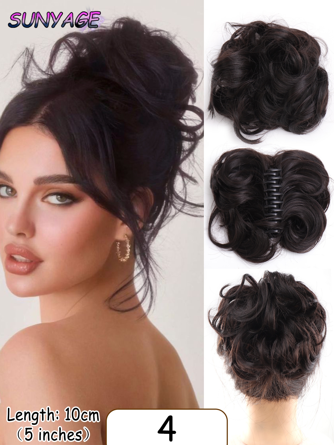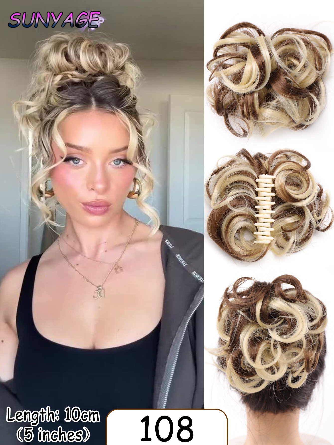 SUNYAGE Synthetic Chignon Messy Bun Claw Clip in Hair Piece Wavy Curly Hair Bun Ponytail Extensions Scrunchie for Women