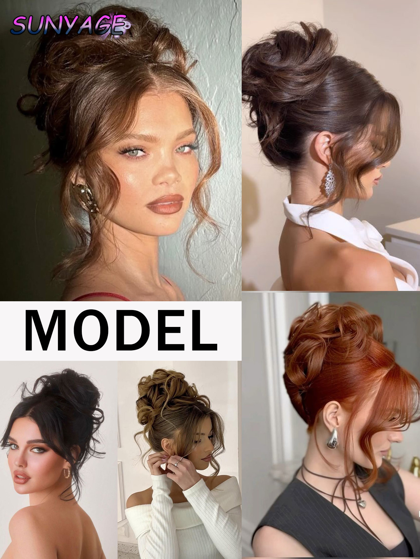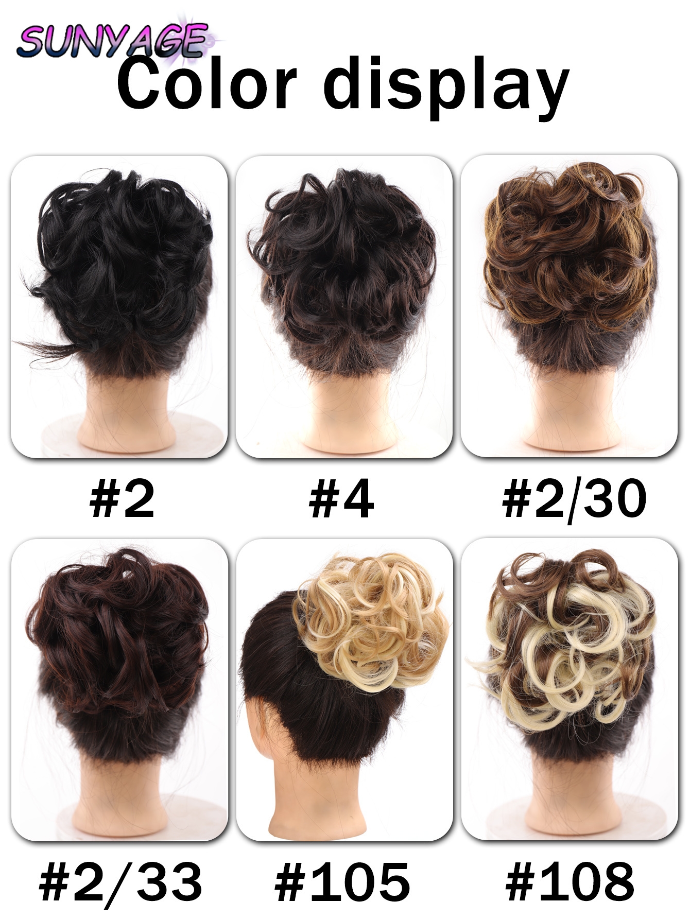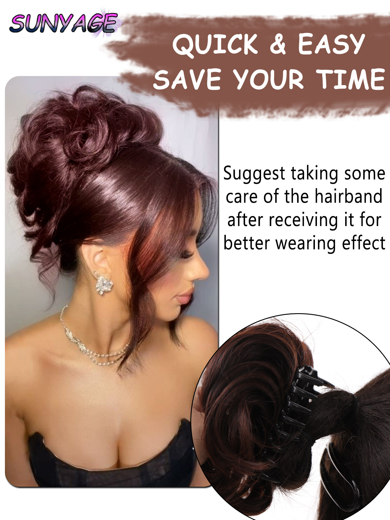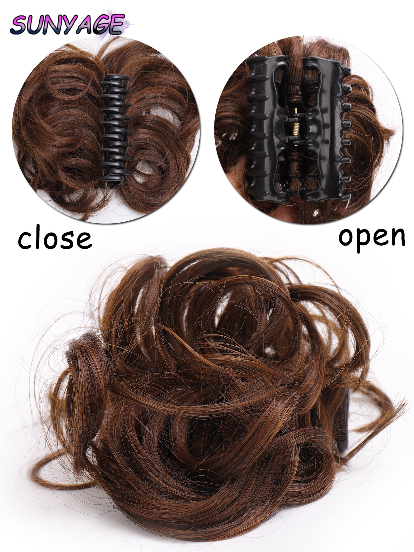 SUNYAGE Synthetic Chignon Messy Bun Claw Clip in Hair Piece Wavy Curly Hair Bun Ponytail Extensions Scrunchie for Women