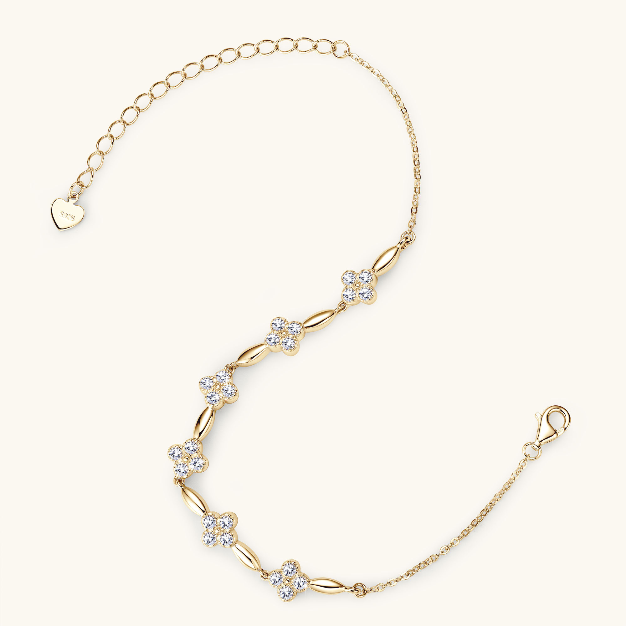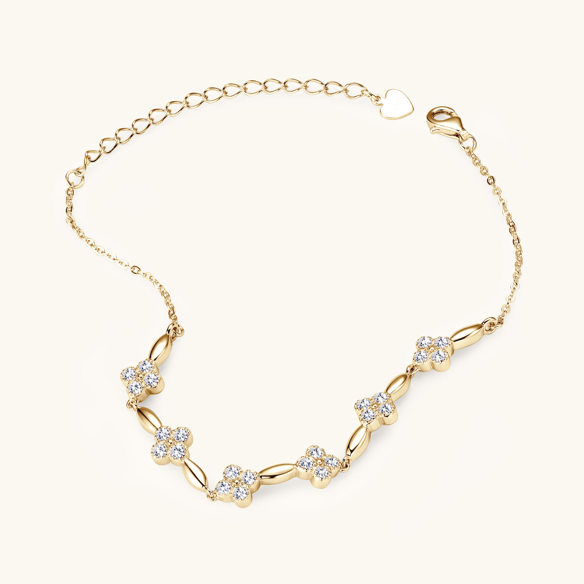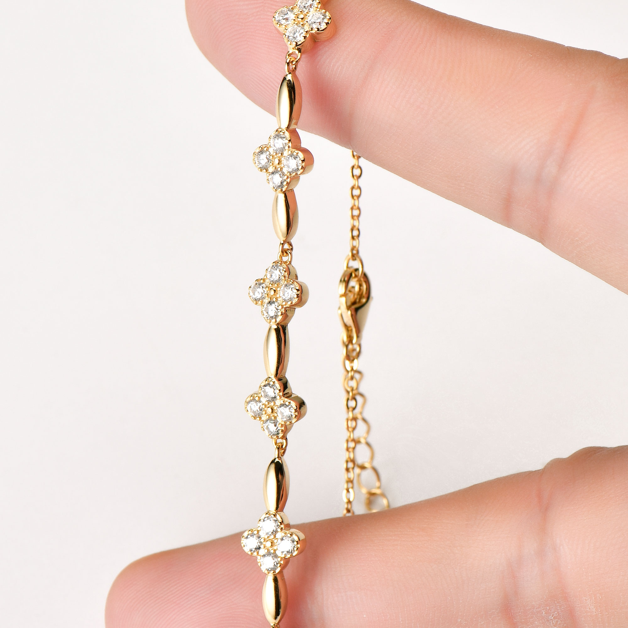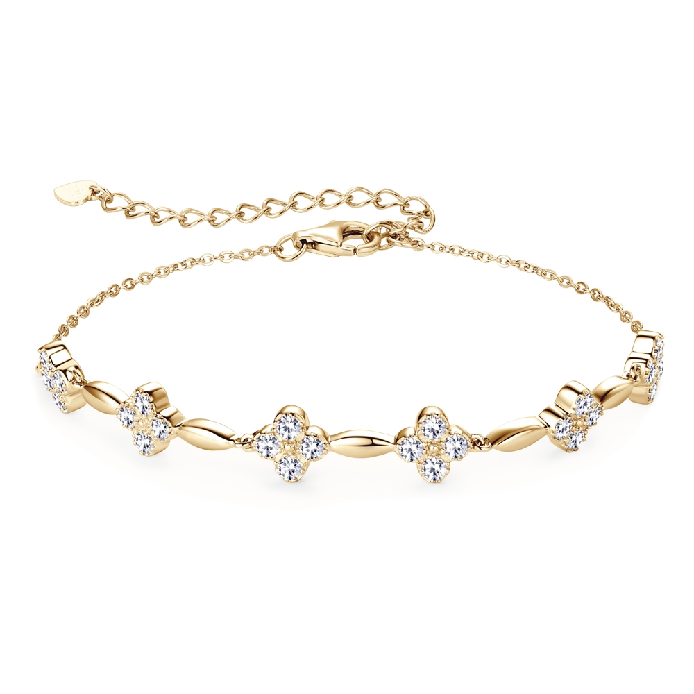 Sweetrain 925 Sterling Silver Flower Clover Moissanite Bracelet for Women 18k Gold Plated Fine Jewelry Gift GRA Certified