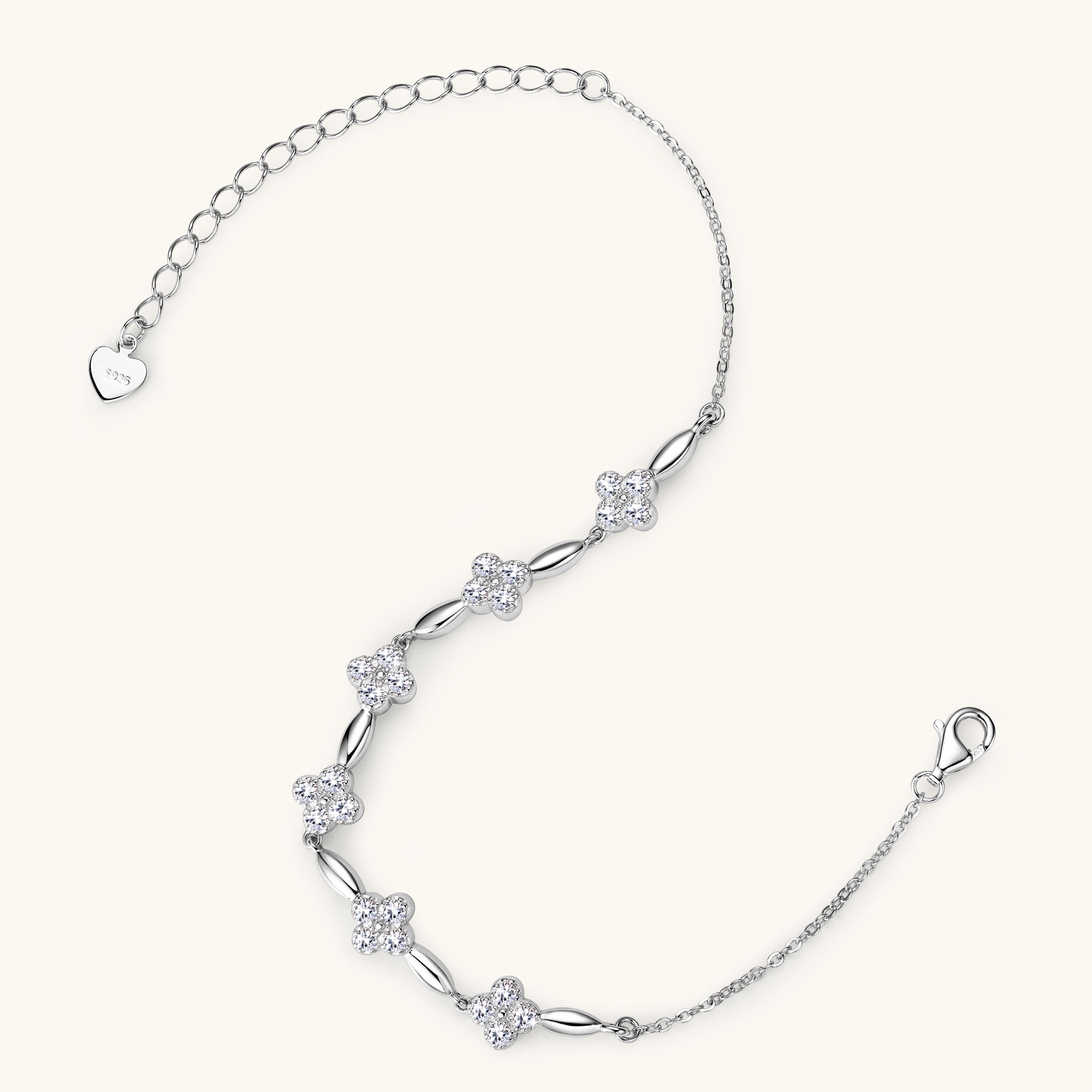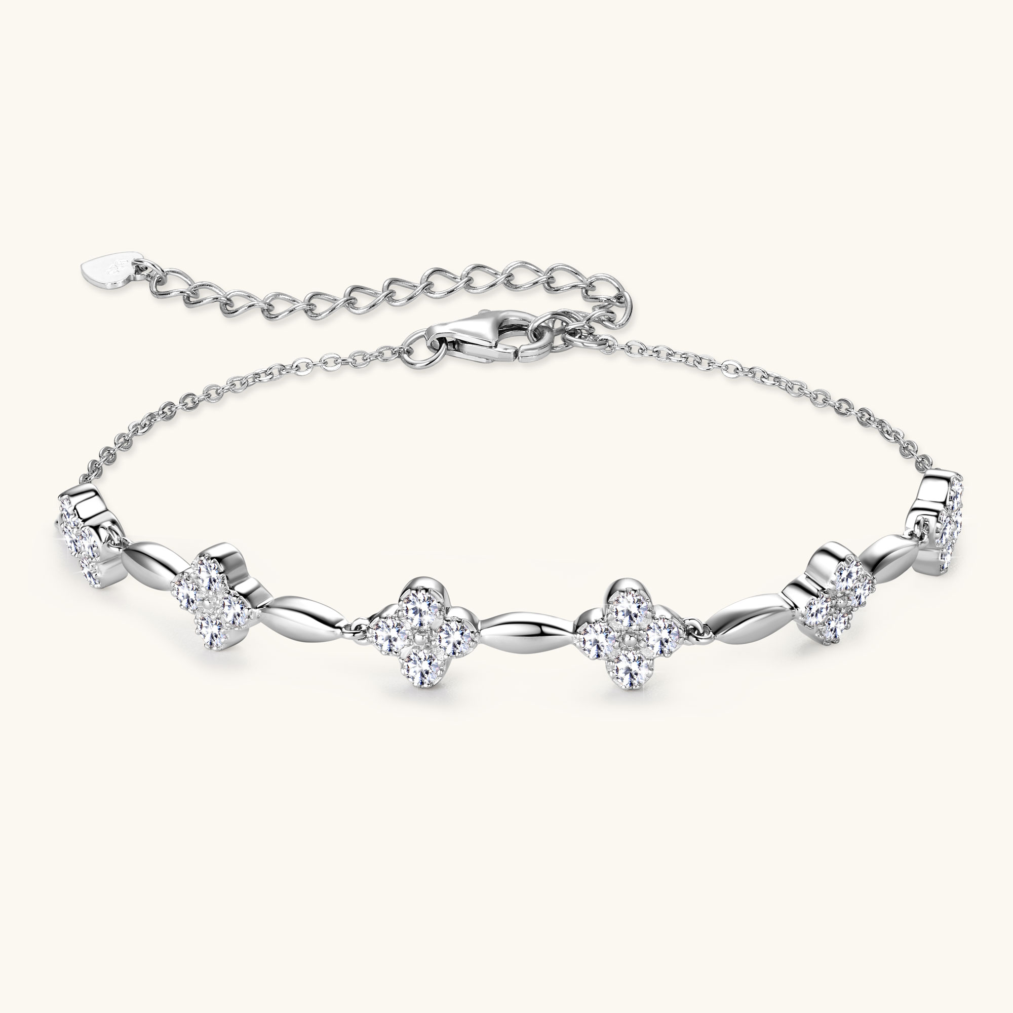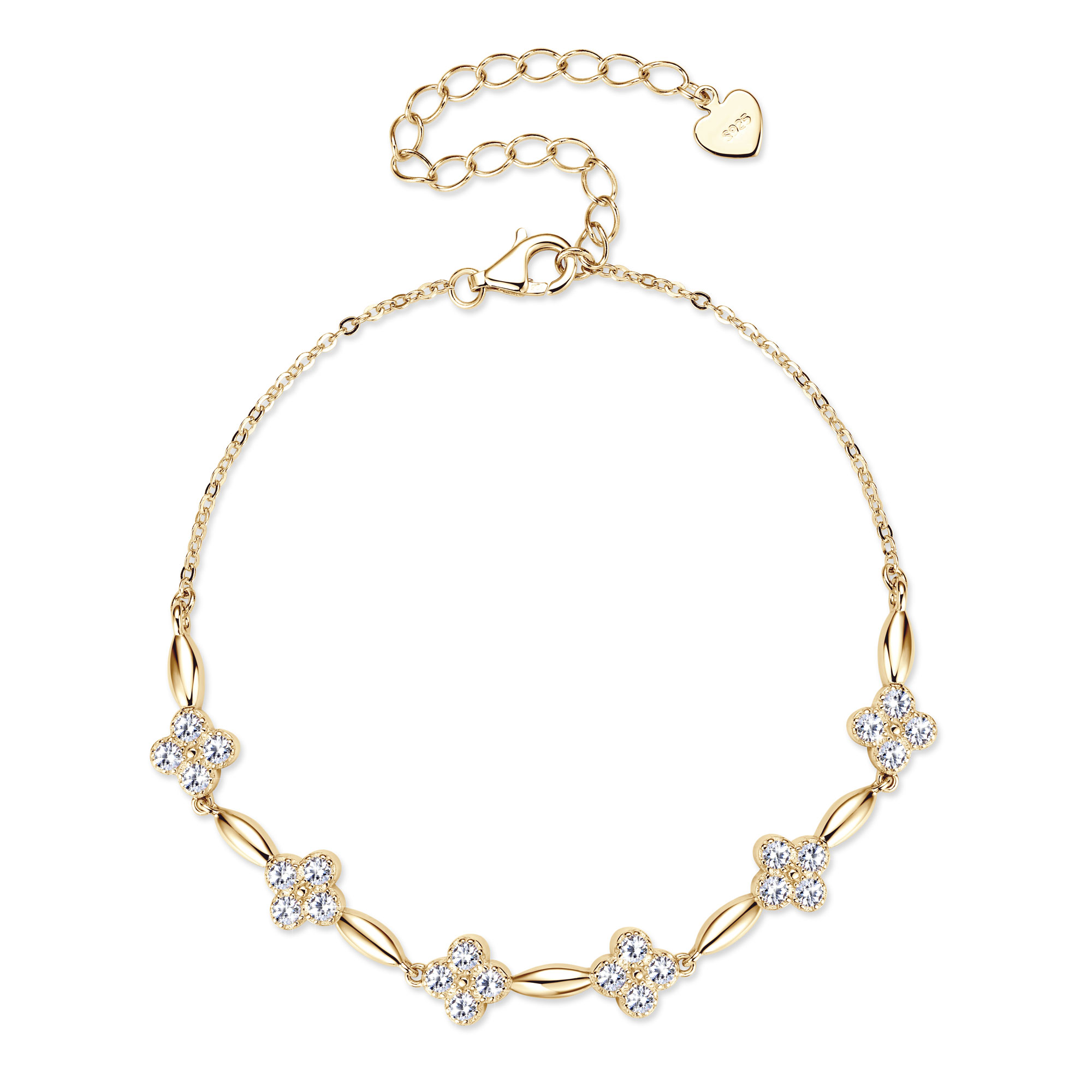 Sweetrain 925 Sterling Silver Flower Clover Moissanite Bracelet for Women 18k Gold Plated Fine Jewelry Gift GRA Certified