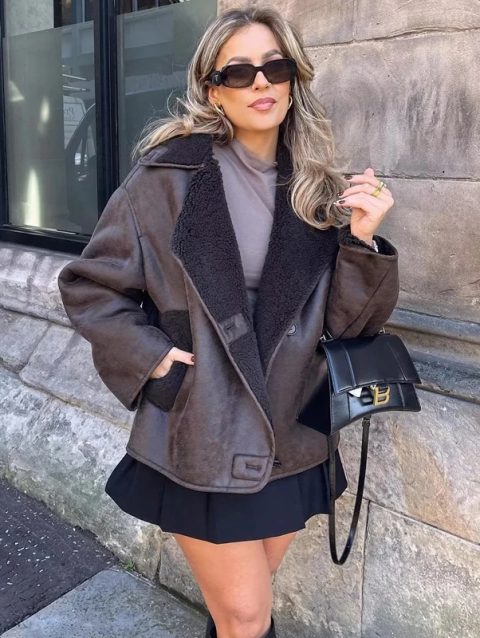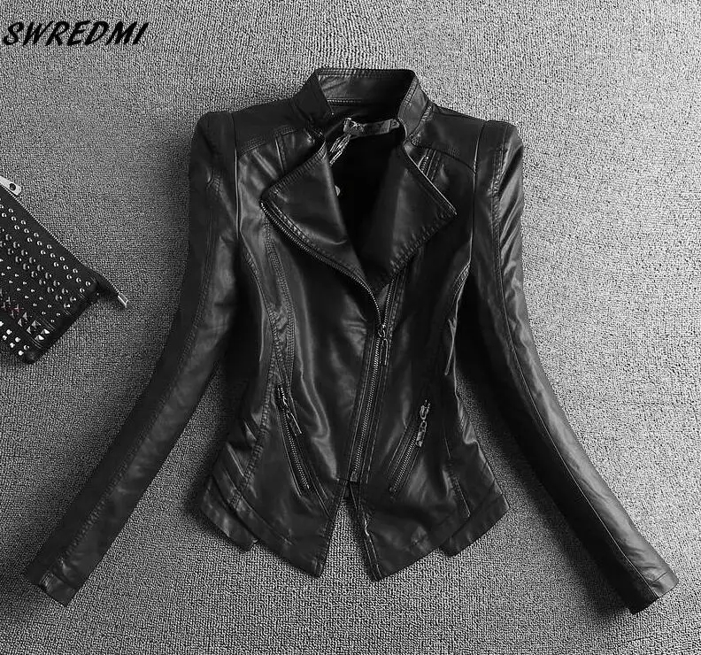 SWREDMI 2024 New Slim Casual Women Leather Jacket Mandarin Collar Short Black Leather Coats Spring And Autumn Suede Outerwear