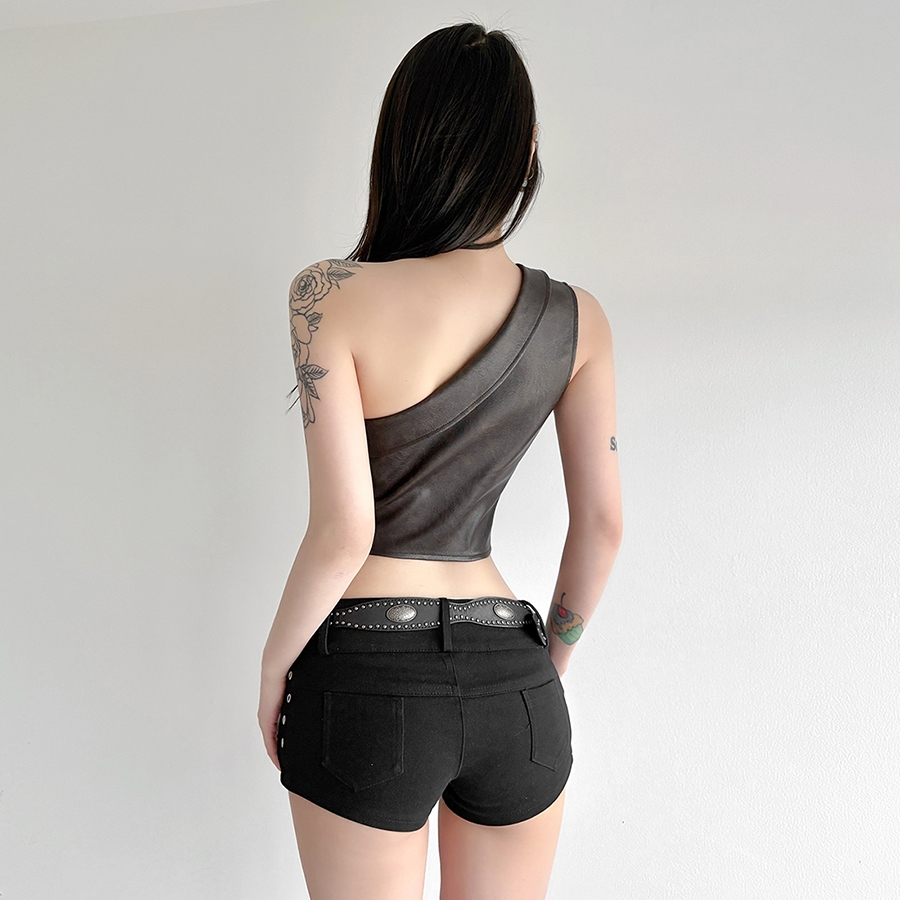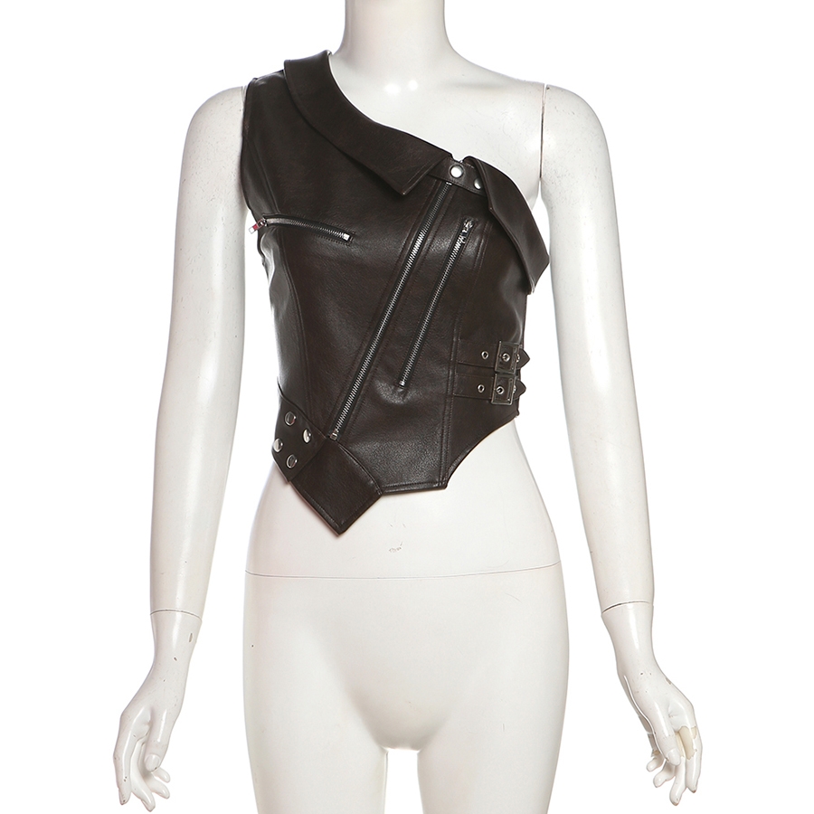 SylCue Faux Leather Vest Women Irregular Turn-down Collar Sleeveless Zipper Decoration Hot Chick Street Wild Sexy Style Outfits