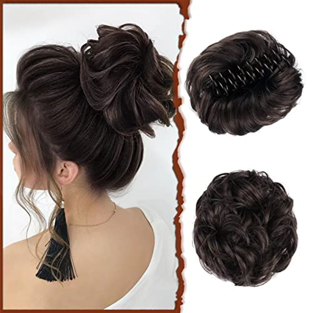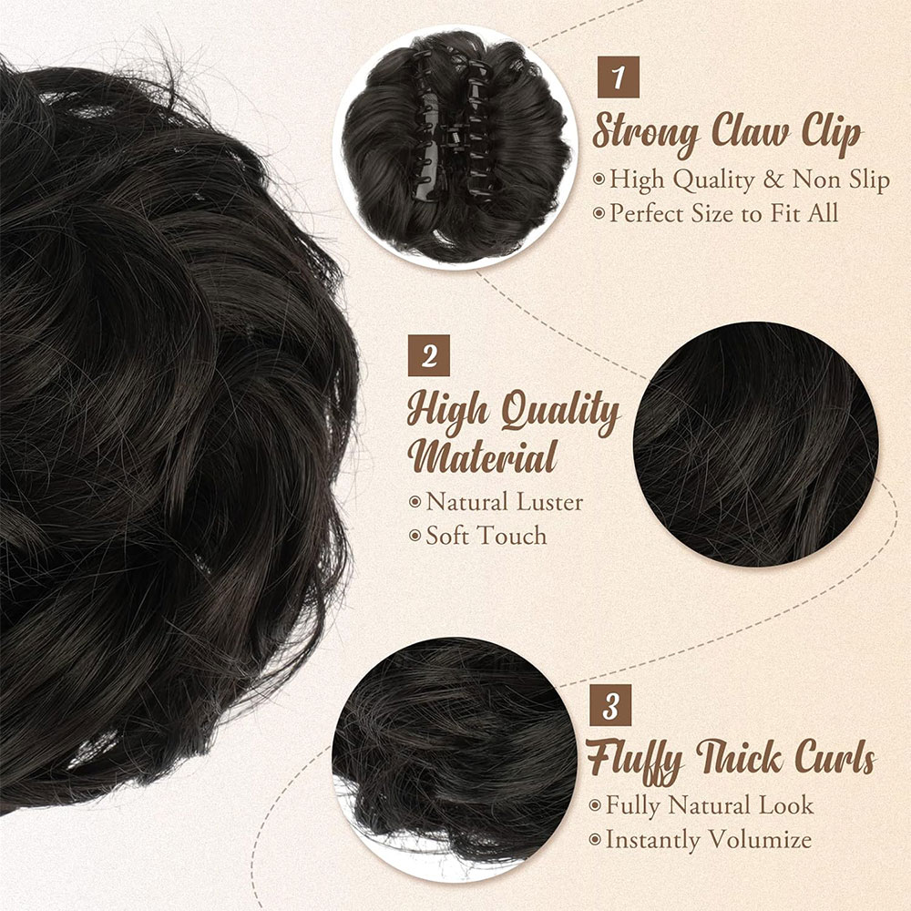 Synthetic Claw Messy Hair Bun Piece Short Curly Hair Natural Wavy Curly For Women Daily Use
