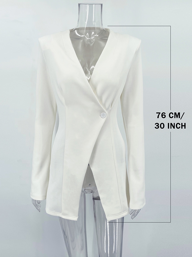 2 reviews for TARUXY Slim White Button Blazer Coat For Women V Neck Long Sleeve Office Lady Coat Slit High Waisted Outwear Autumn Winter New