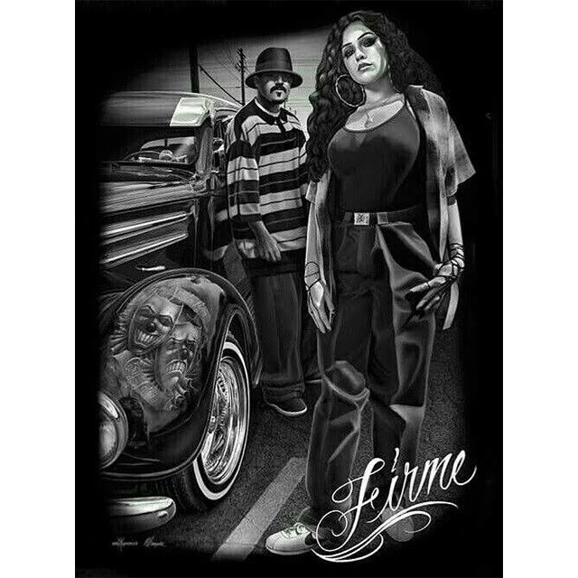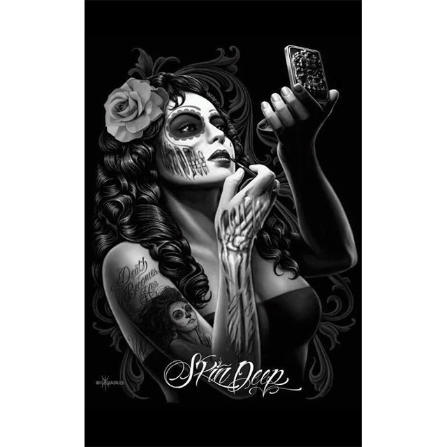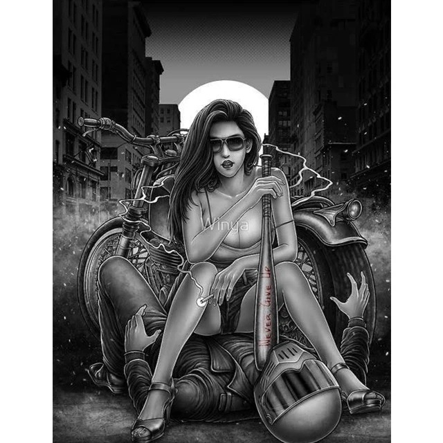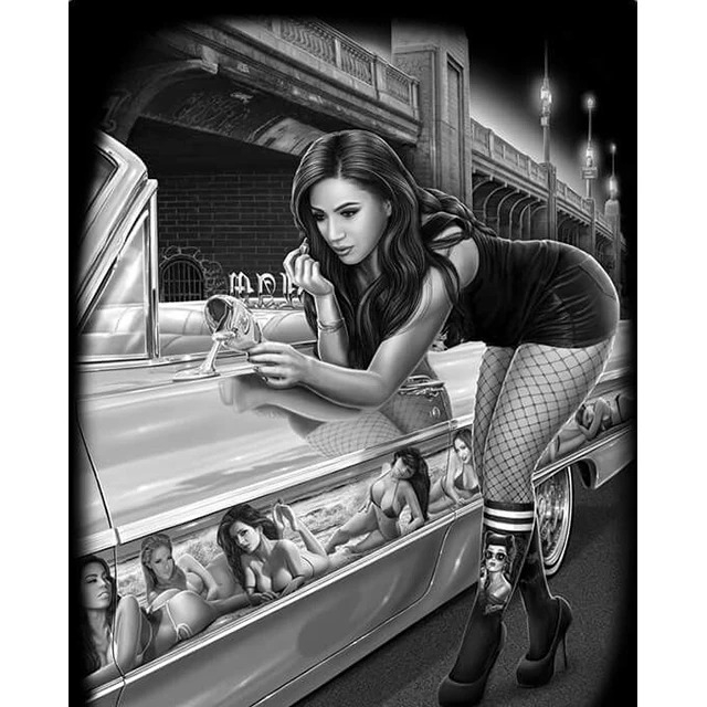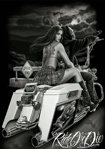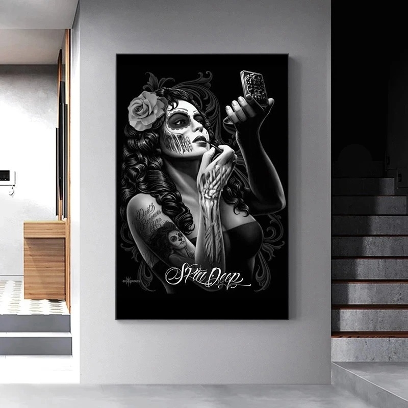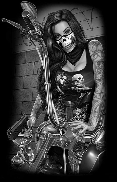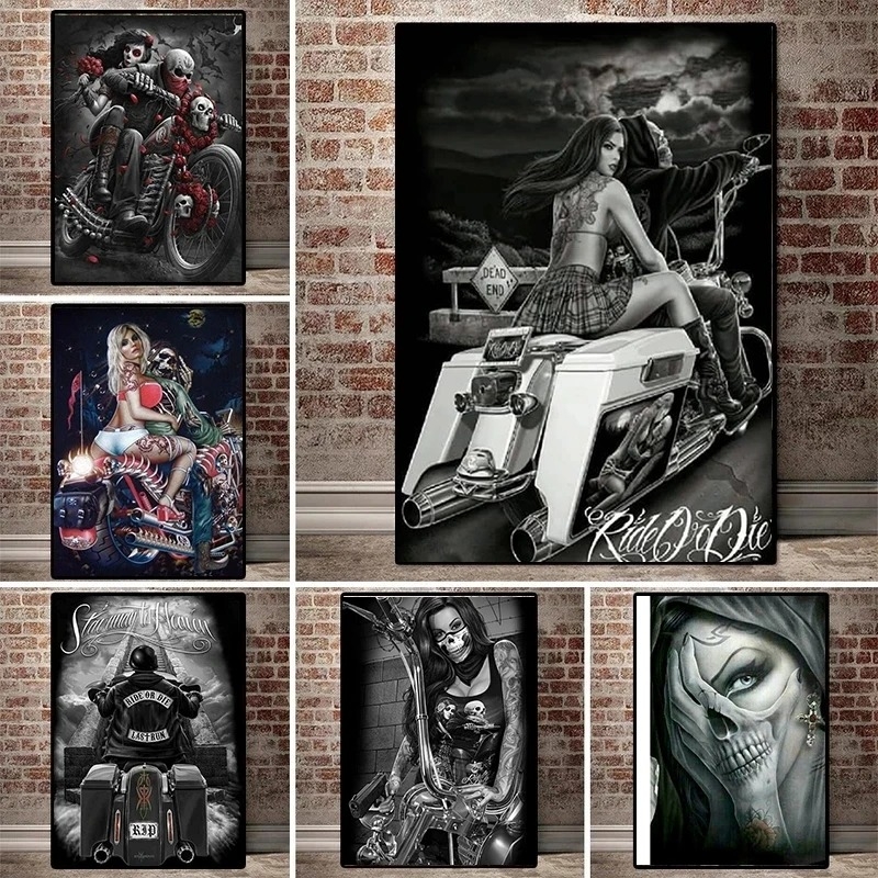 Tattoo Rider Black and White Graffiti Canvas Printing Girl Motorcycle Mexican Chicano Canvas Painting Art Decoration Aesthetics