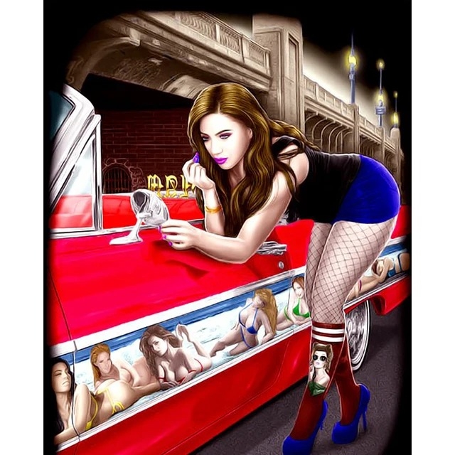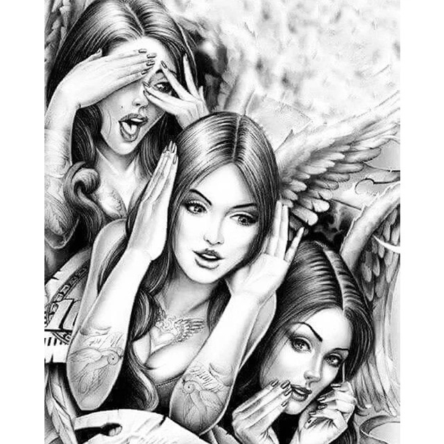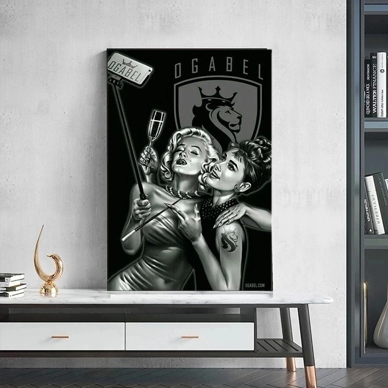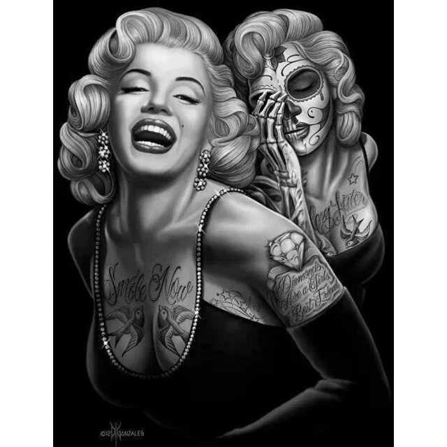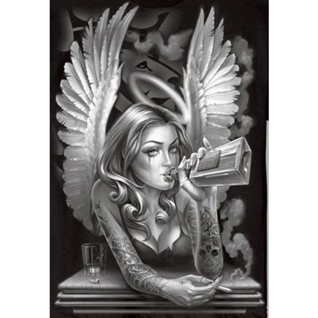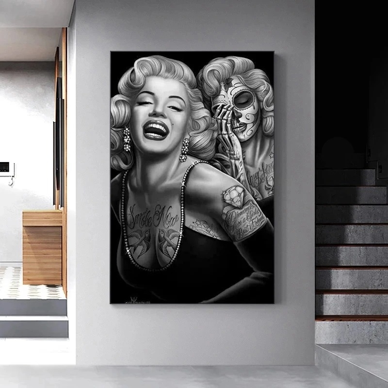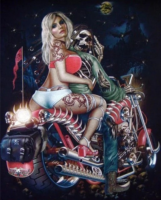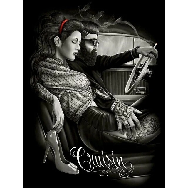 Tattoo Rider Black and White Graffiti Canvas Printing Girl Motorcycle Mexican Chicano Canvas Painting Art Decoration Aesthetics