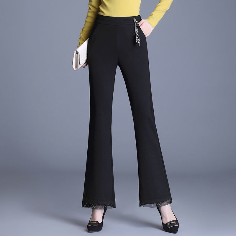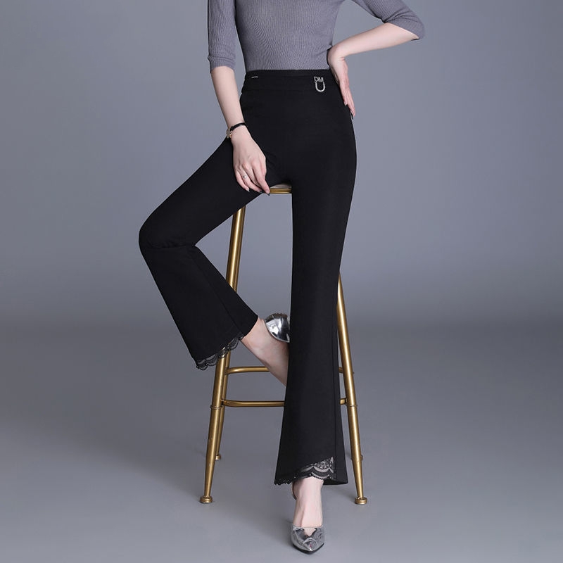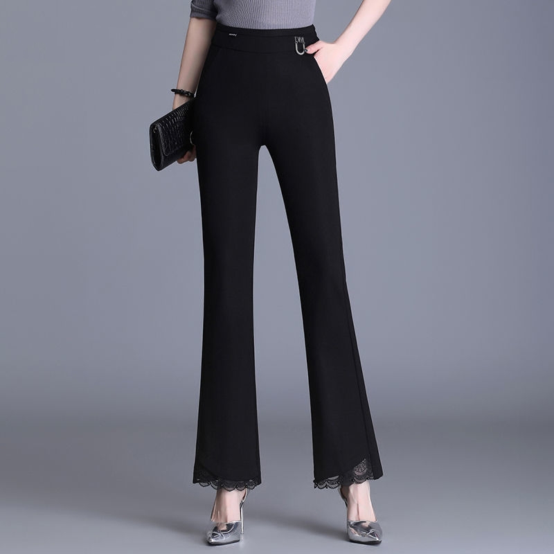 Be the first to review “Temperament Fashion Spring Summer Pants Women Elastic Waist Solid Pocket Lace Split Office Lady Slim High Waist Flared Trousers” Cancel reply