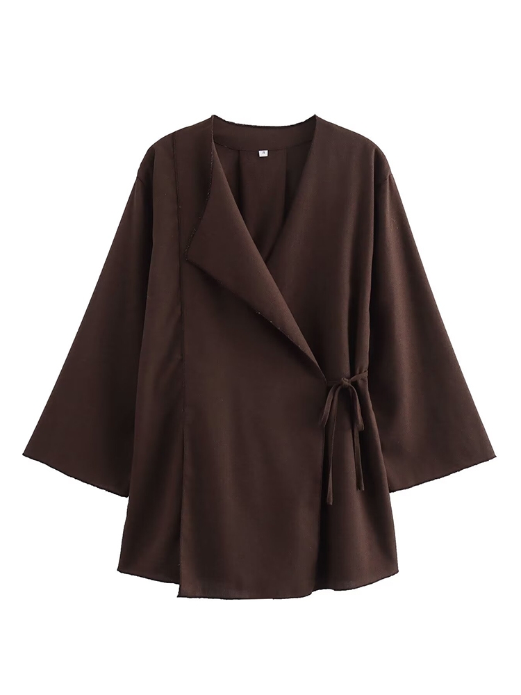 TFMLN Fashion 2 Pieces Sets Women Spring Summer Kimono Style Loose Lace Up Shirts Tops Women’s Wide Leg Pants Sets