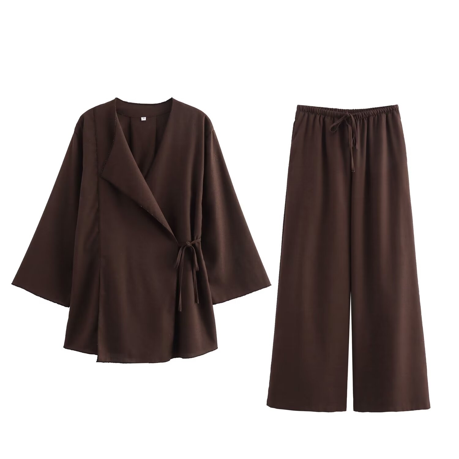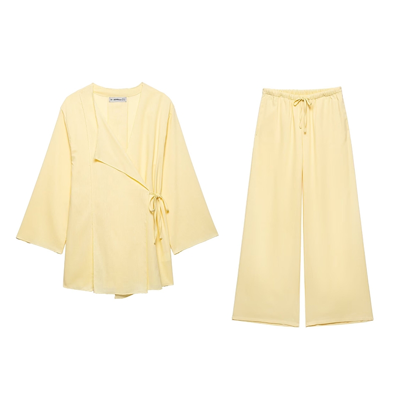 2 reviews for TFMLN Fashion 2 Pieces Sets Women Spring Summer Kimono Style Loose Lace Up Shirts Tops Women’s Wide Leg Pants Sets