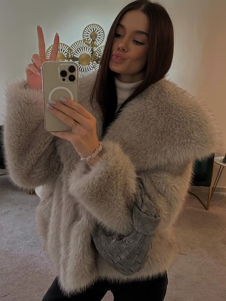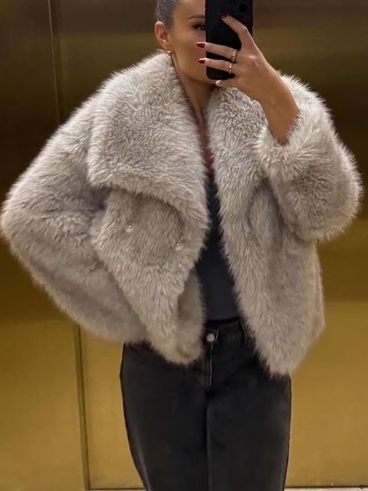 TFMLN Women Fashion Warm Faux Fur Jacket Warm Coat Female Pocket Outerwear Chic Lapel Collar Thick Coat