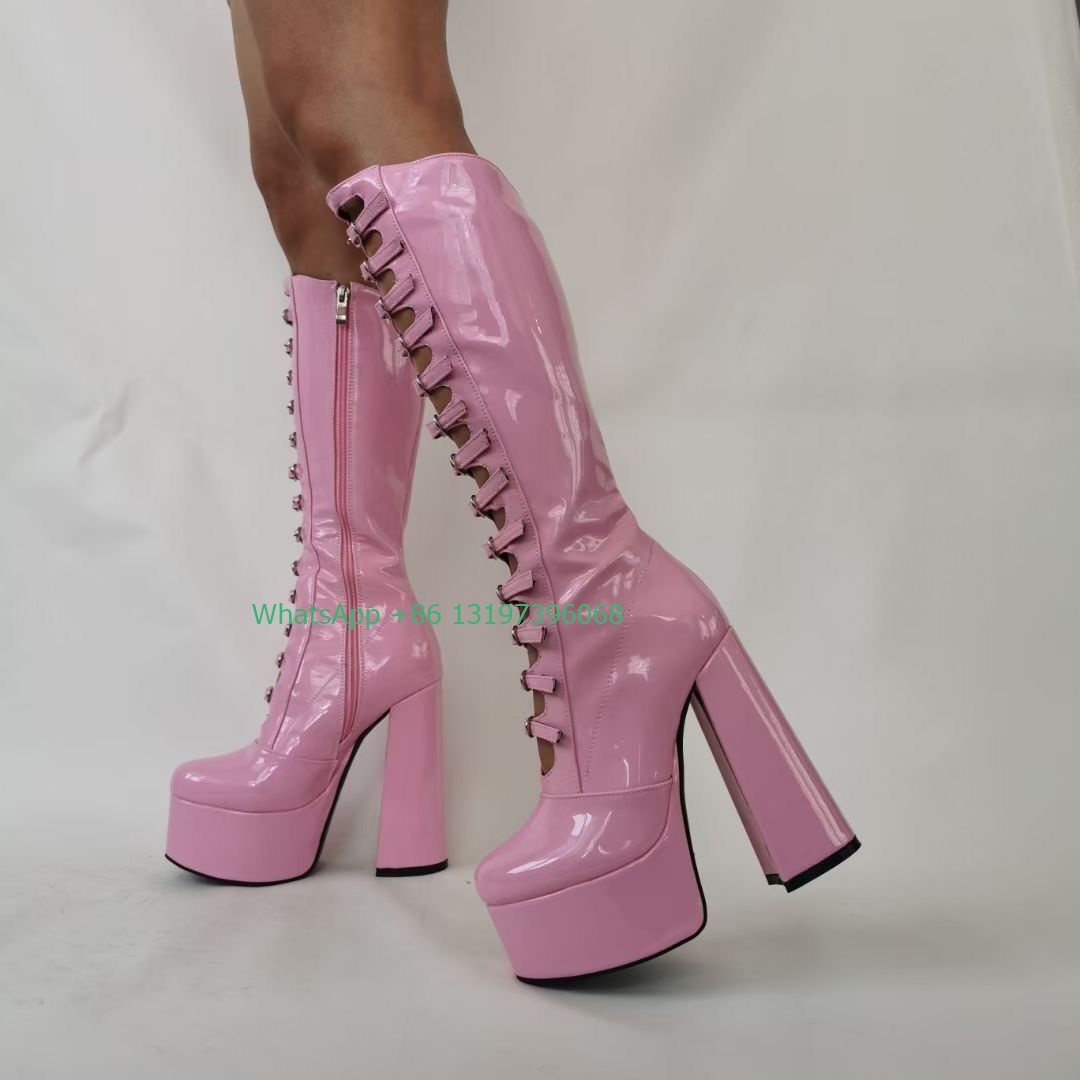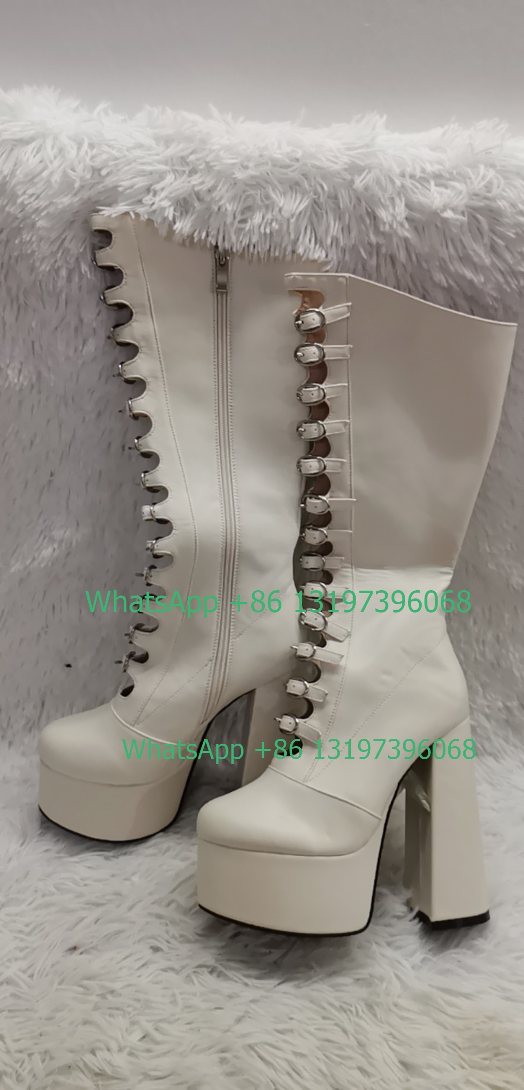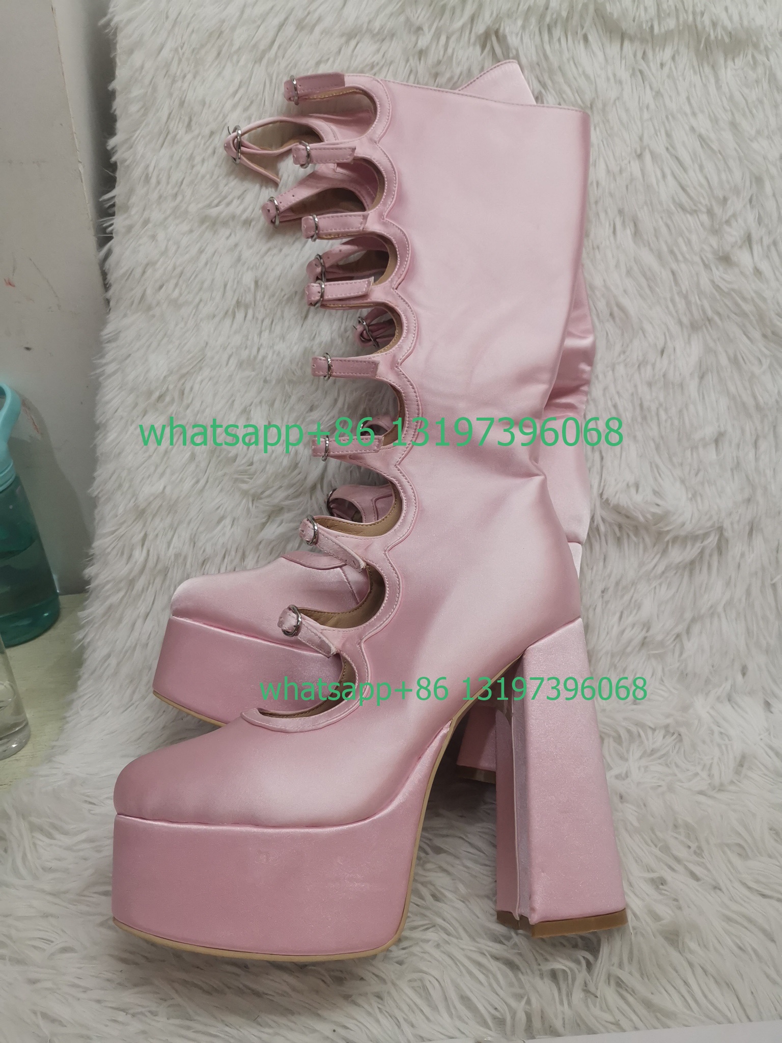 2 reviews for Thick Sole Black Hollow Calf Boots Side Zipper Rough Square Heel Pole Dance Shoes Super Heel Sexy Boots Large Size Footwear
