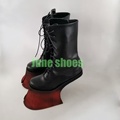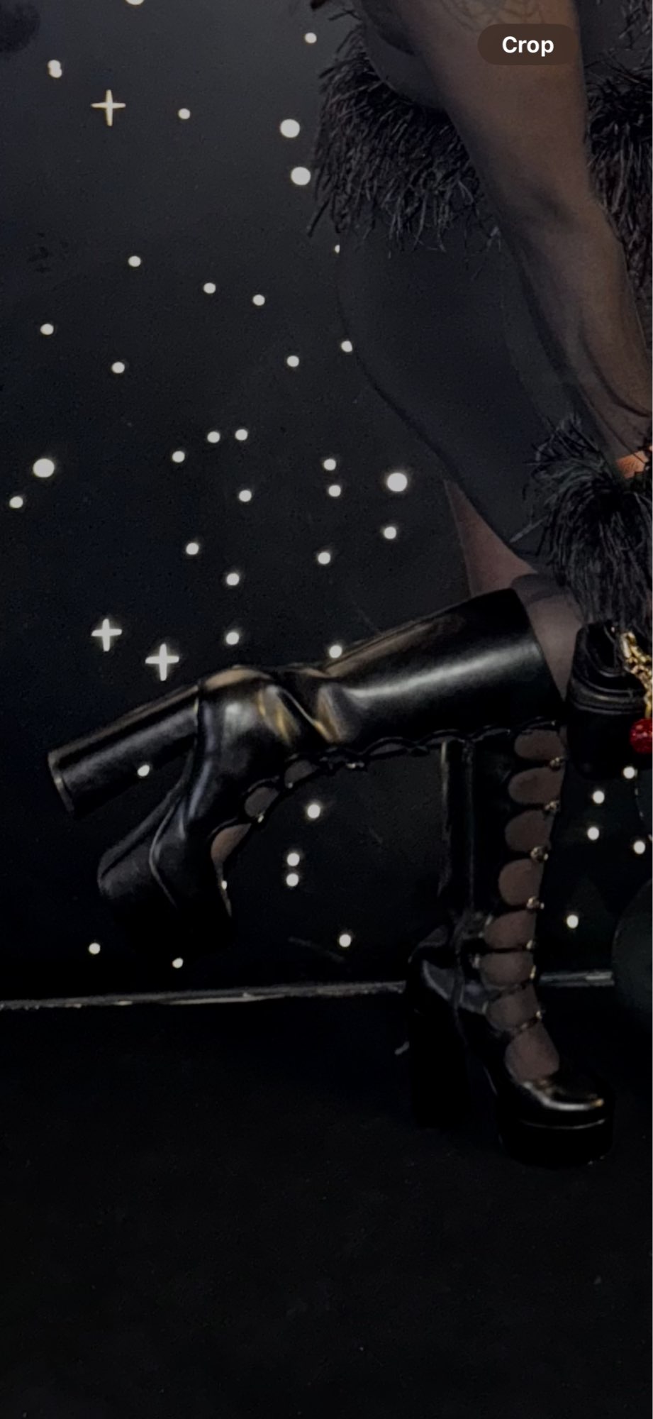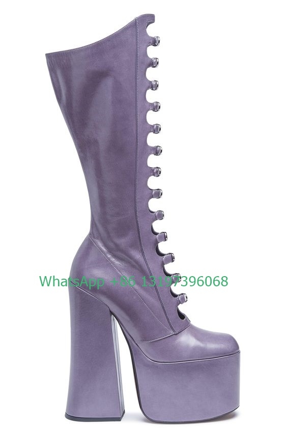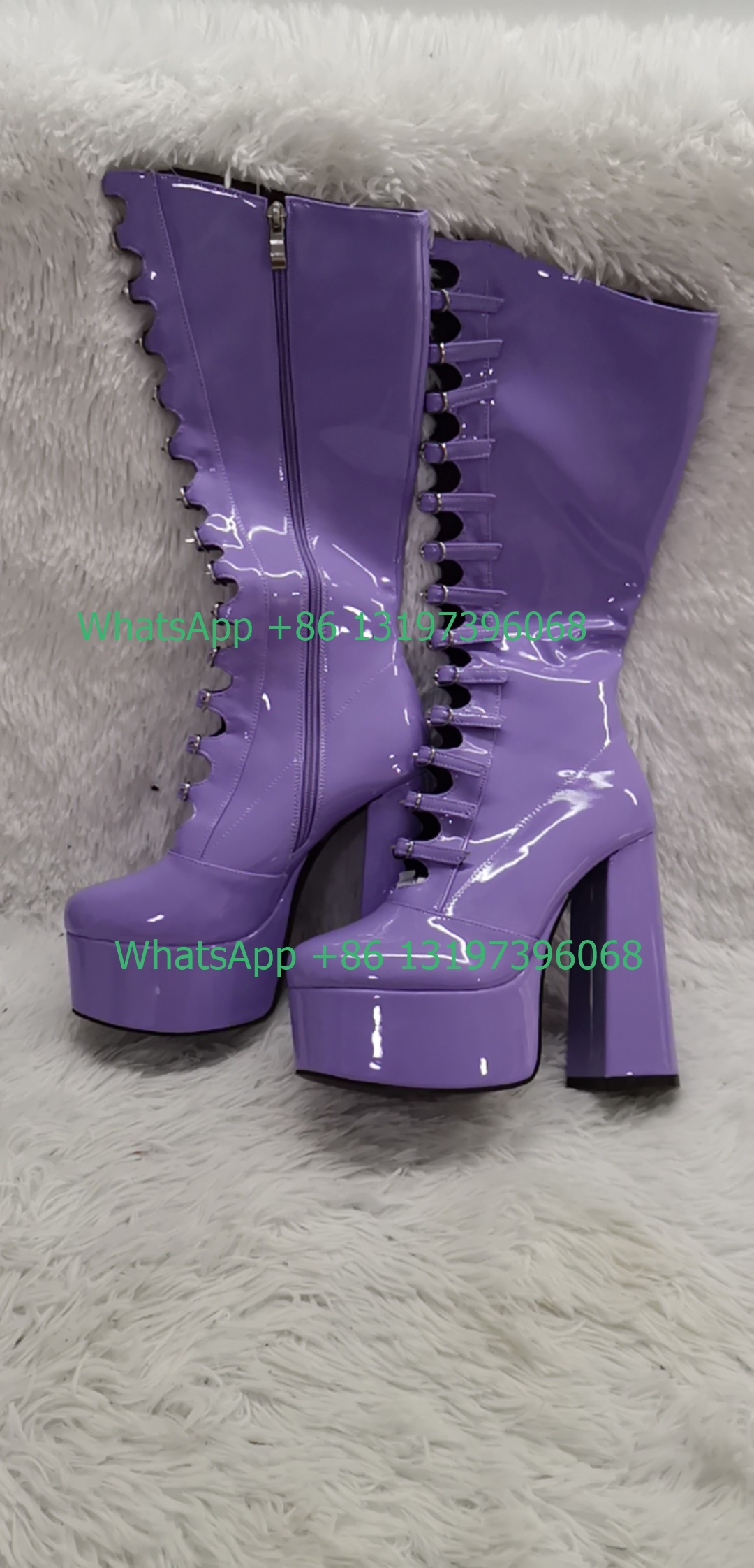 2 reviews for Thick Sole Black Hollow Calf Boots Side Zipper Rough Square Heel Pole Dance Shoes Super Heel Sexy Boots Large Size Footwear
