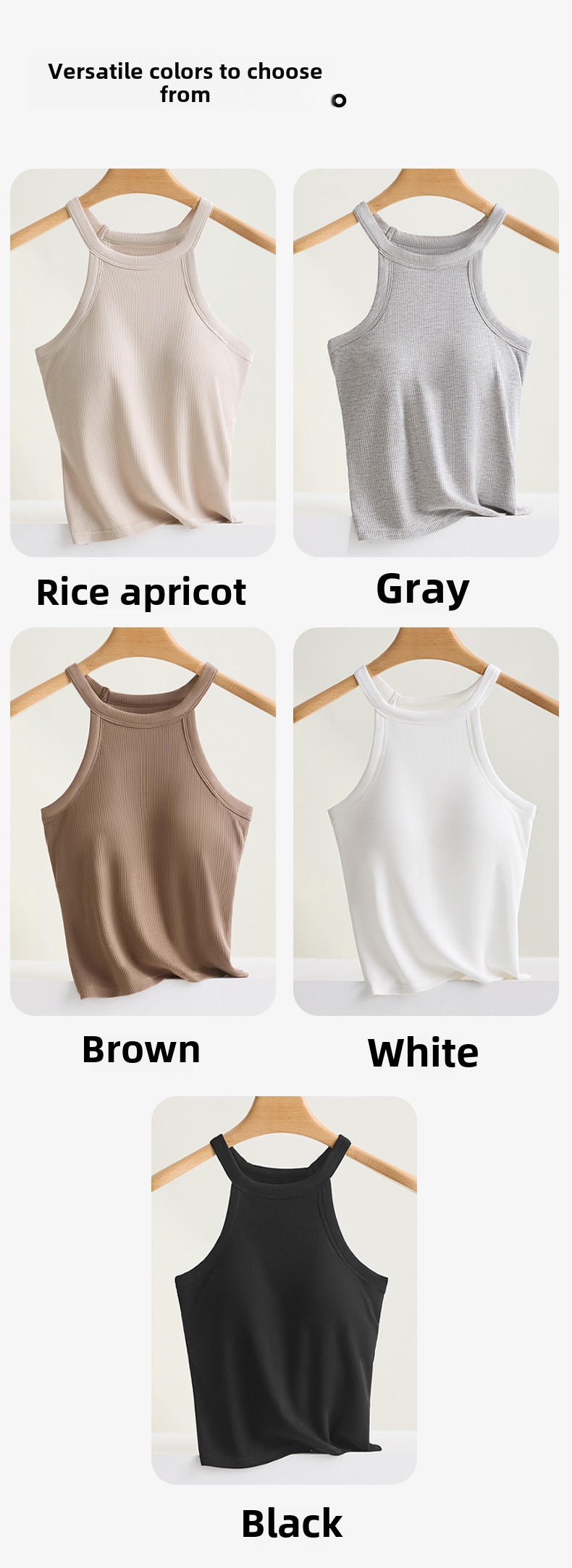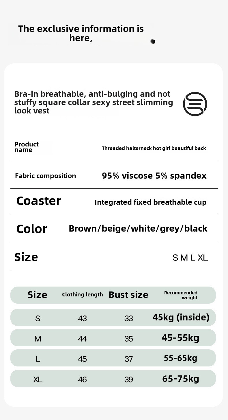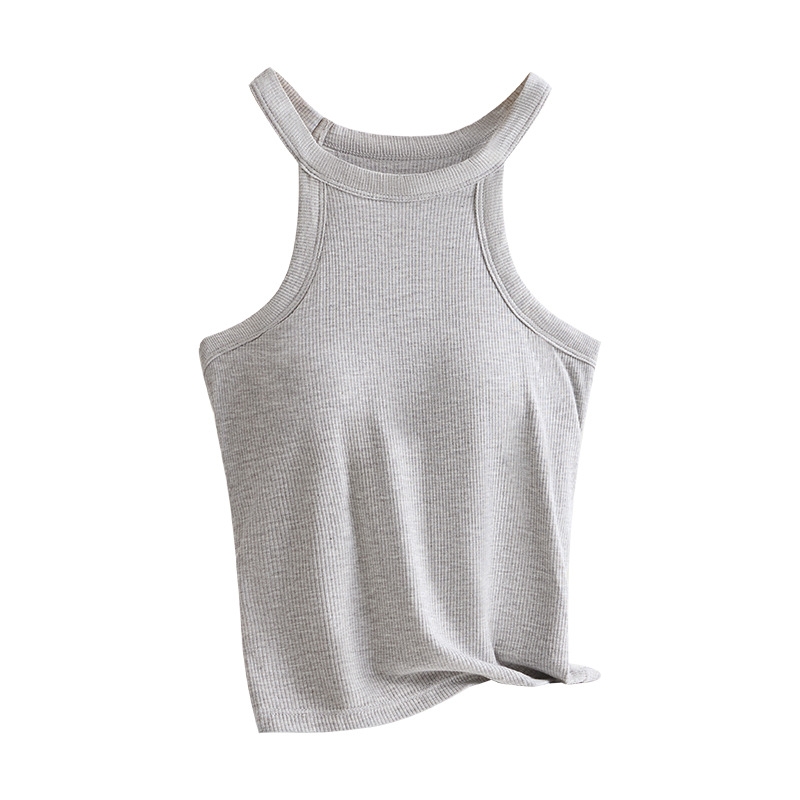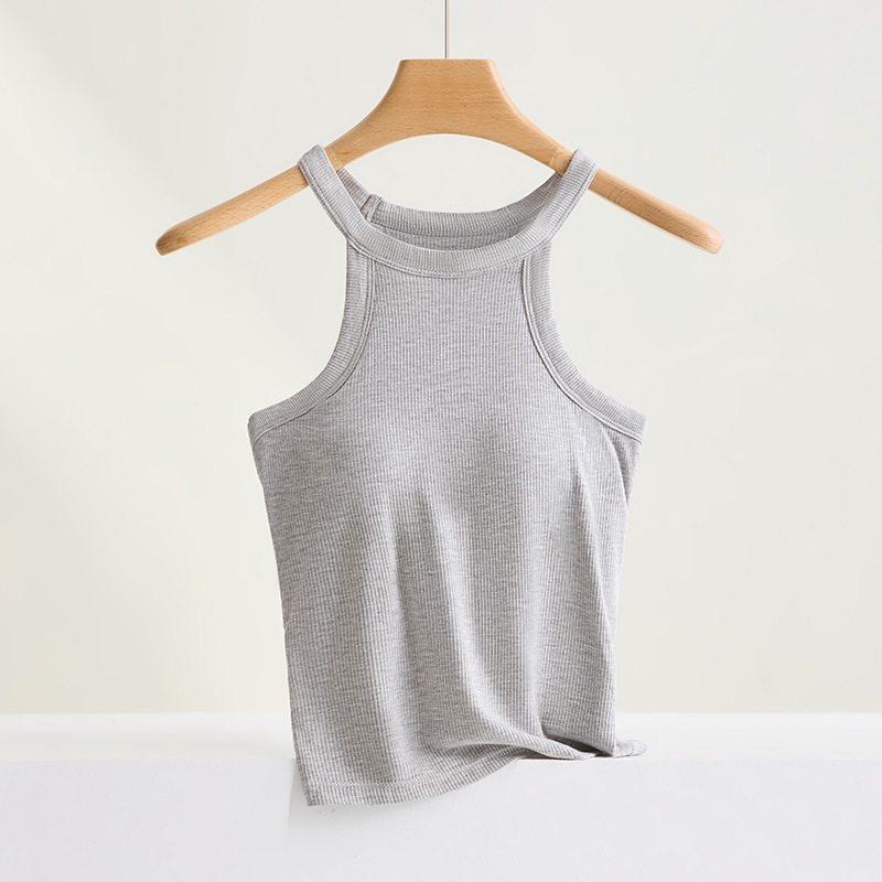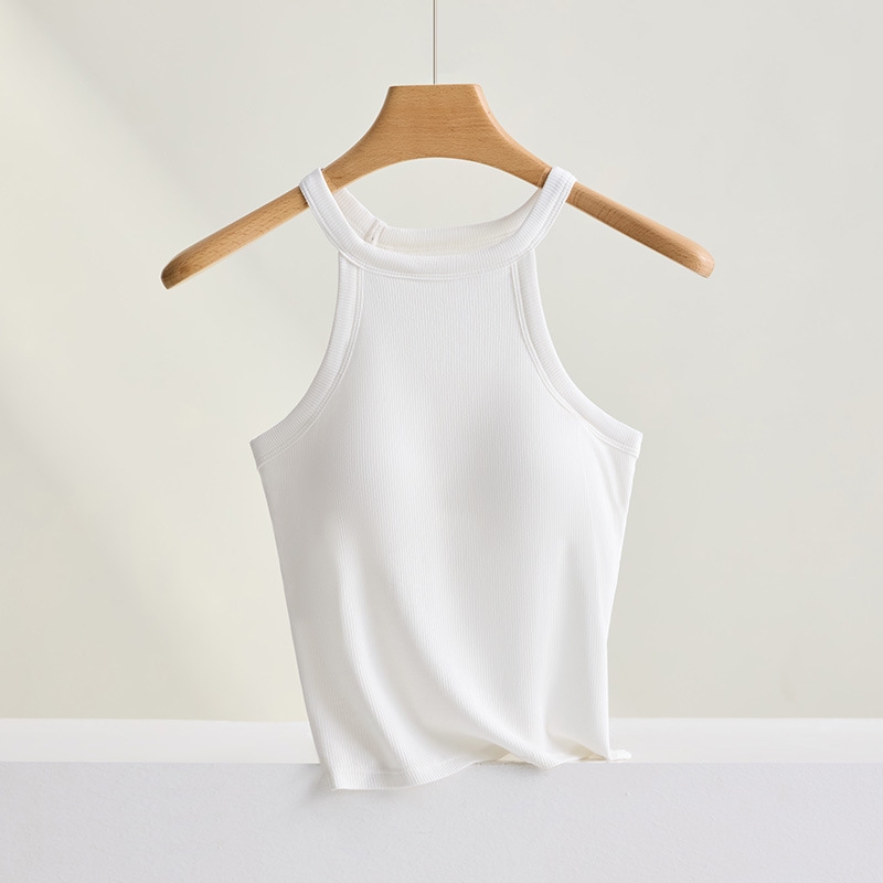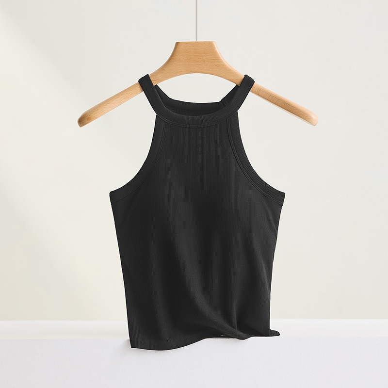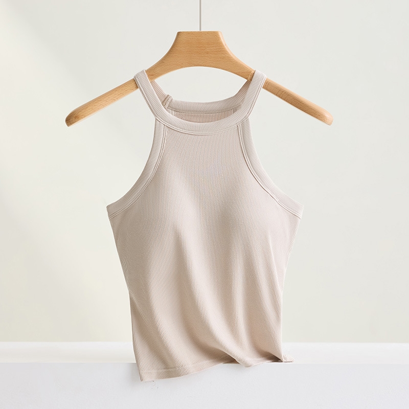 Threaded Halter Neck Camisole Top With Build-in Bra High Elastic Slim-fitting Sling Fixed Cup Breathable Women Underwear