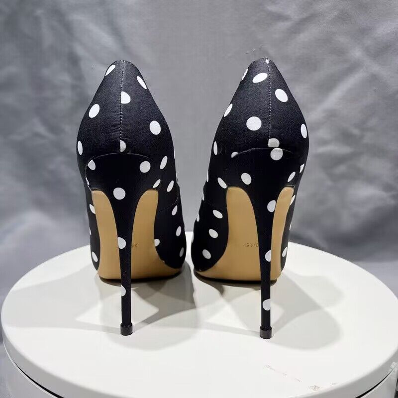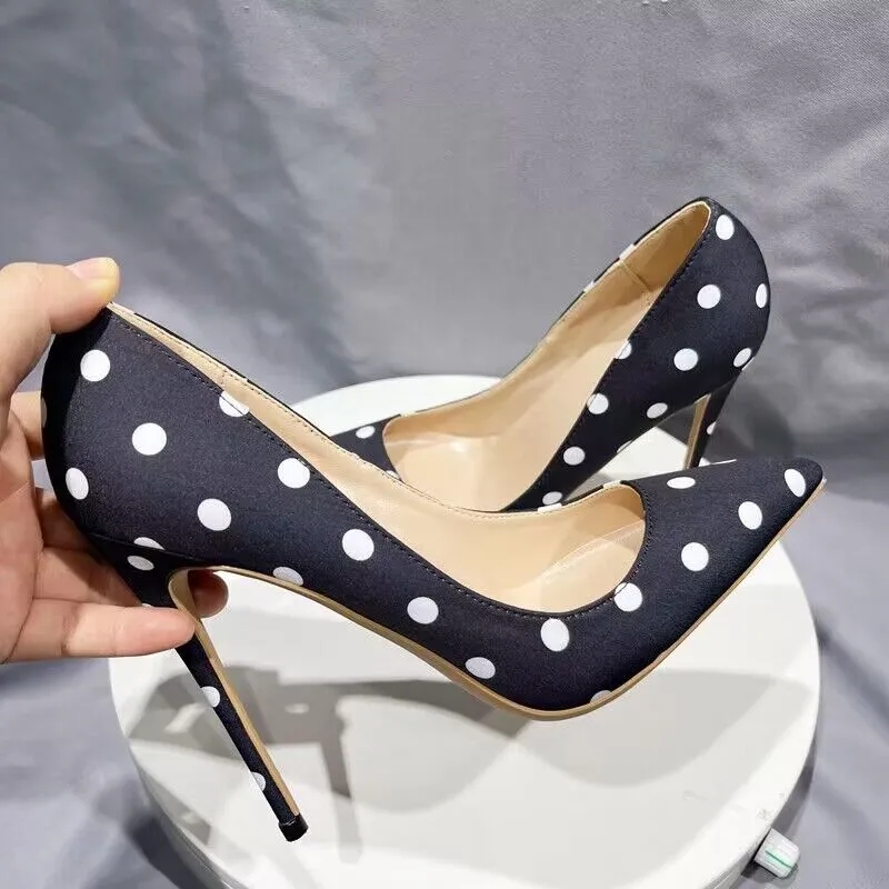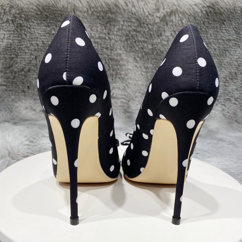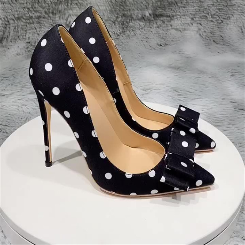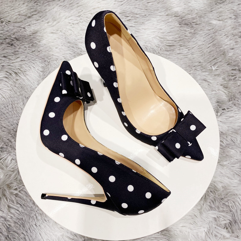 2 reviews for Tikicup Polka Dot Women Black Satin Stiletto High Heels with Bowknot Chic Ladies Designer Dress Shoes Pointed Toe Silk Pumps