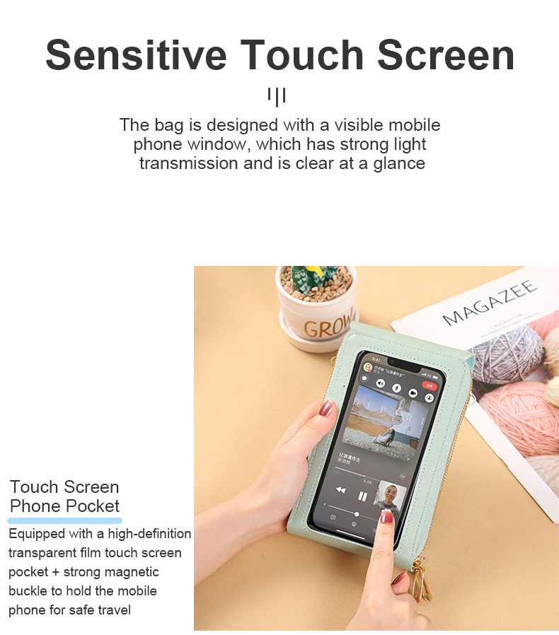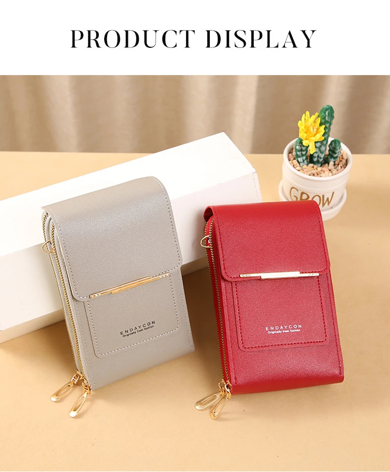 Touch Screen Cell Phone Wallet Women PU Leather Mobile Phone Bag Mini Flap Shoulder Bag Purses Crossbody Bags Lady Small Handbag