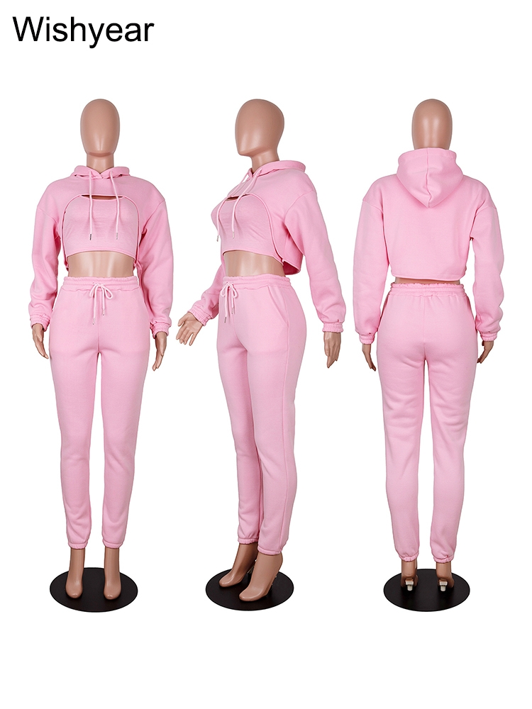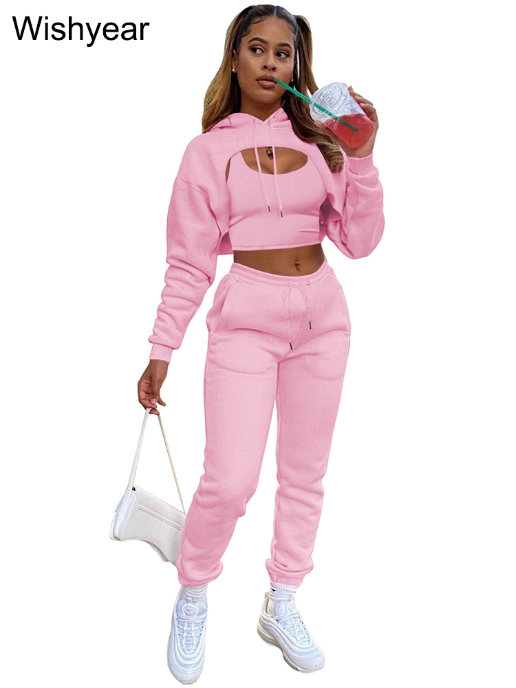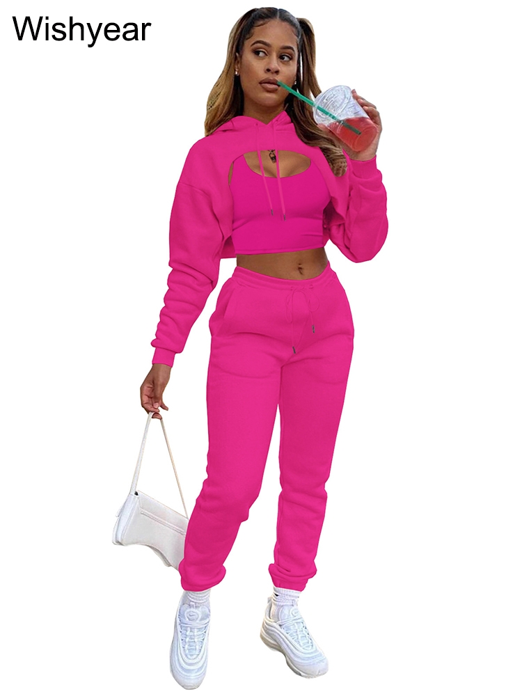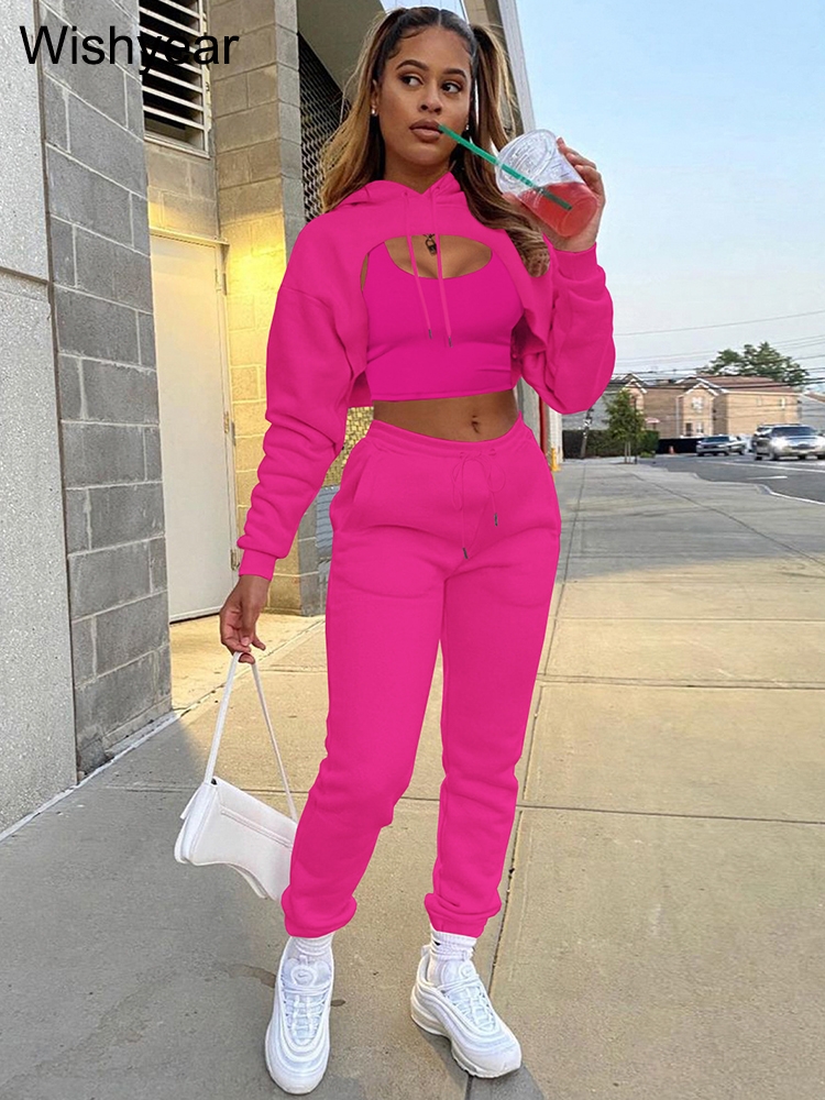 Tracksuit 3 Pieces Pants Sets for Women Velvet Hoodie Crop Tops+Vest+Sweatpants Matching Suit Sport Jogger Winter Fall Outfits