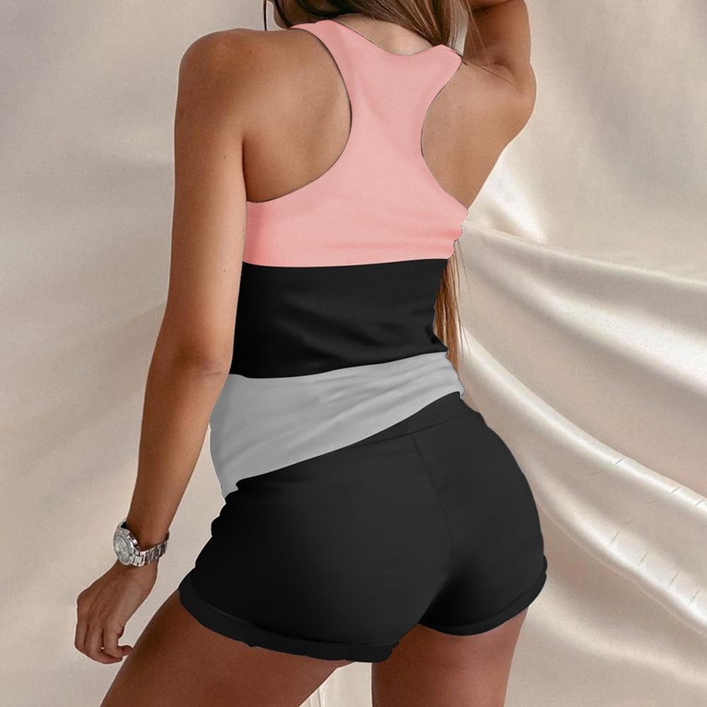 A Set of Comfortable Breathable and Fashionable Women’s Home Clothes Suit with Suspenders Shorts Trousers Style Three-piece Set