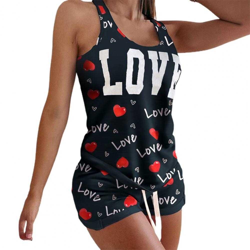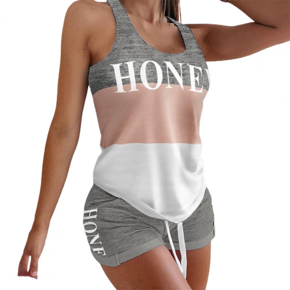 2 reviews for Tracksuit Pajama Sets Women Letter Design Drawstring Pajama Lounge Shorts Sets Female Summer Night Wear Suits