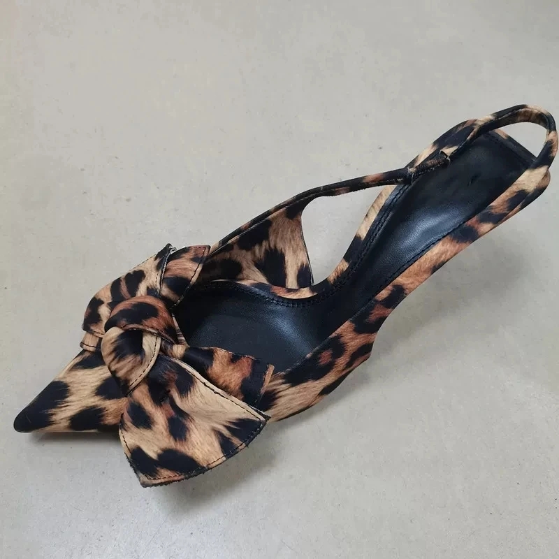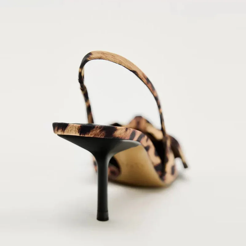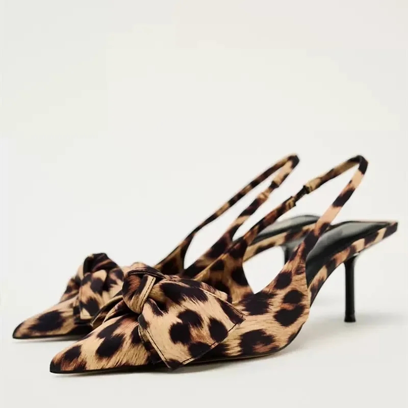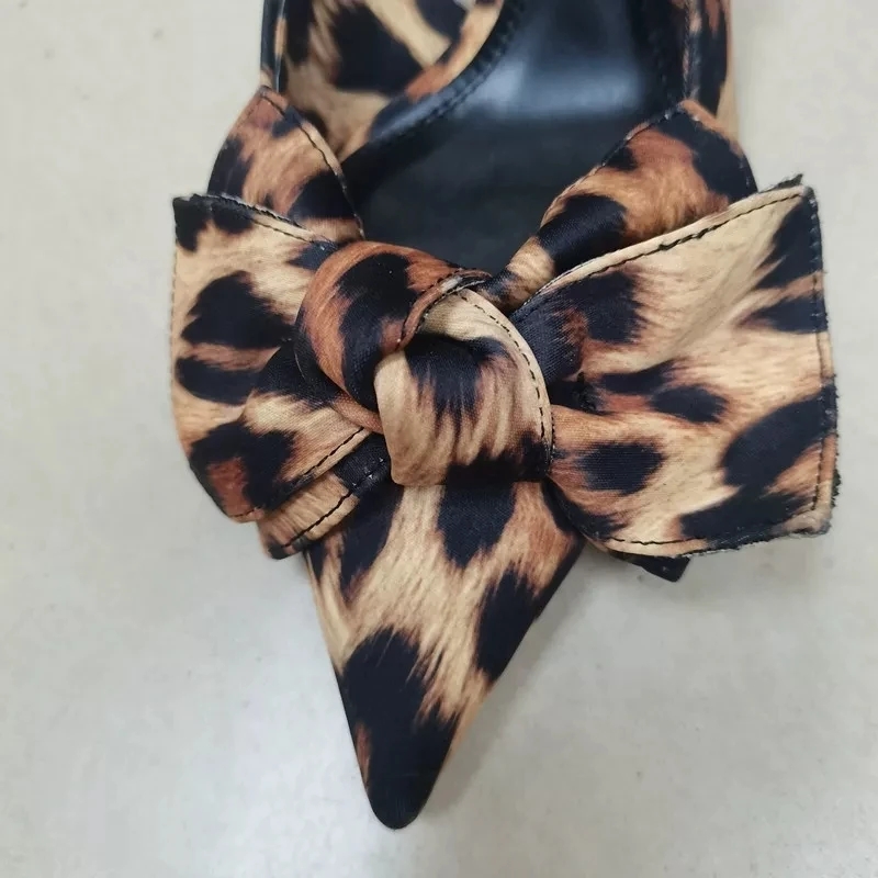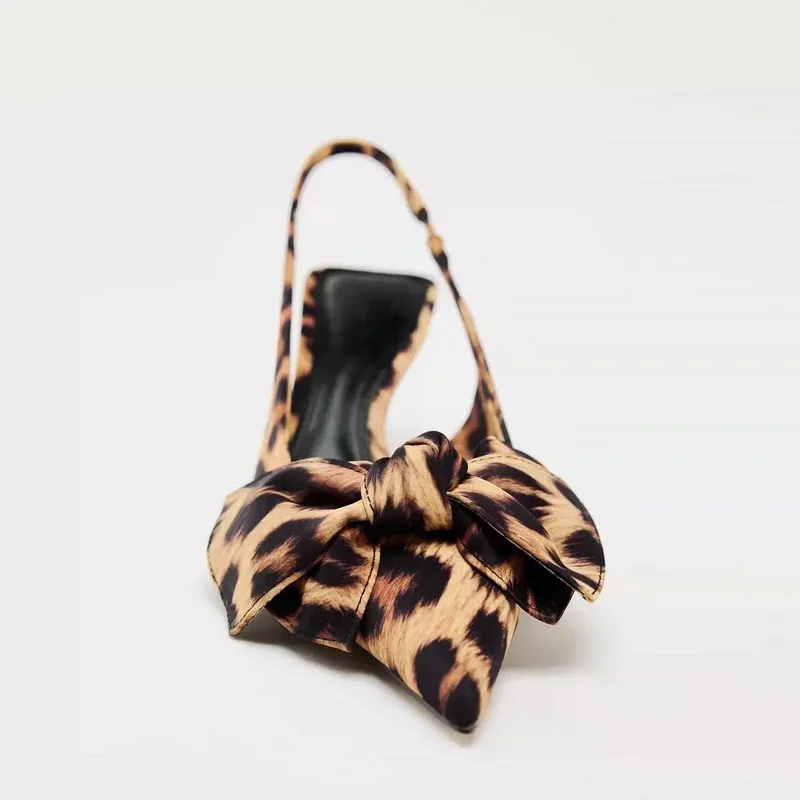 2 reviews for TRAF 2024 Woman Leopard Print Pointed End High Heels Pumps Summer Fashion Bow Knot Slender Elegant High Heels Mules Women Shoes