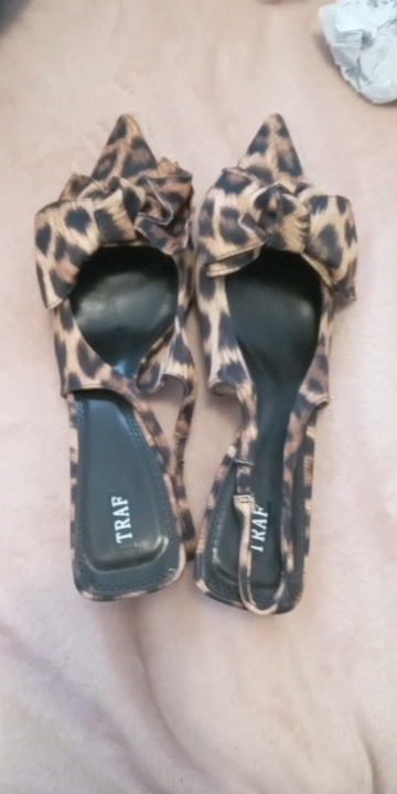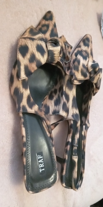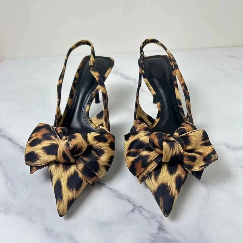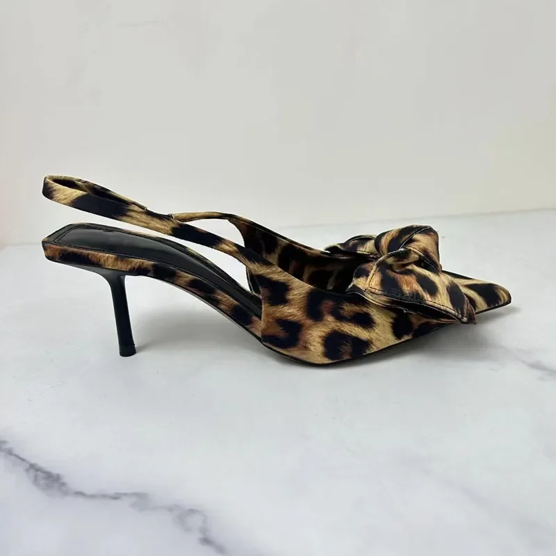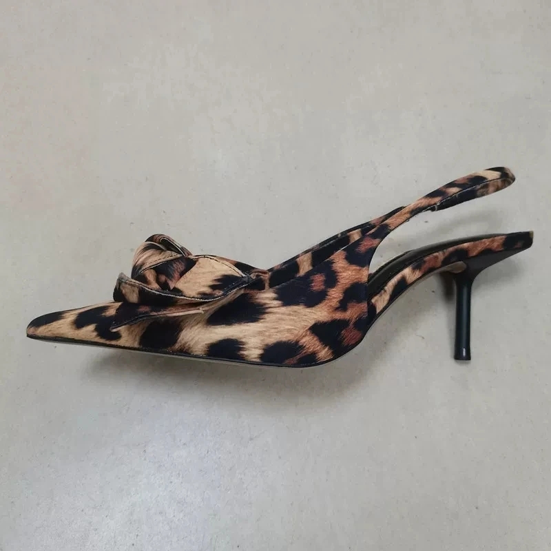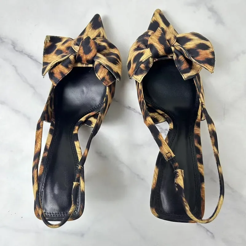 2 reviews for TRAF 2024 Woman Leopard Print Pointed End High Heels Pumps Summer Fashion Bow Knot Slender Elegant High Heels Mules Women Shoes