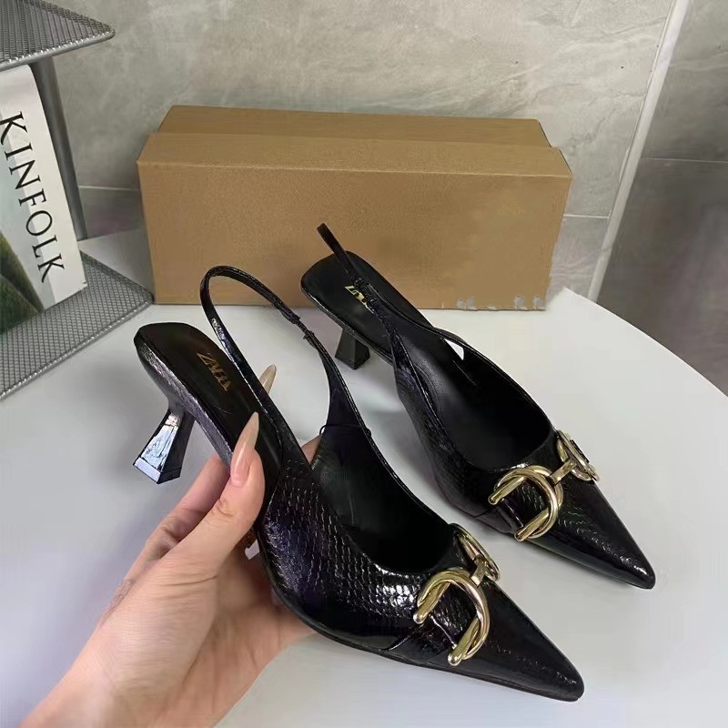 Be the first to review “TRAF Women Summer Black Pumps 2024 Golden Decorative Details Pointed High Heels Shallow Thin Heel Woman Shoes Slingback Sandals” Cancel reply