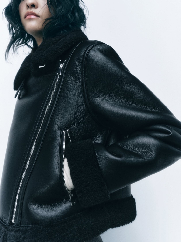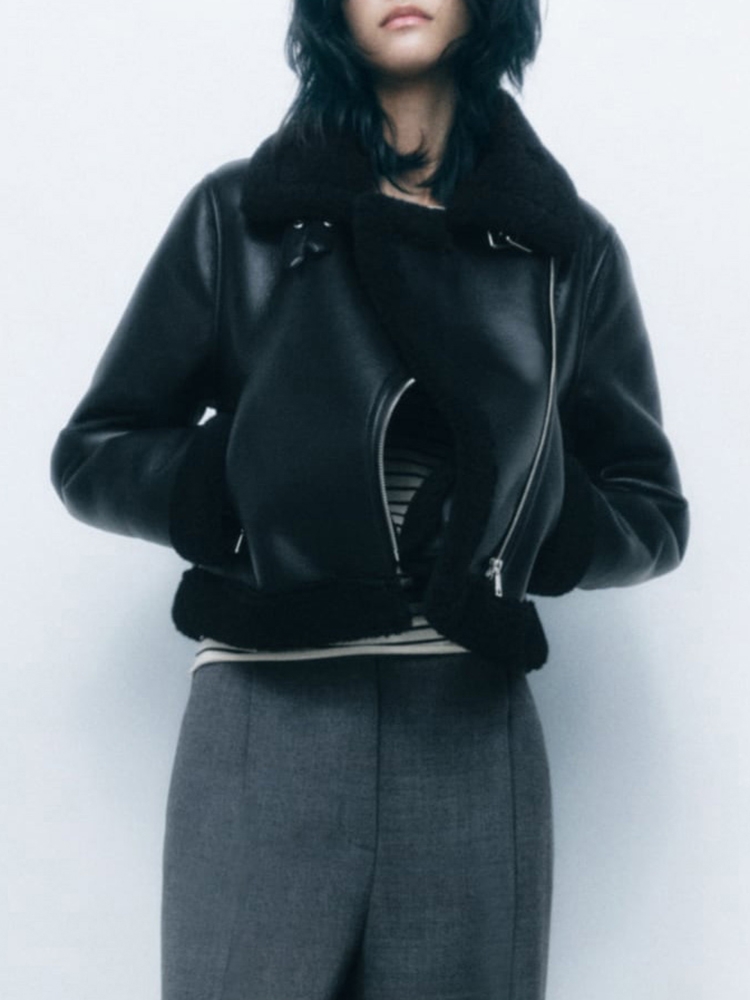 UNIZERA2023 Autumn and Winter New Women’s Fashion Versatile Short Motorcycle Faux Leather Pilot Jacket Coat Leather Coat