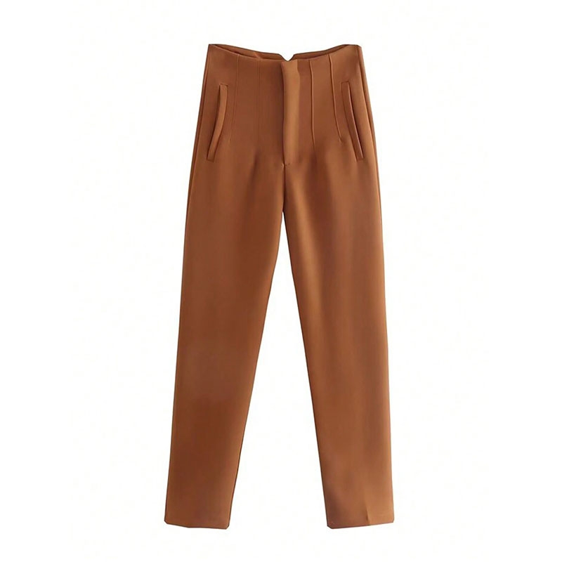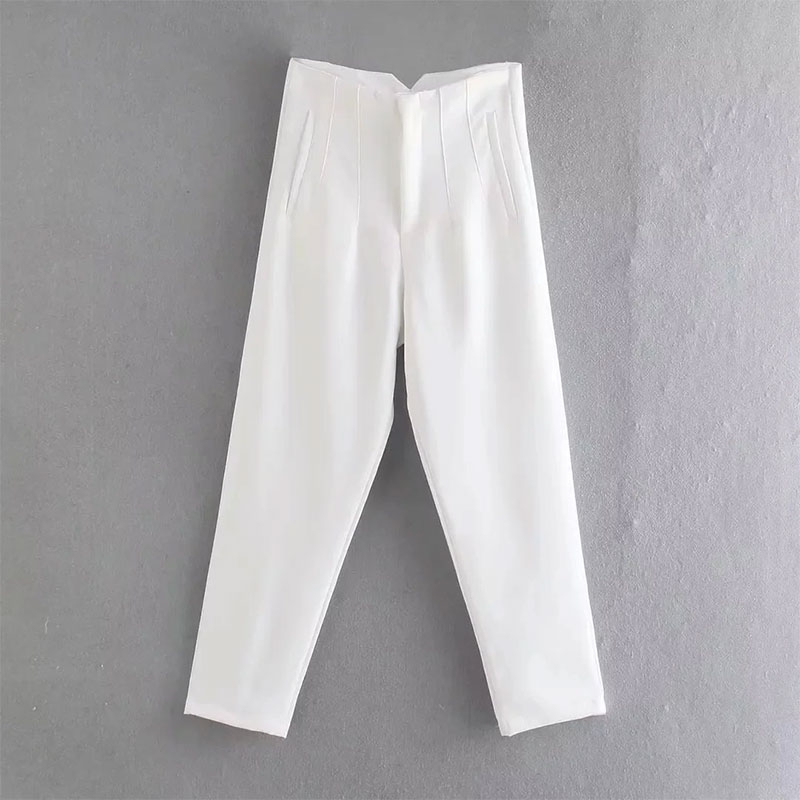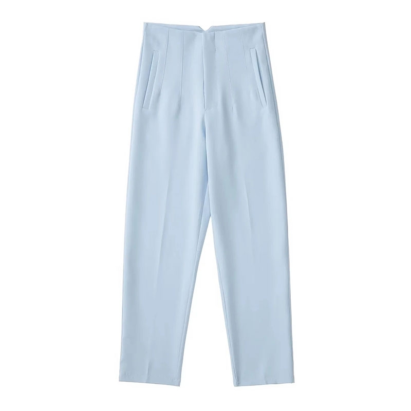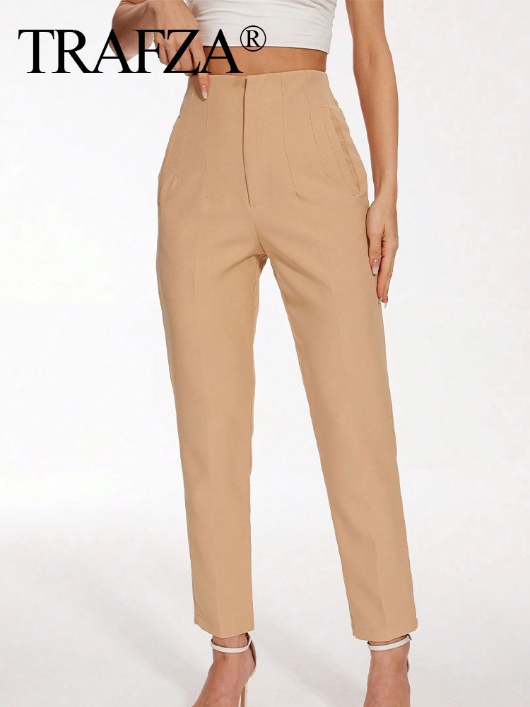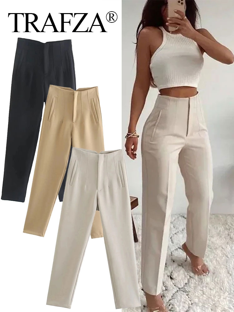 TRAFZA 2024 Woman Solid Trouser High Waist Slim Zipper Fly Long Pants Female Wild Commute Office Lady Woman Pencil Pant Street
