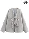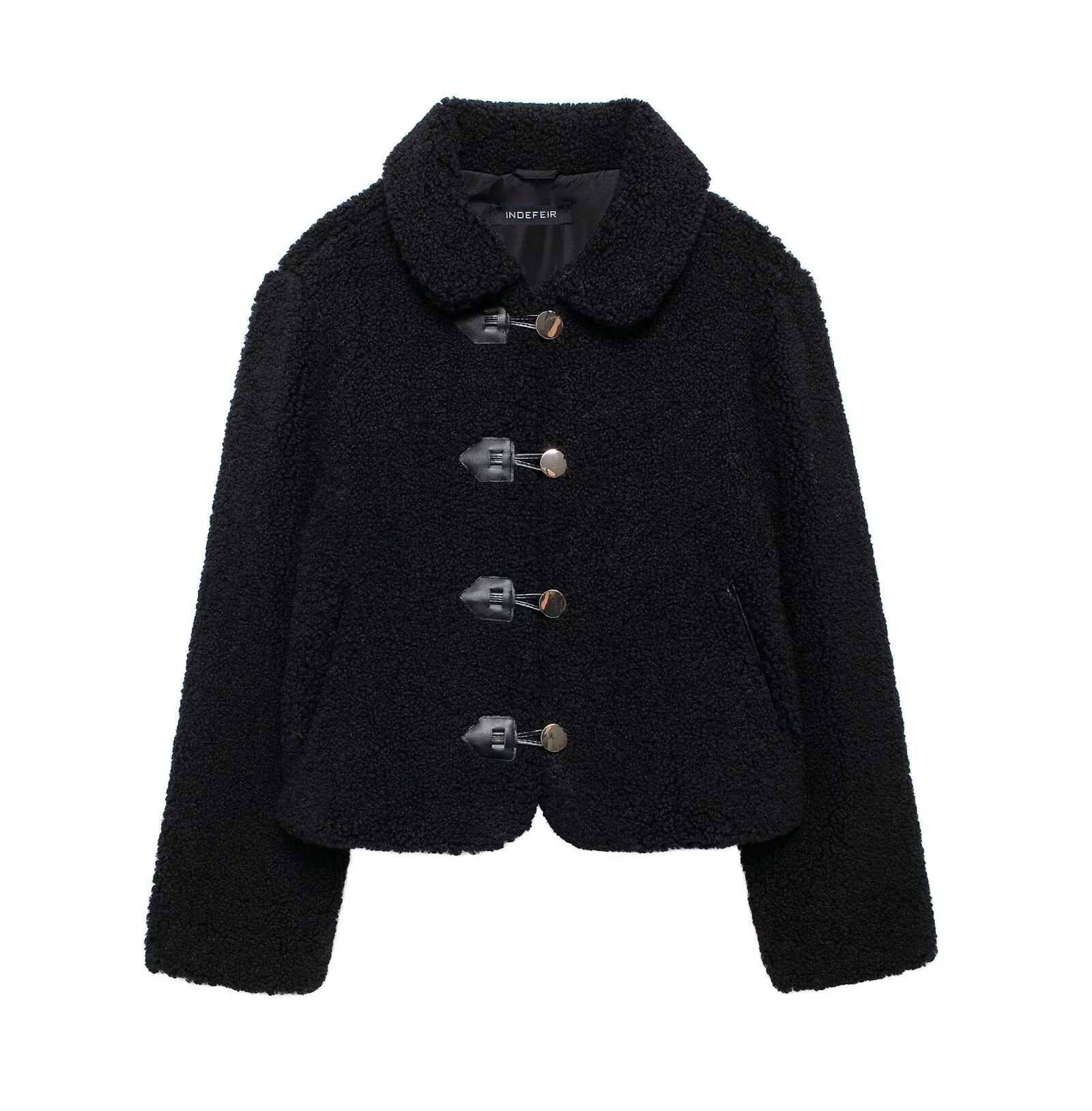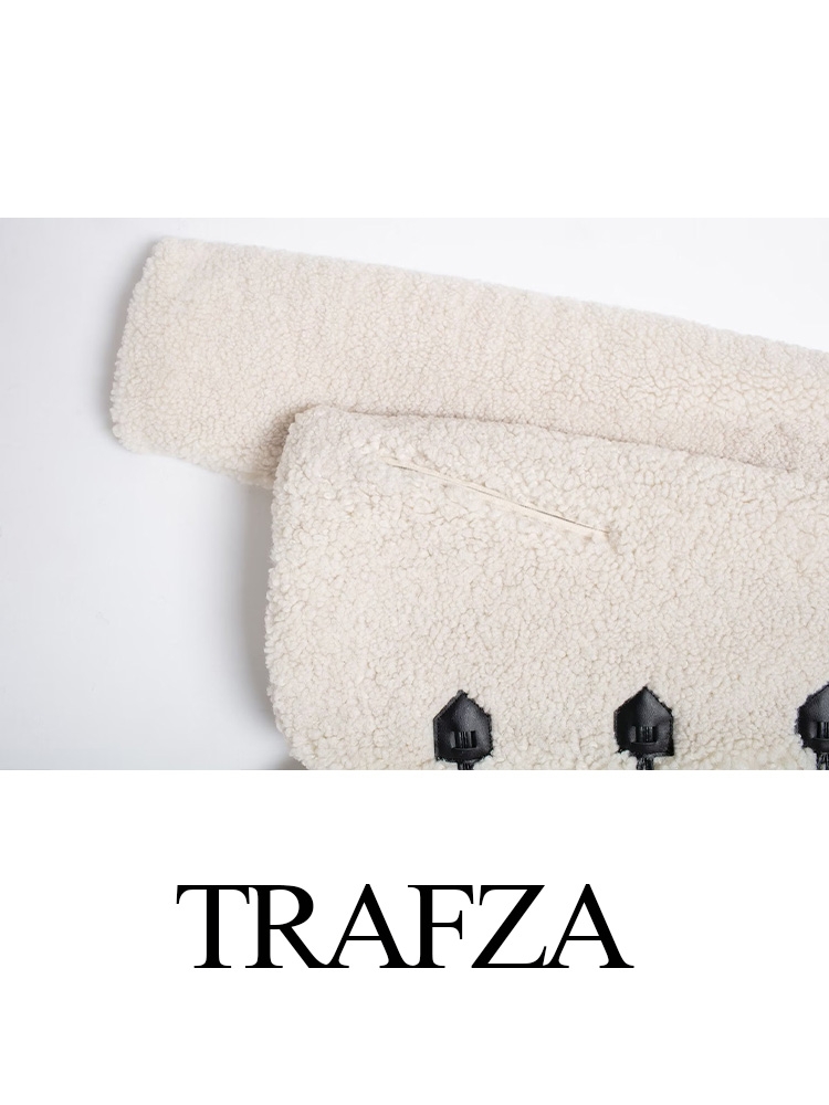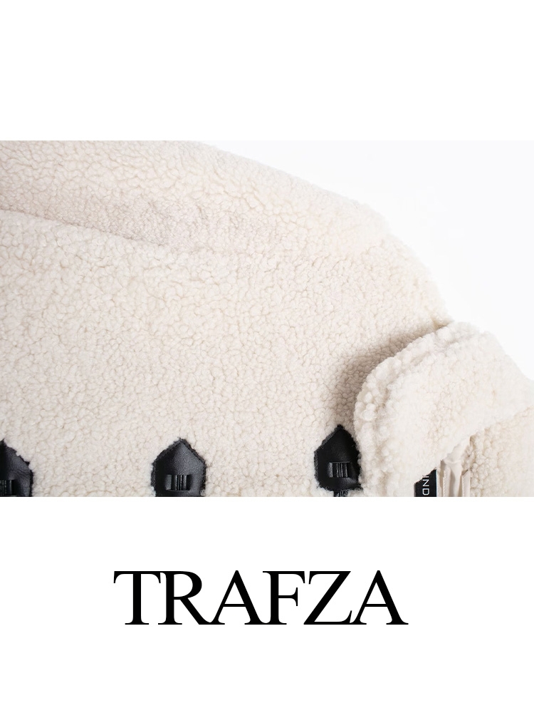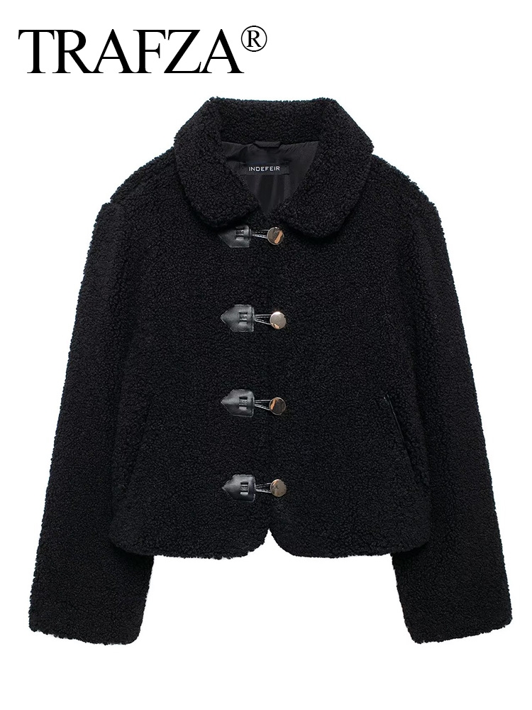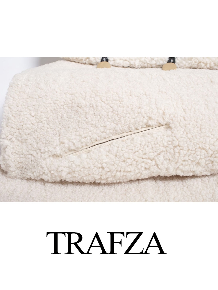 TRAFZA Vintage Women Plush Texture Fleece Coat 2024 Female Loose Single Breasted Jacket Long Sleeved Comfortable Outerwear