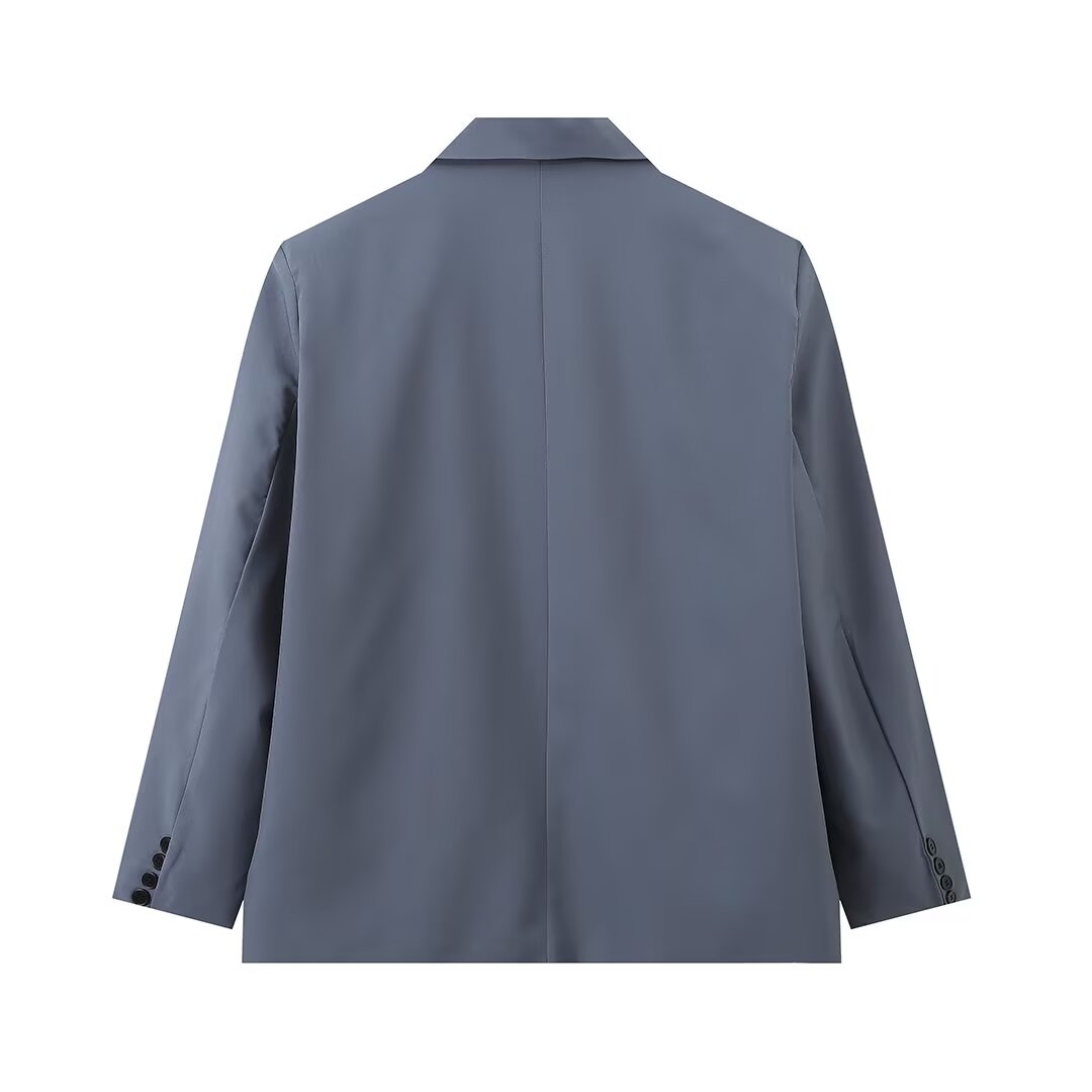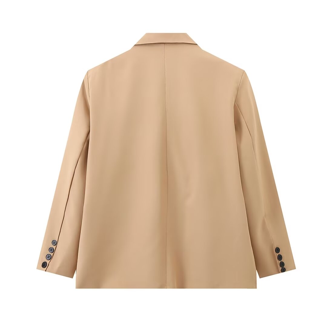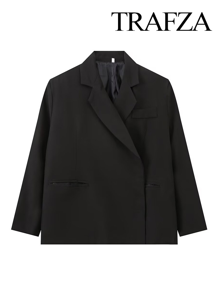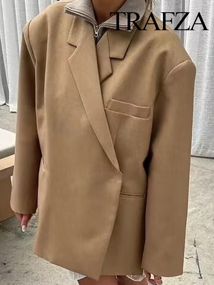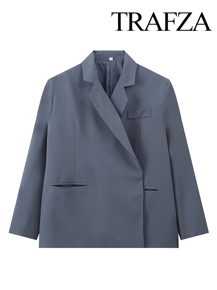TRAFZA Women Fashion Long Sleeve Lapel Pocket Decorate Jacket Autumn Female Casual Single-button Solid 3-Colors Blazer Mujer
