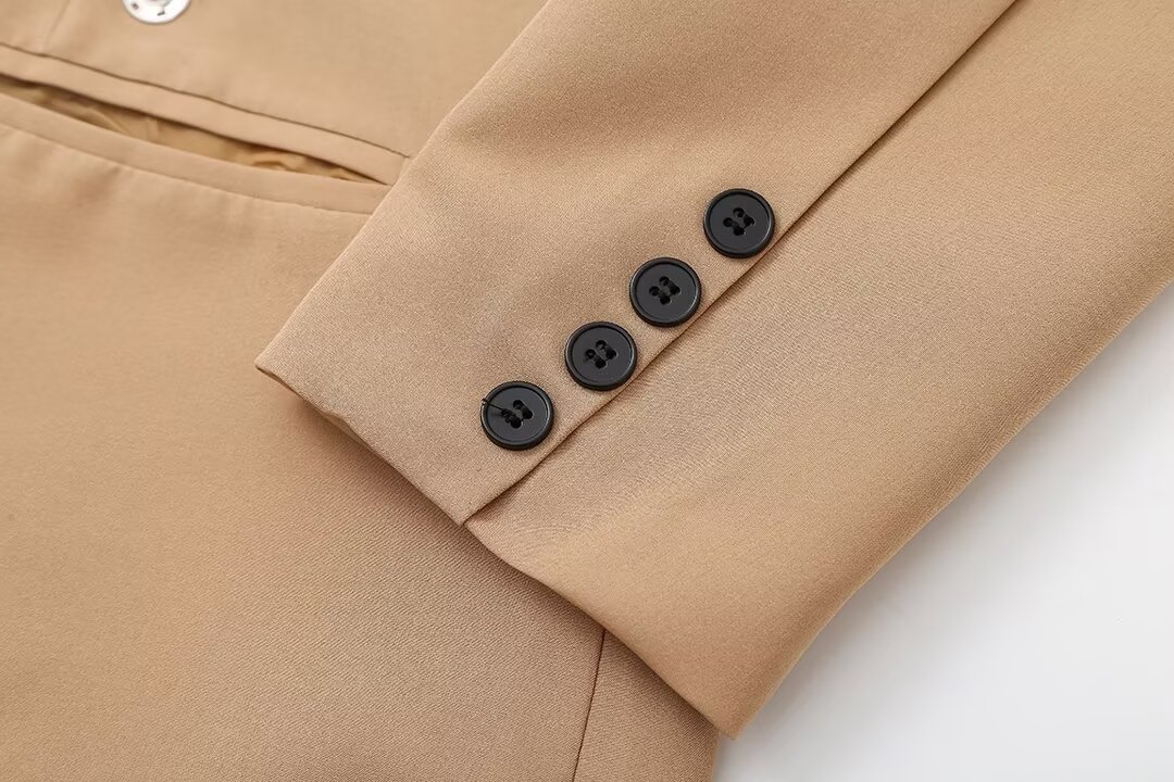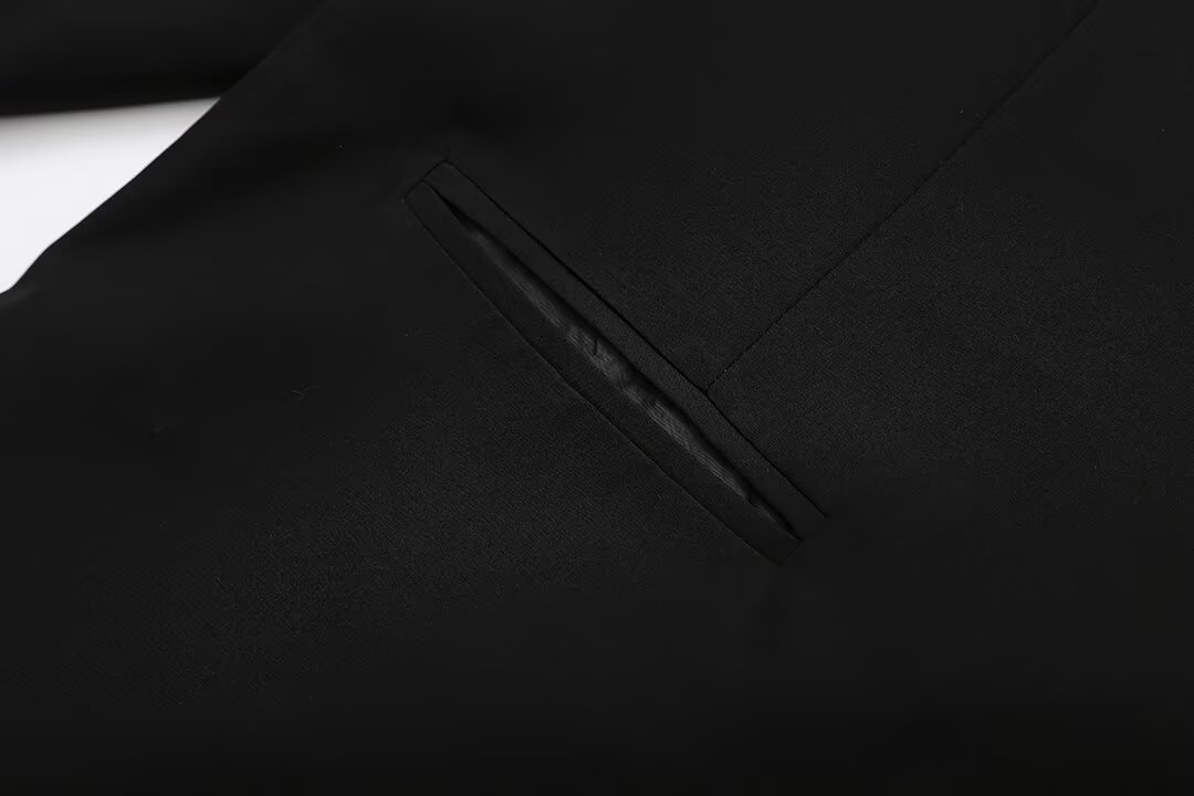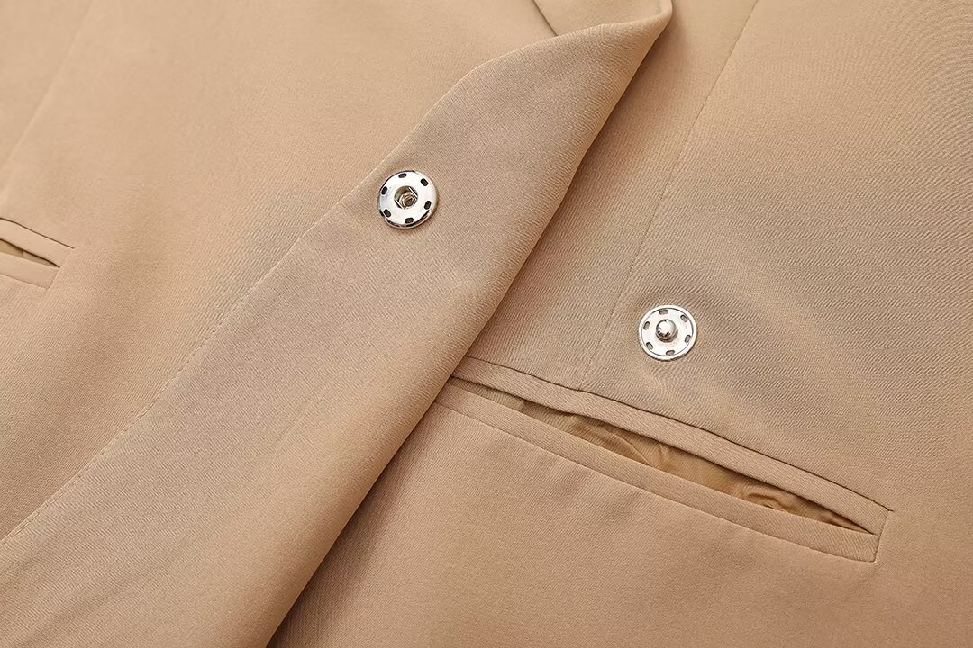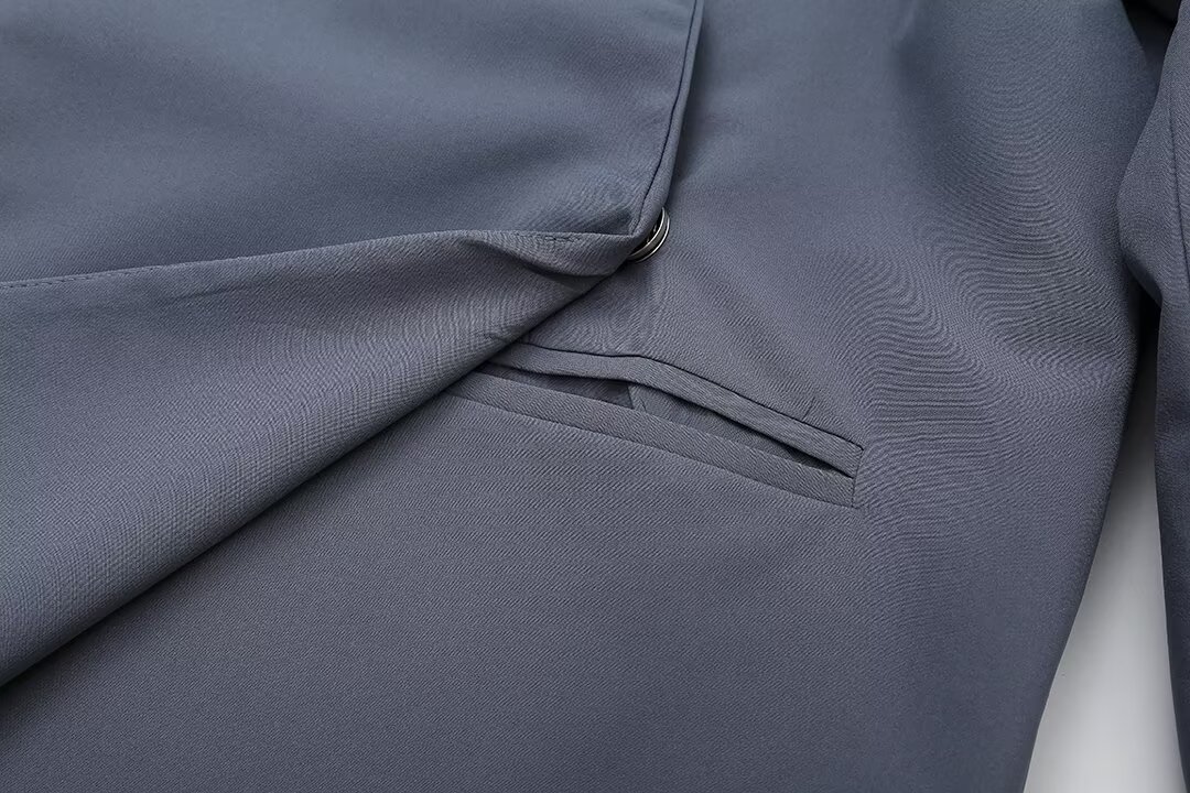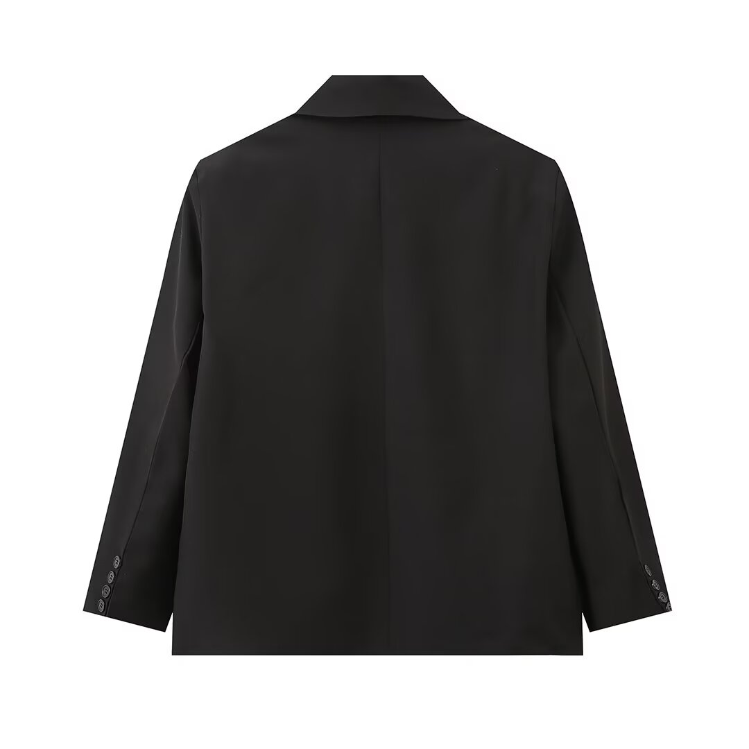 TRAFZA Women Fashion Long Sleeve Lapel Pocket Decorate Jacket Autumn Female Casual Single-button Solid 3-Colors Blazer Mujer