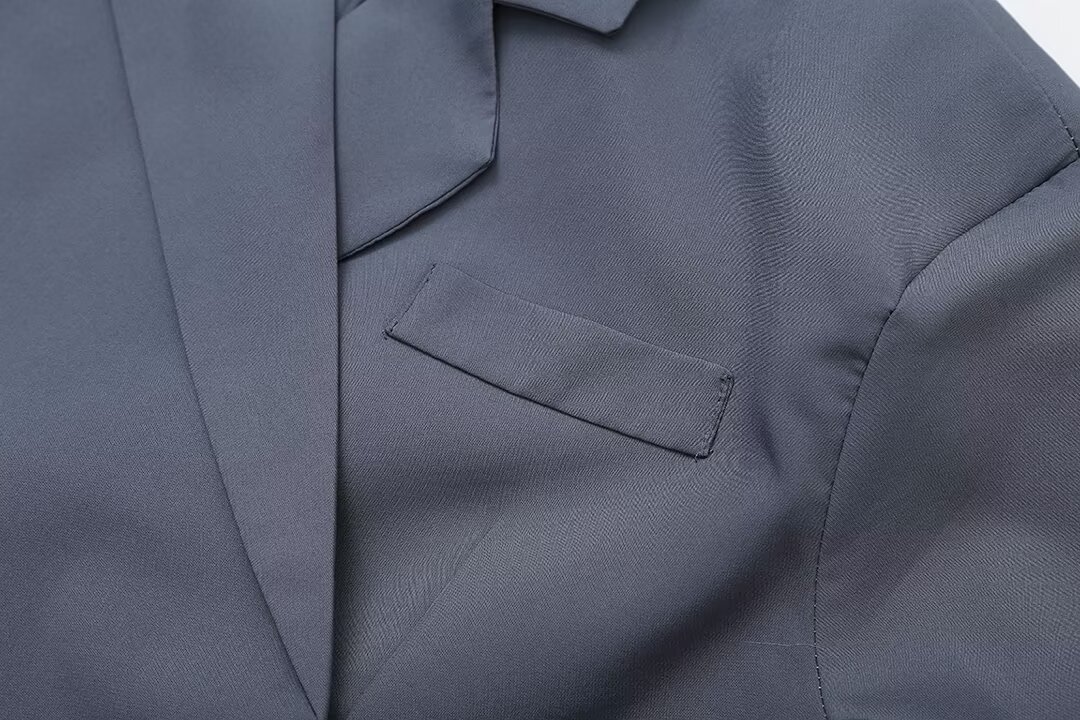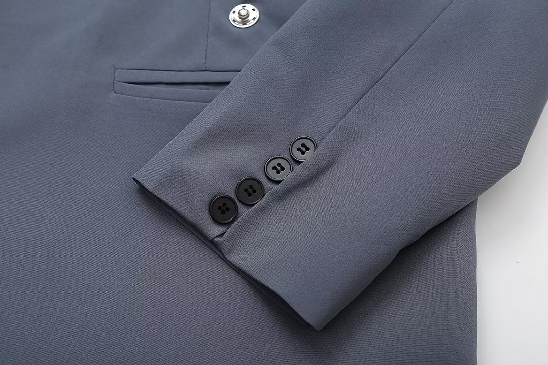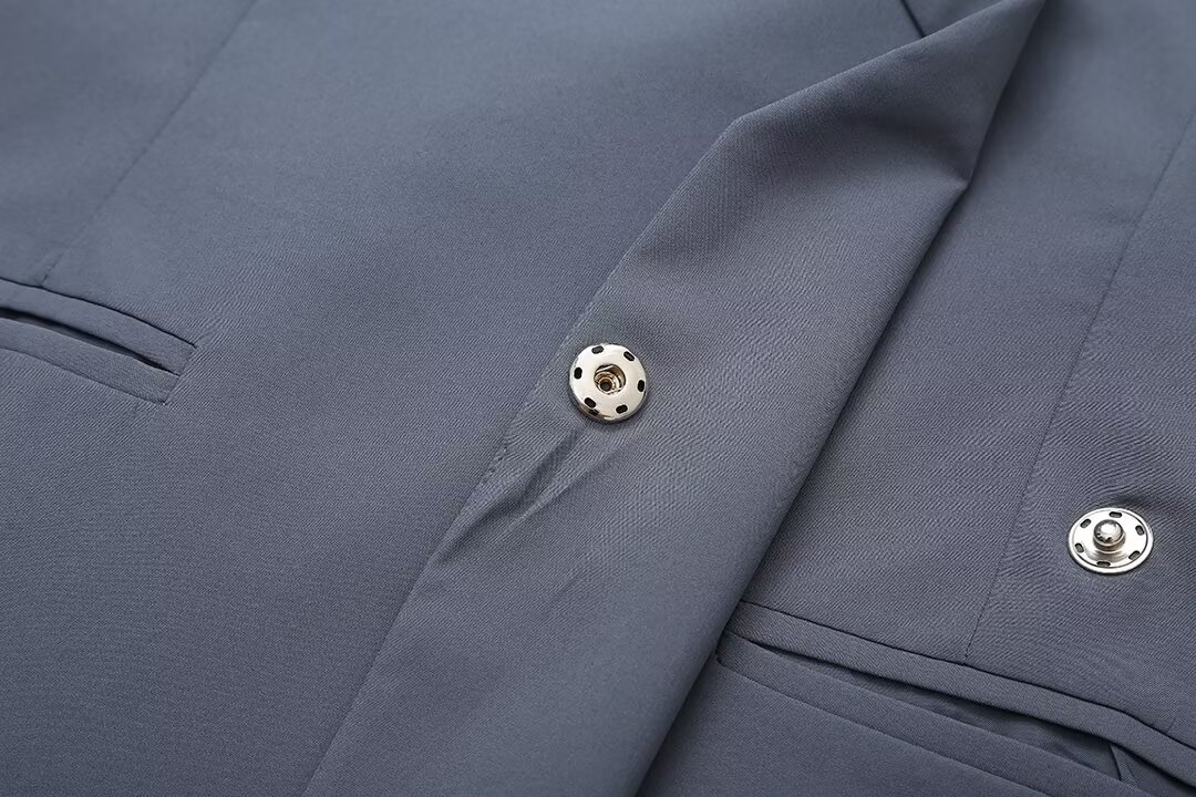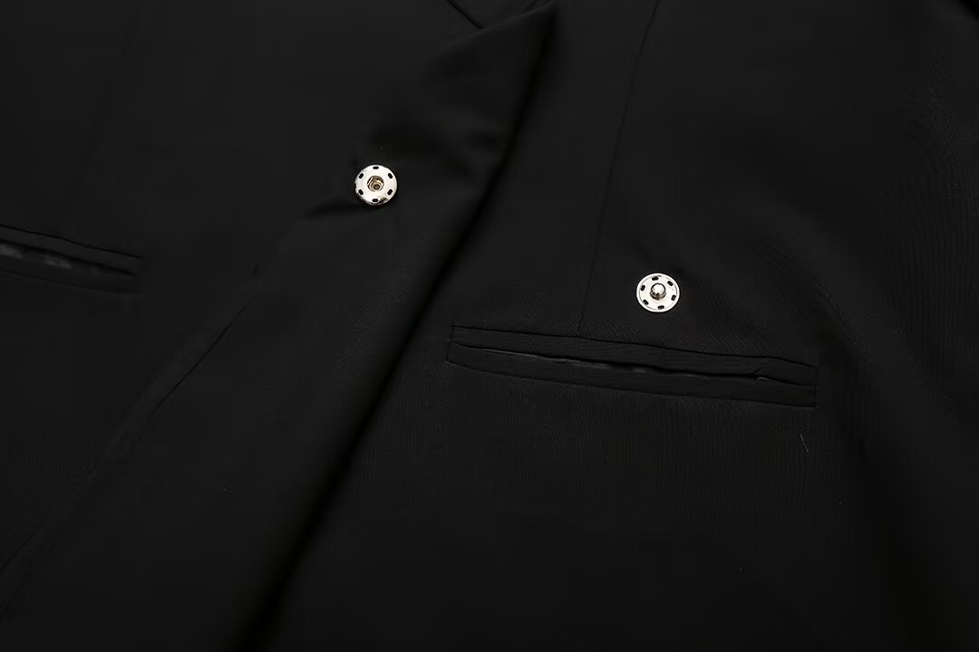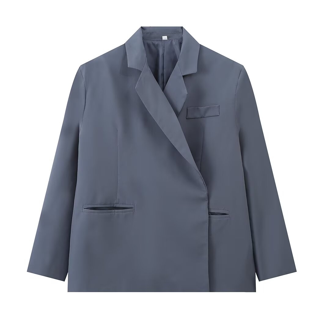 TRAFZA Women Fashion Long Sleeve Lapel Pocket Decorate Jacket Autumn Female Casual Single-button Solid 3-Colors Blazer Mujer
