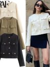 TRAF Woman Outerwears Autumn Long Sleeve Cropped Jacket For Women Winter Button Demi-Season Short Coats Elegant Women’s Coat