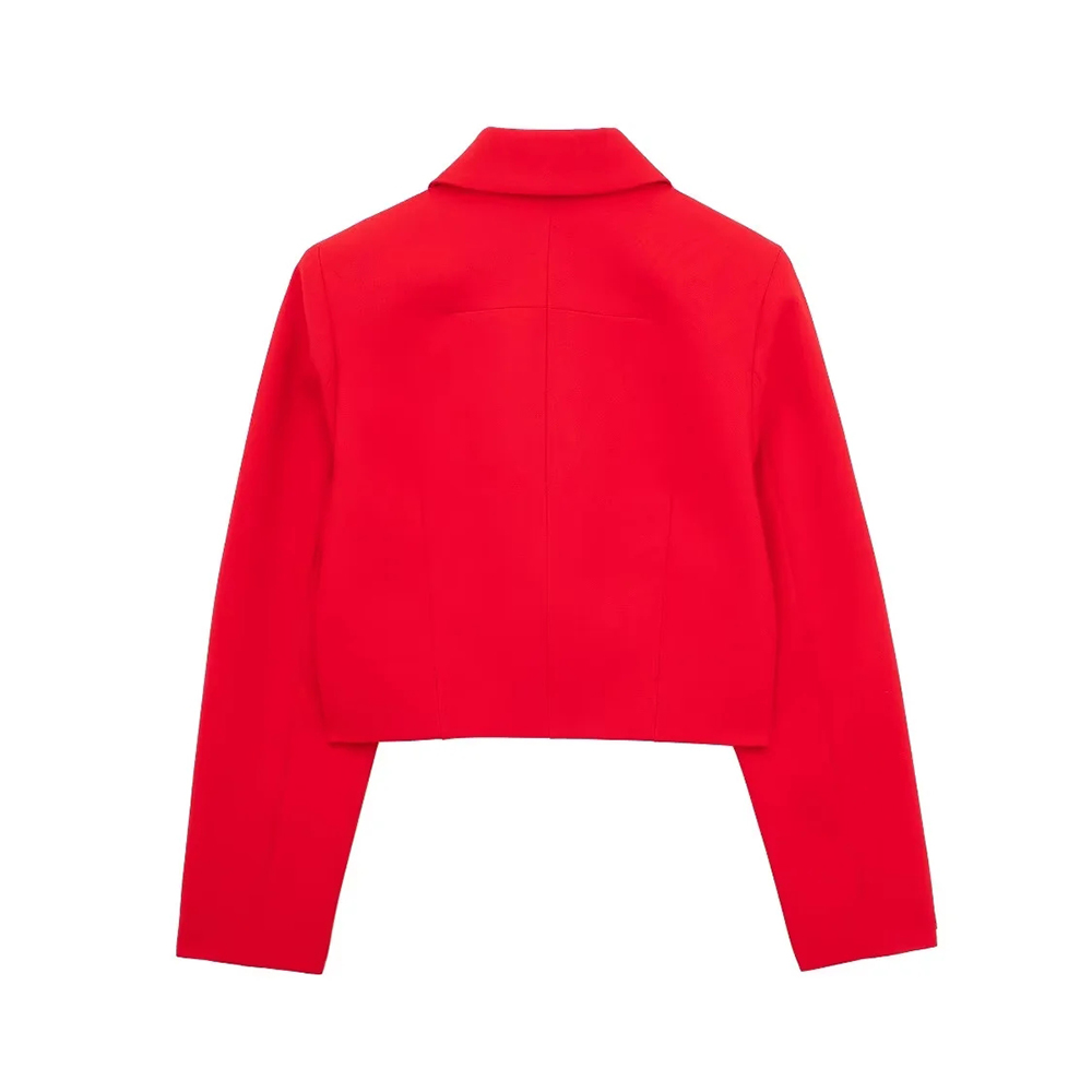 TRZA Women Fashion With Flaps Cropped Blazer Coat Vintage Long Sleeve Snap-button Female Outerwear Chic Tops